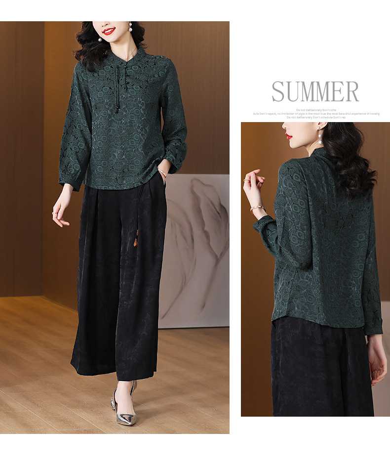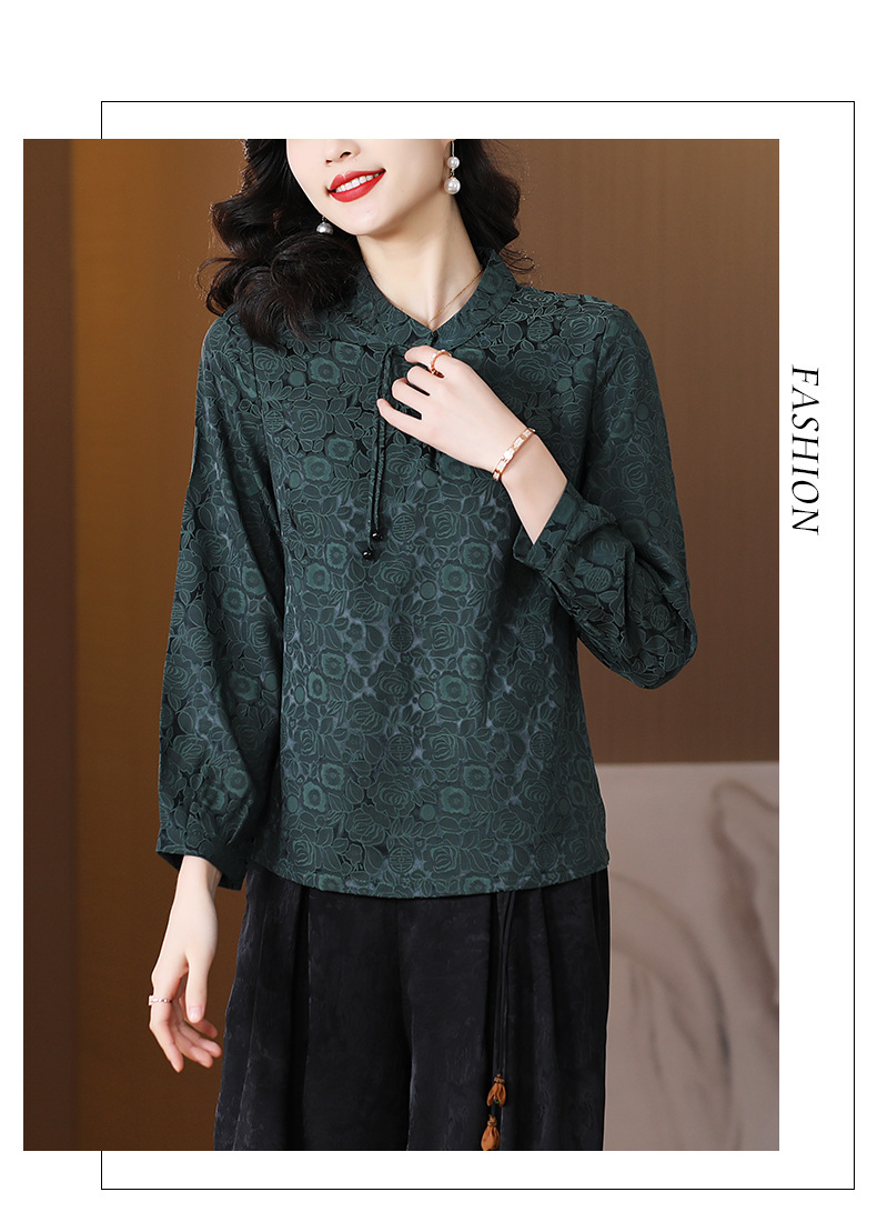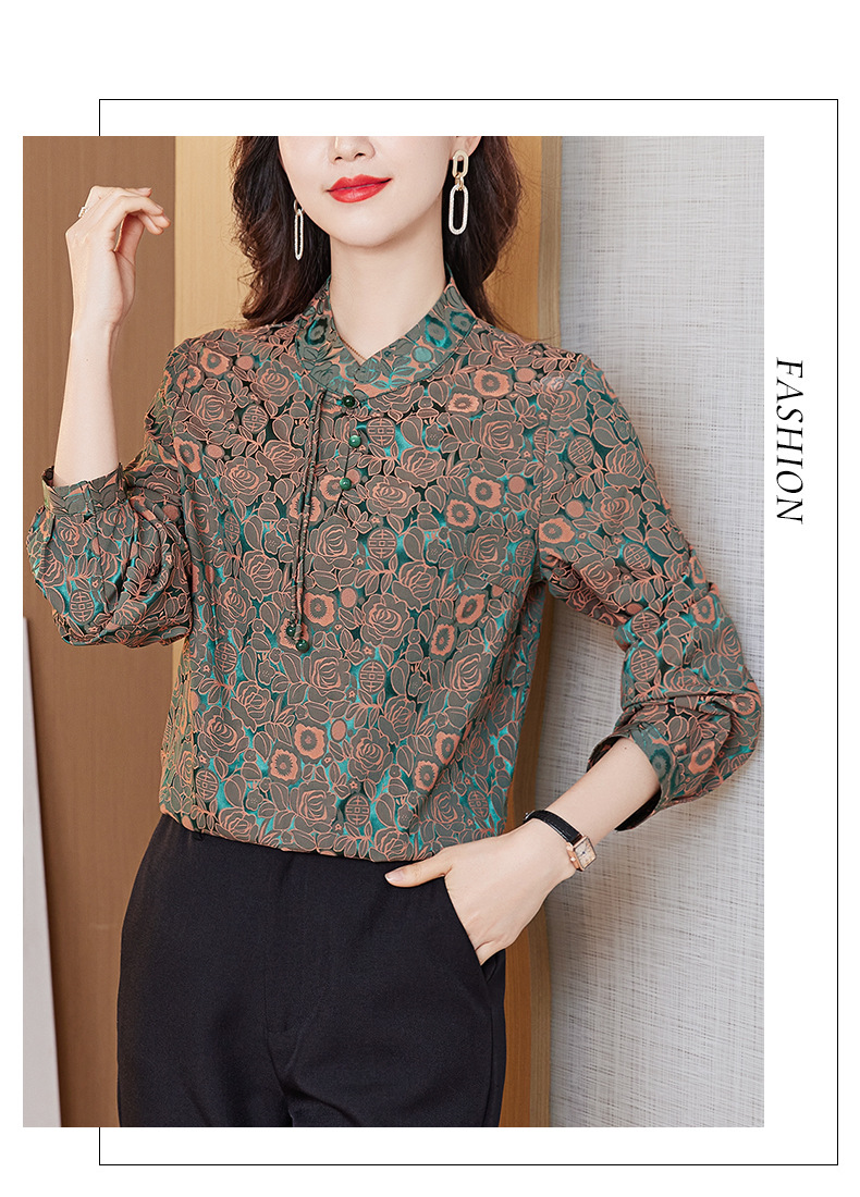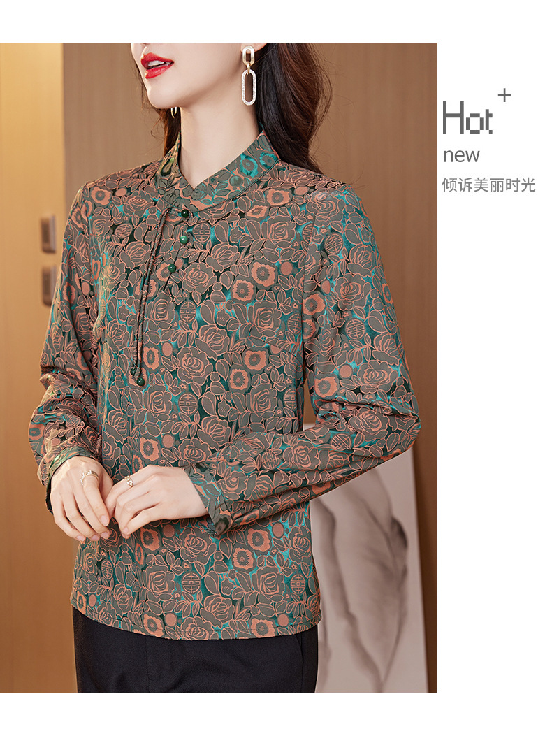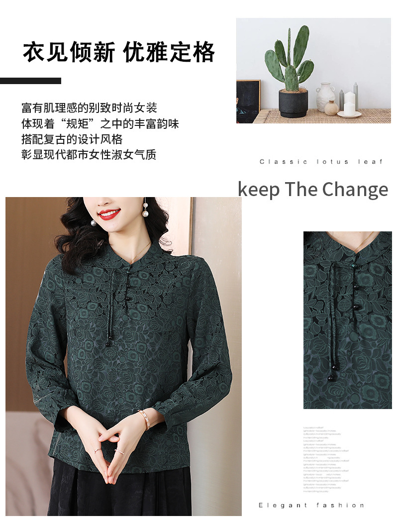 春夏款中老年仿真丝长袖衬衣上衣K-422H2158