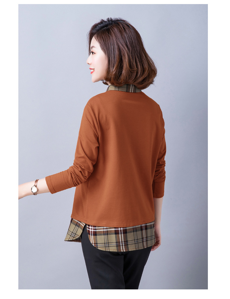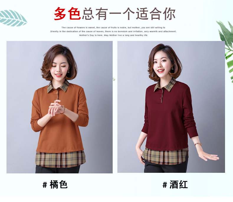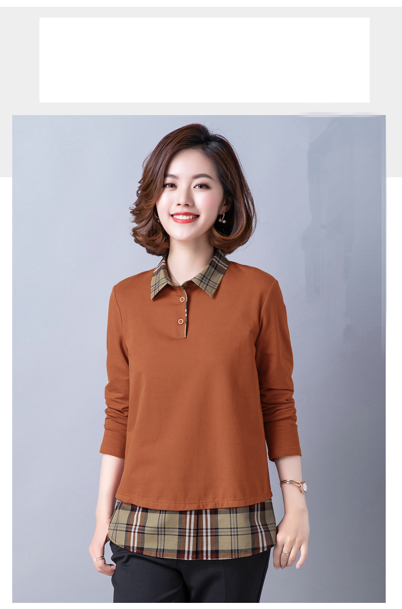 LH-6717春季新款妈妈装格纹拼接长袖打底衫