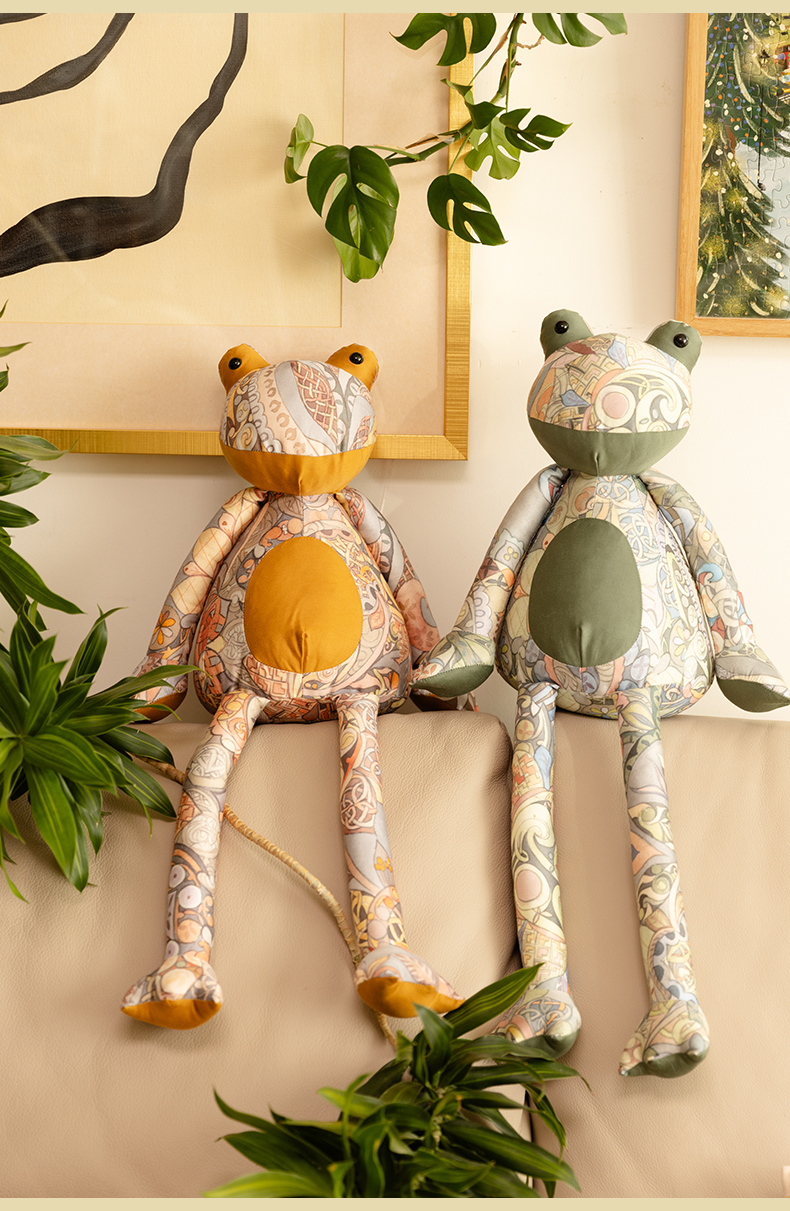 抽象手绘青蛙玩偶公仔高端可爱棉安抚装饰小孩礼物娃娃玩具抱枕