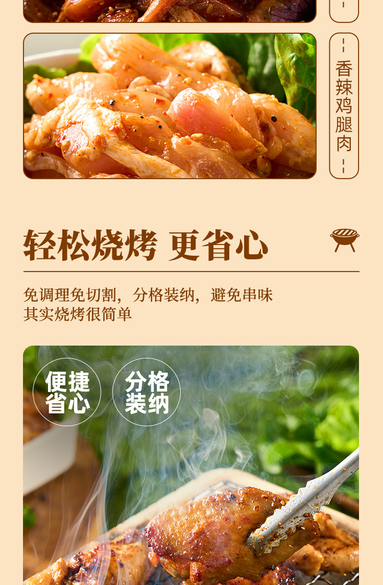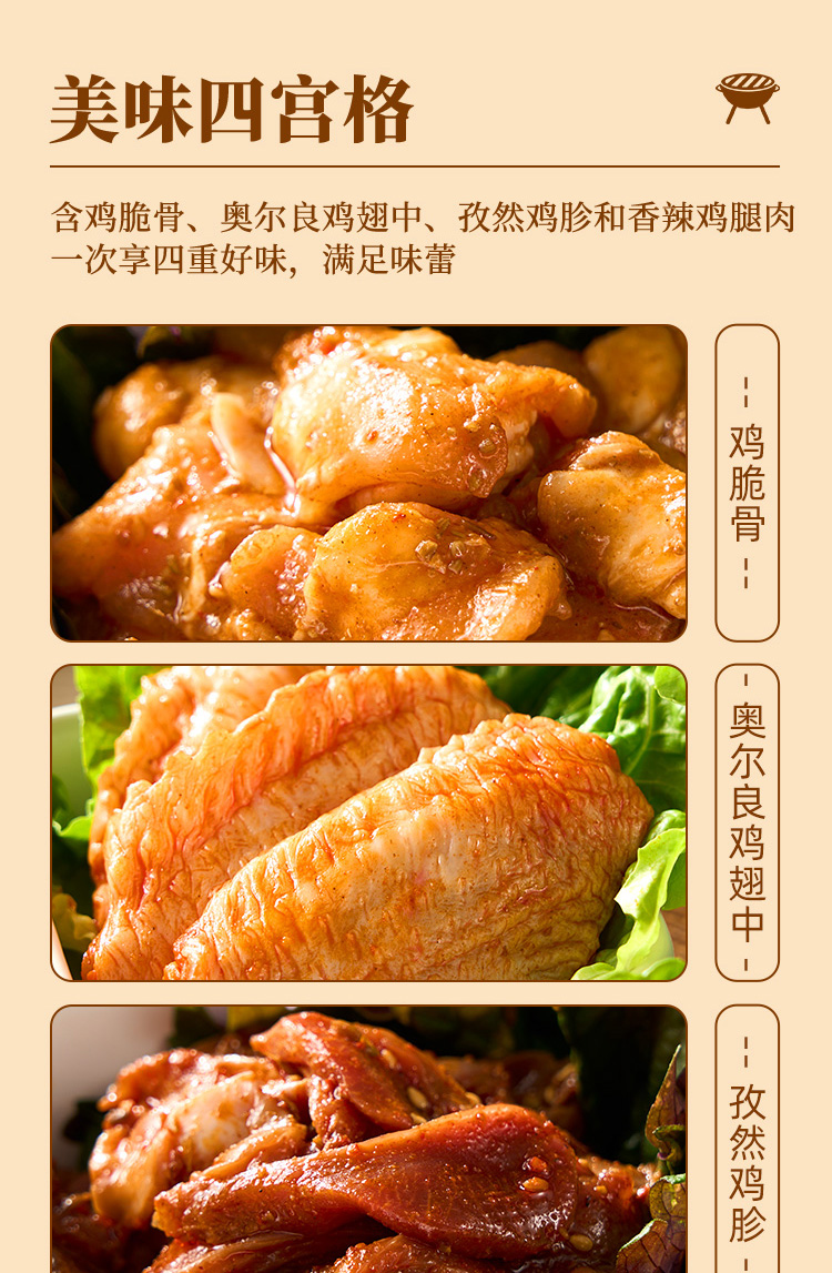 【南京提货券300-500】韩式香辣烧烤鸡肉四宫格450g*2盒