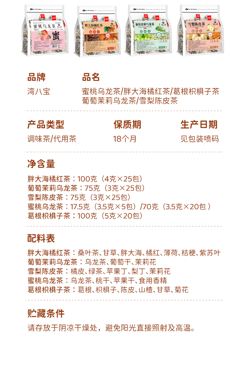 湾八宝独立包装袋泡茶蜜桃乌龙葡萄茉莉雪梨陈皮葛根枳棋子茶胖大海红茶绿茶