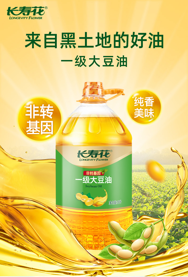 长寿花一级大豆油5L食用油非转基因大豆油