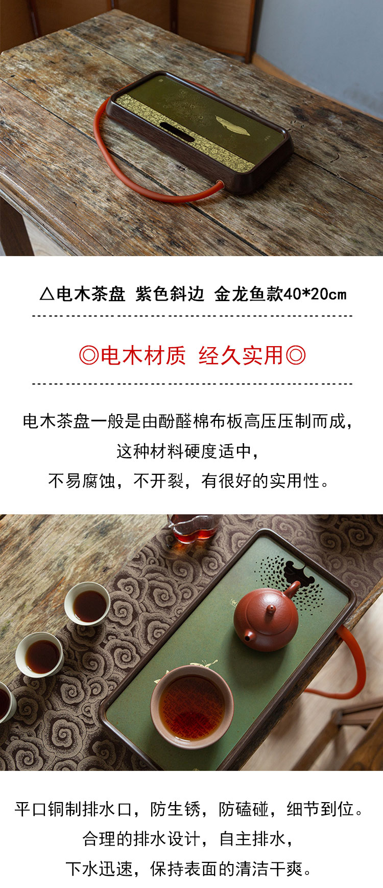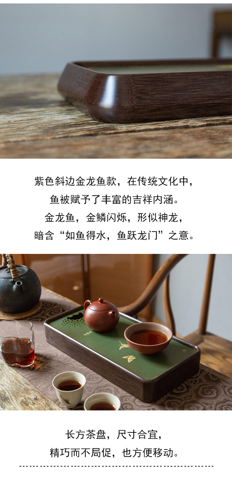 茶香记 电木茶盘银杏金龙鱼经久耐用微雕工艺干湿分离沉稳素雅