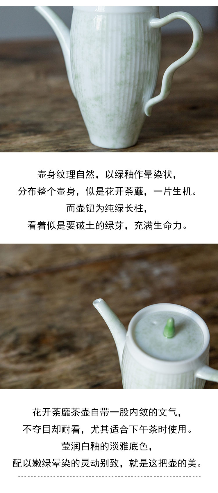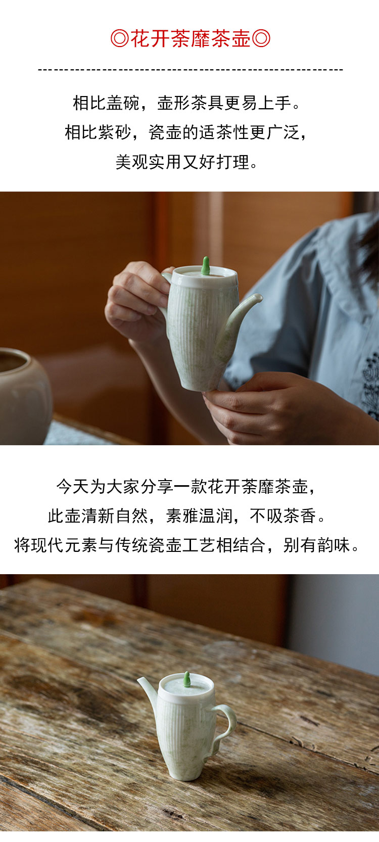 茶香记 花开荼靡茶壶160ml陶瓷泡茶壶易上手清新自然素雅温润茶具
