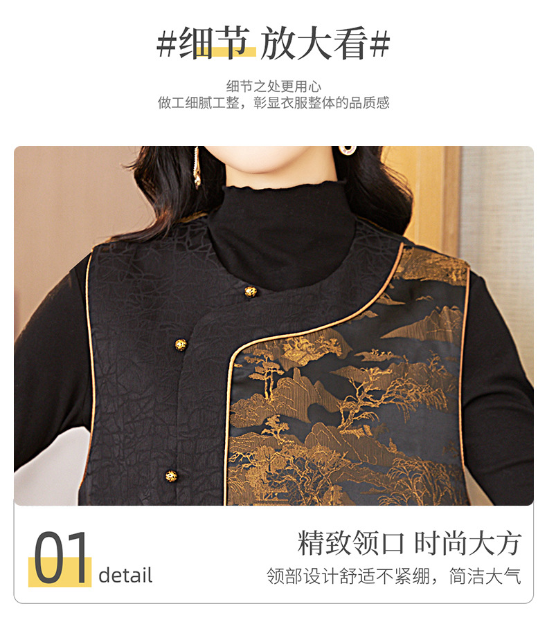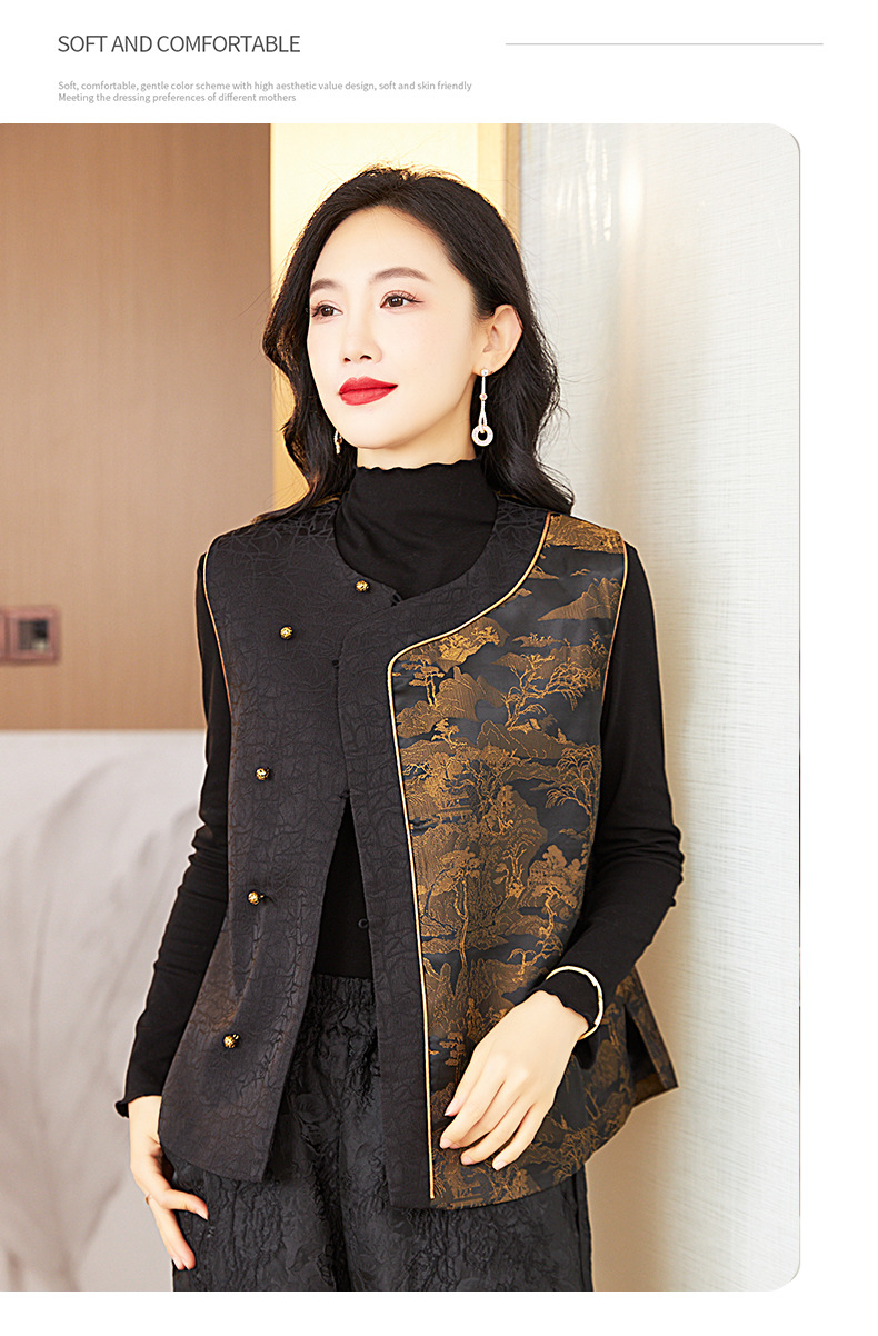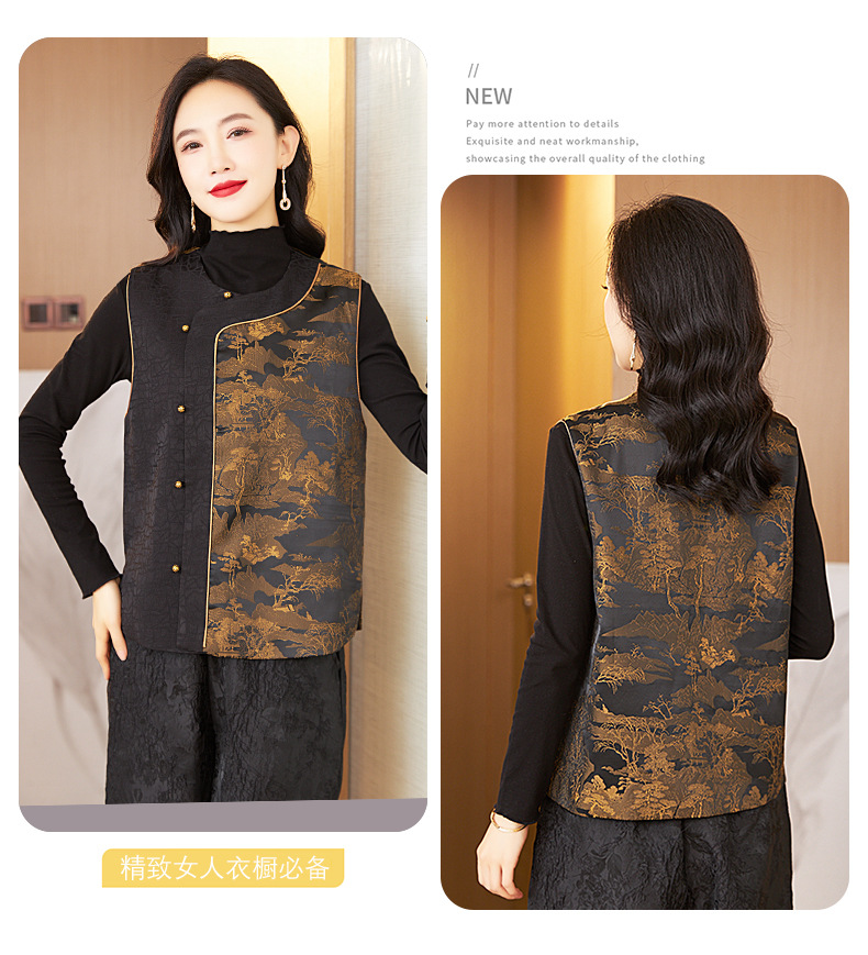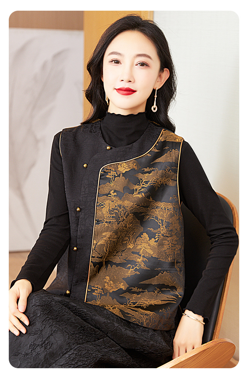 KQL422H2868黑色拼接马甲女2025年秋季新款高级感国风提花无袖马夹