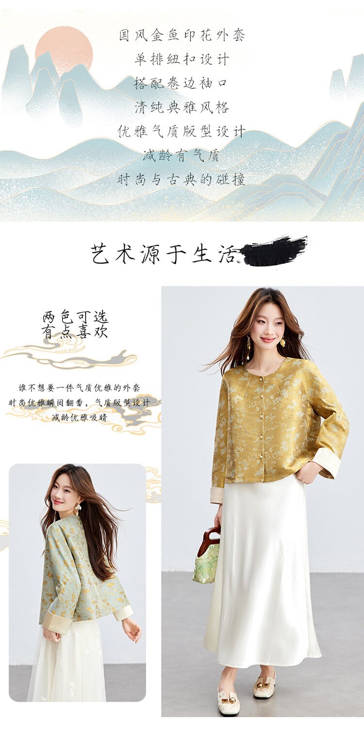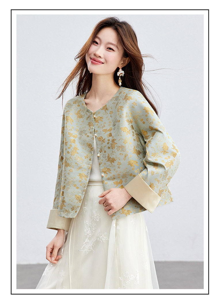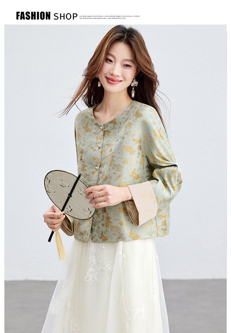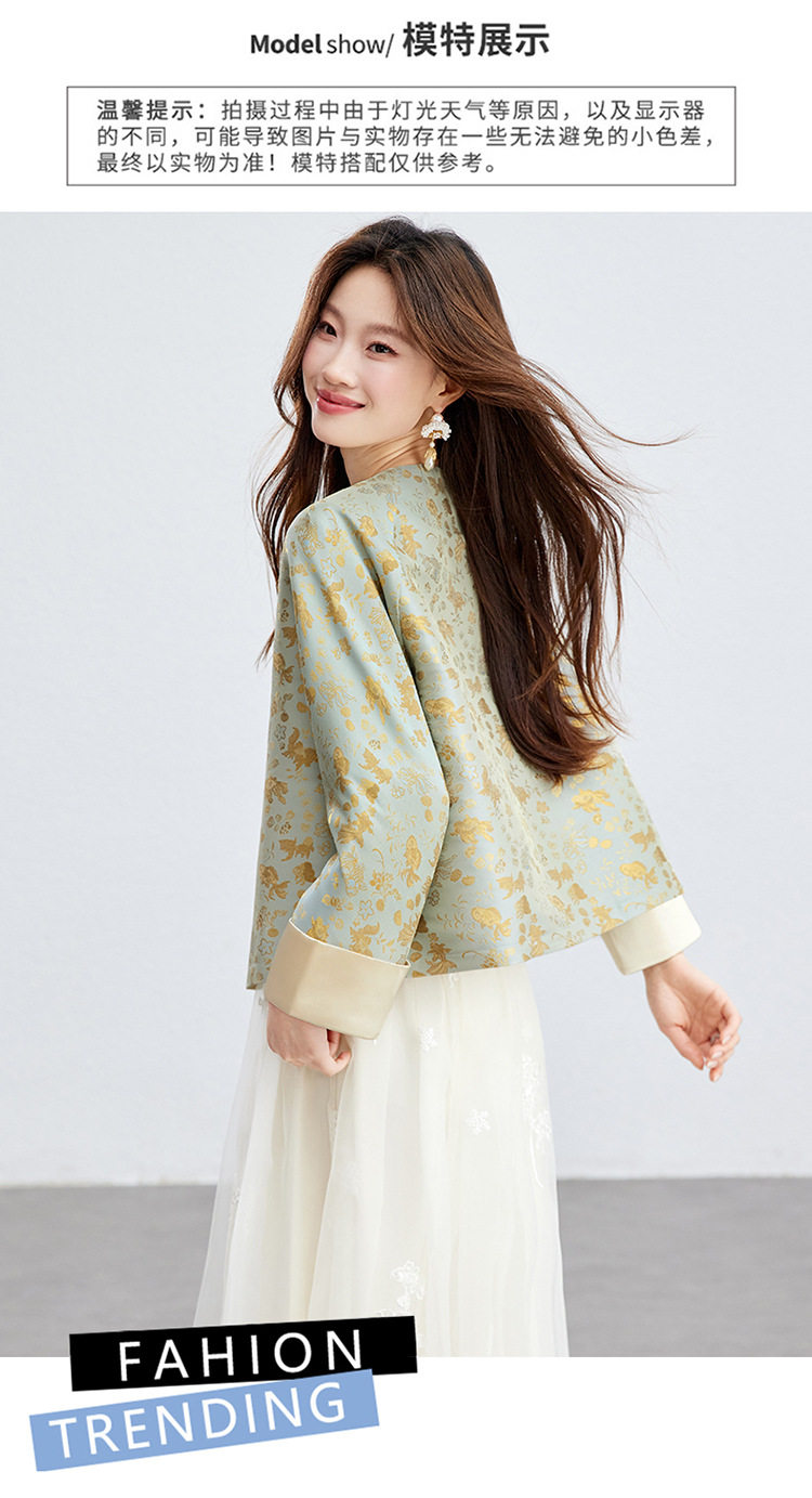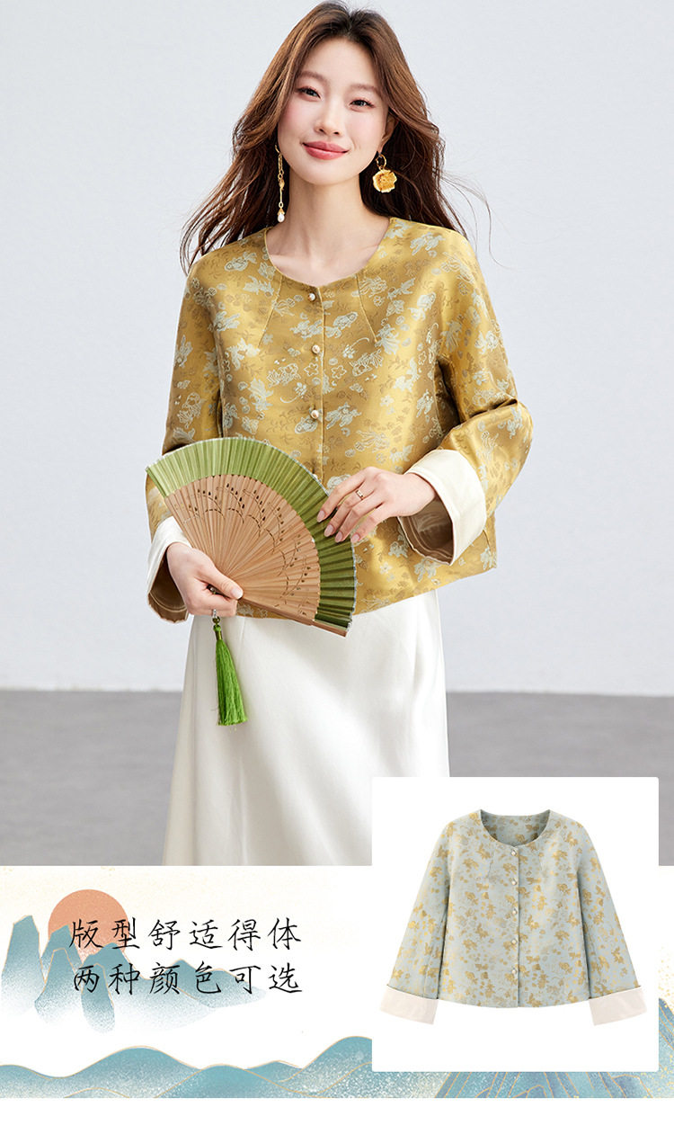 「自」全新升级【铂金会员293/天猫399/差价106】(02909)洛诗琳新款新中式提花外套女2026春季百搭国风圆领上衣
