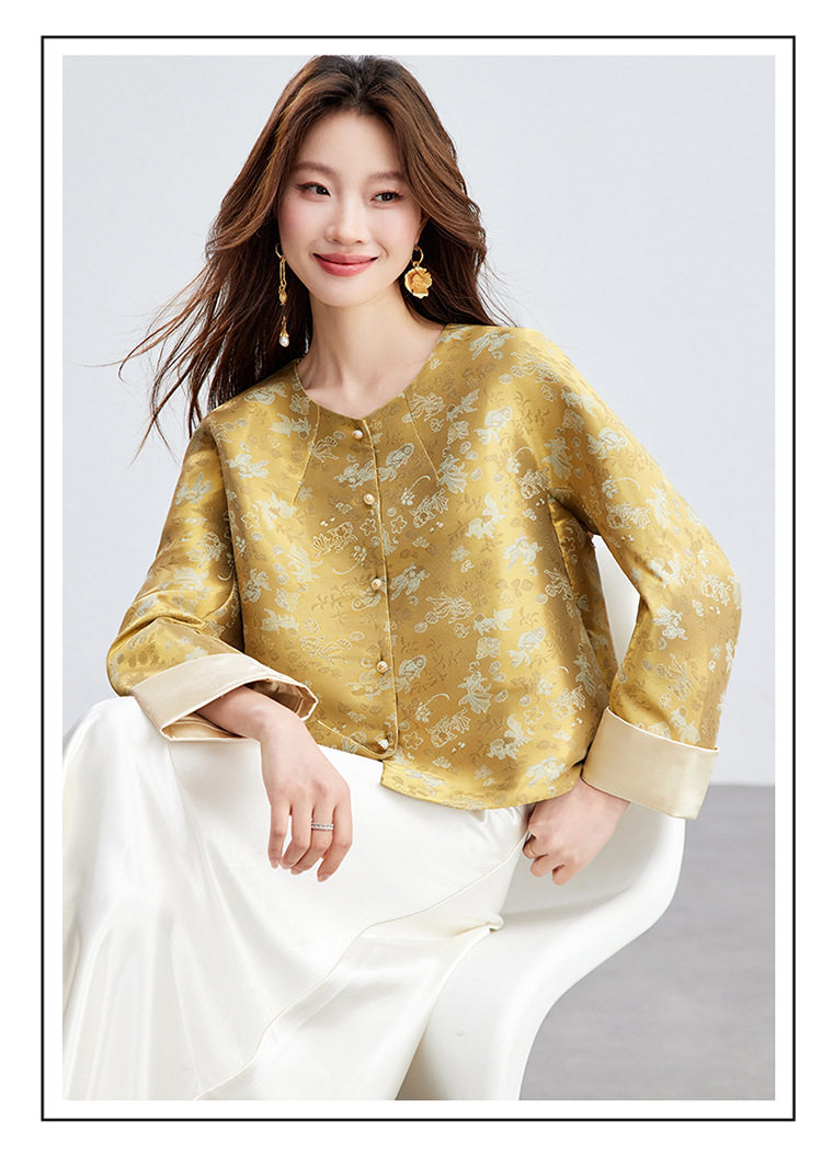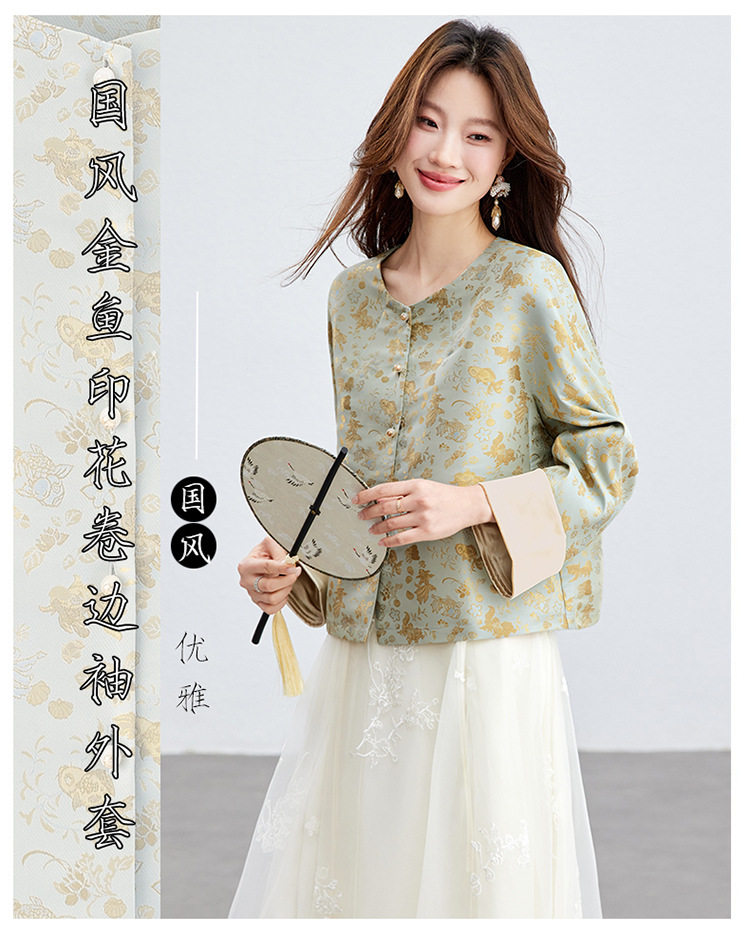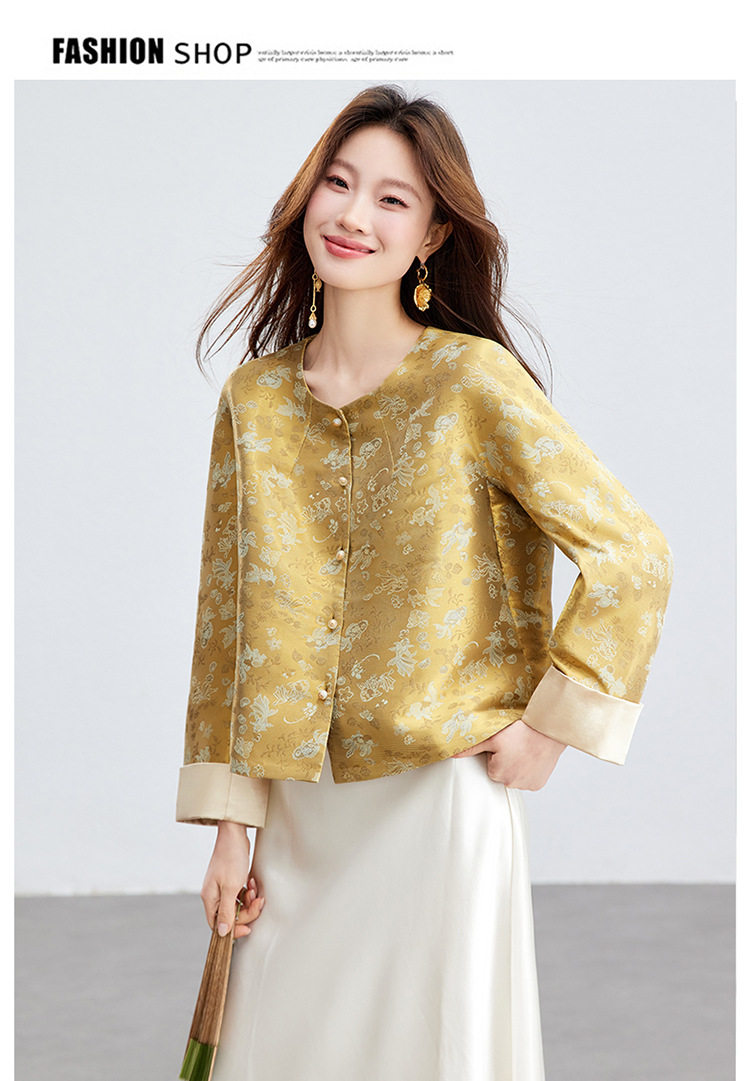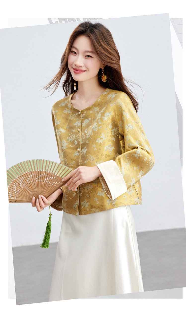 「自」全新升级【铂金会员293/天猫399/差价106】(02909)洛诗琳新款新中式提花外套女2026春季百搭国风圆领上衣