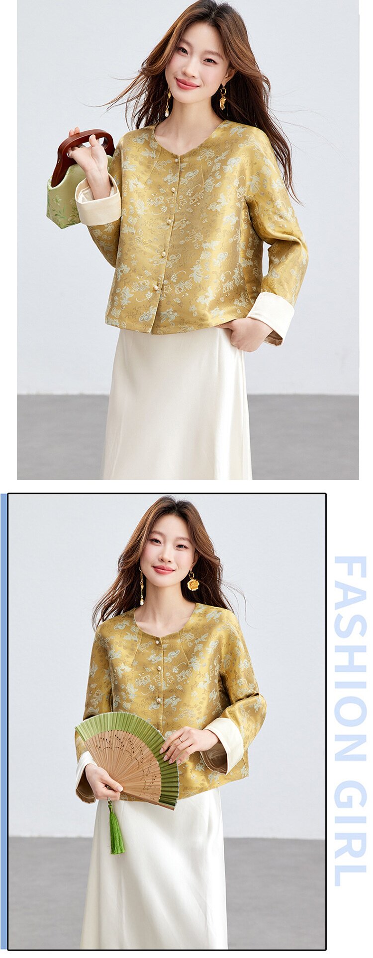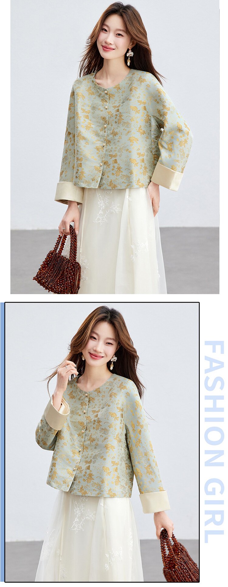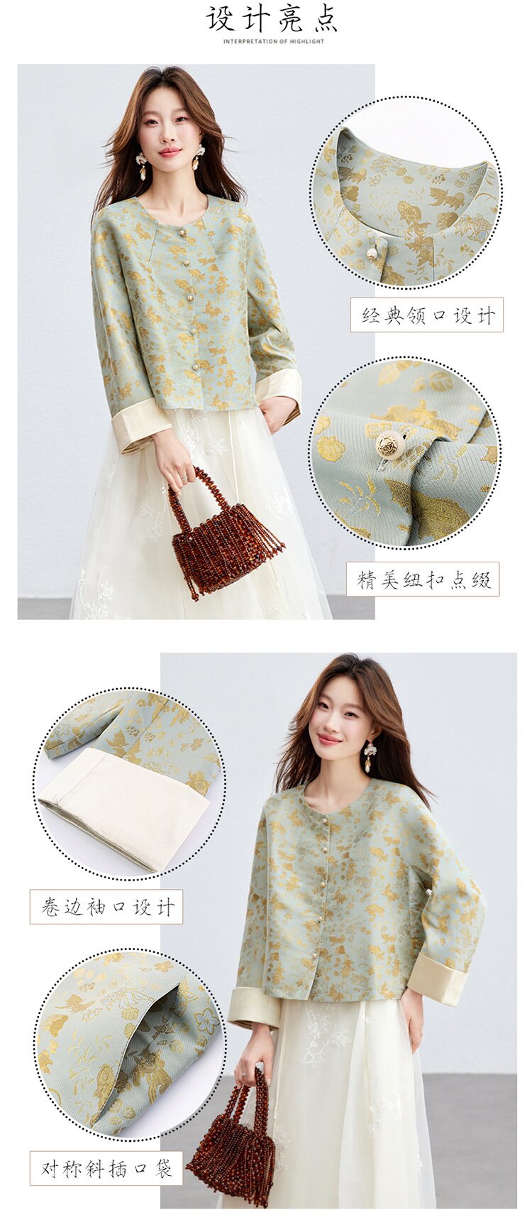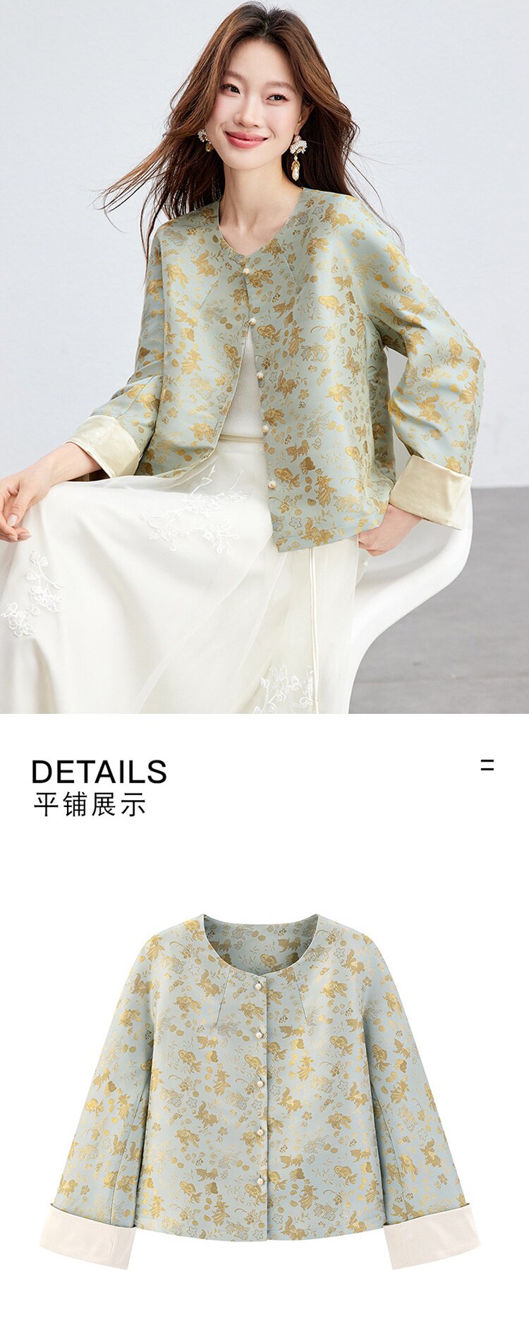 「自」全新升级【铂金会员293/天猫399/差价106】(02909)洛诗琳新款新中式提花外套女2026春季百搭国风圆领上衣