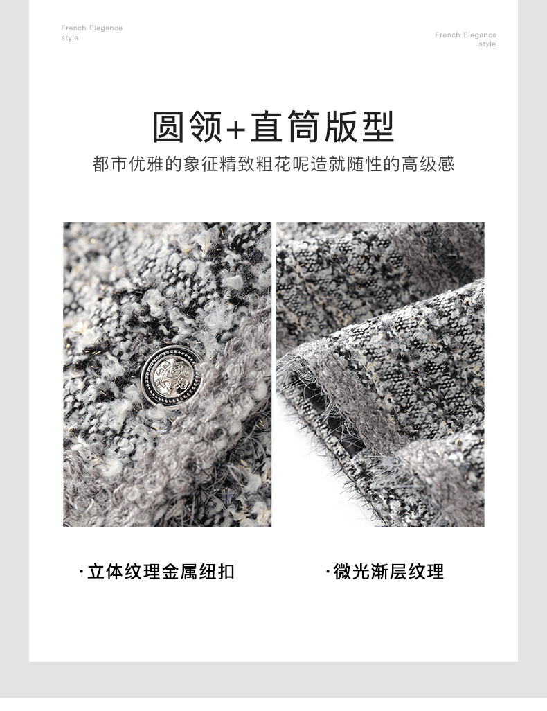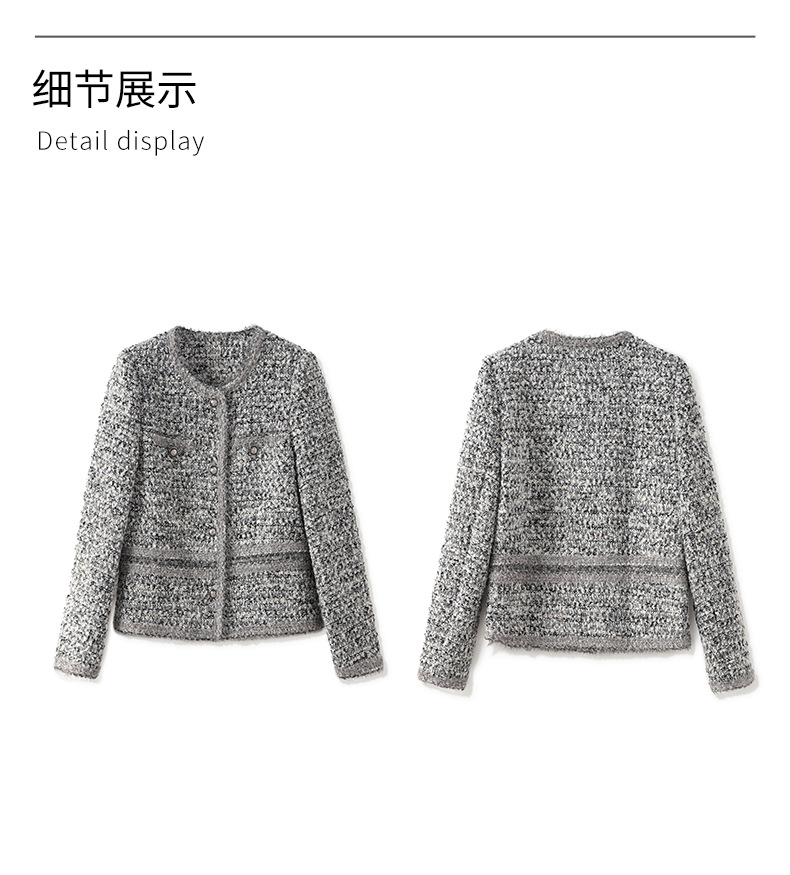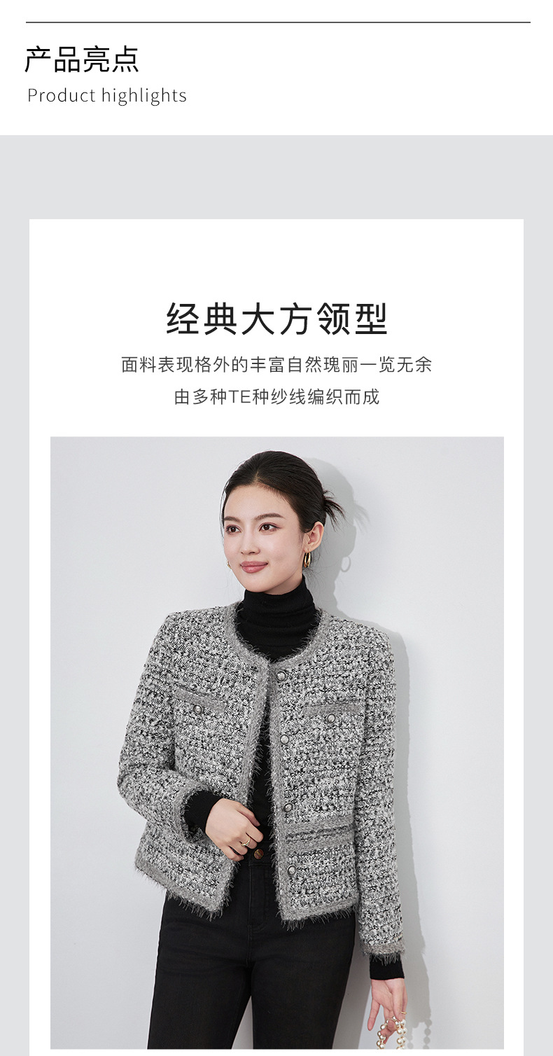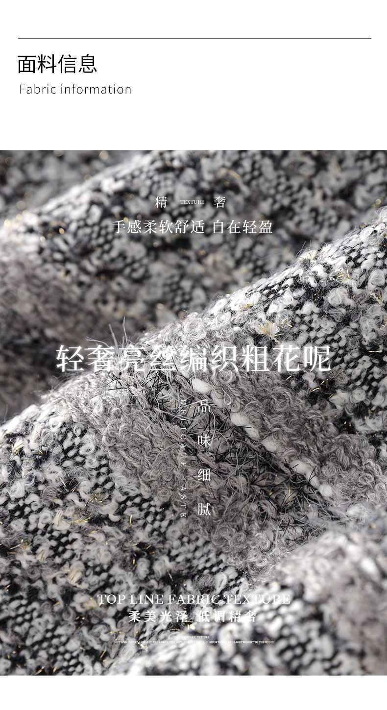 【高货wl】全新升级【铂金会员367/天猫489/差价122】(81902) 洛诗琳轻奢亮丝编织小香风粗花呢外套女新款毛边圆领上衣