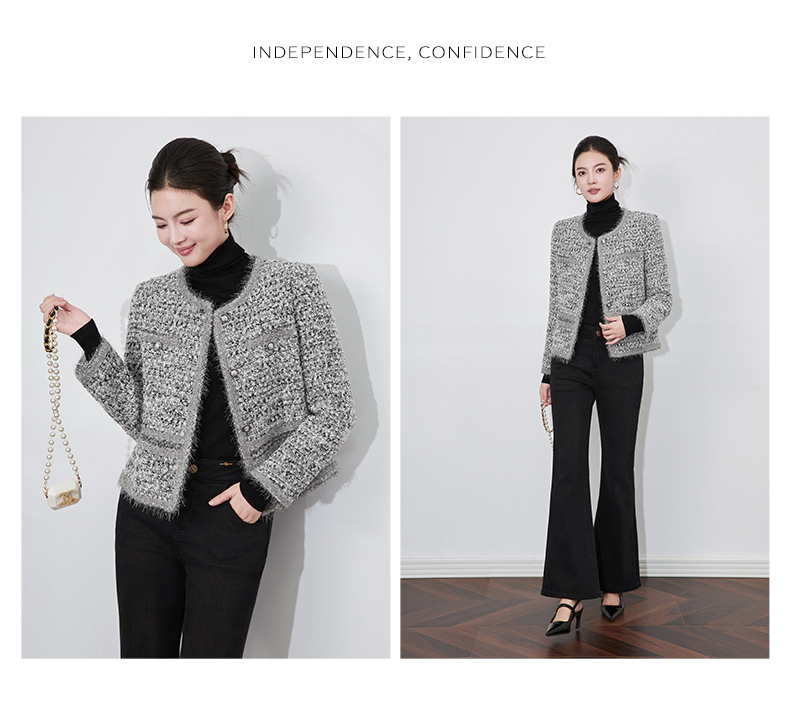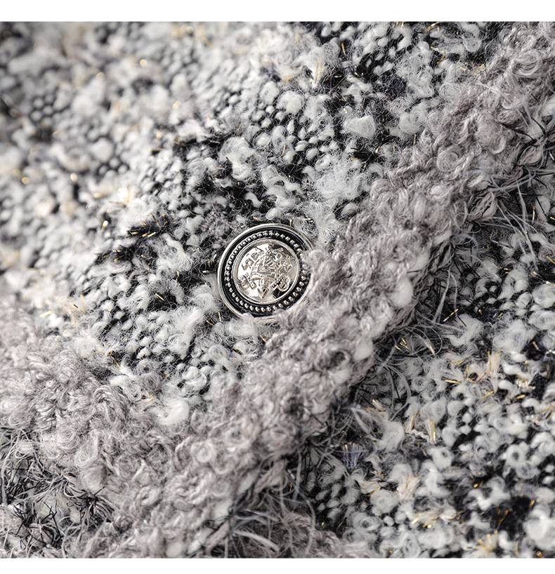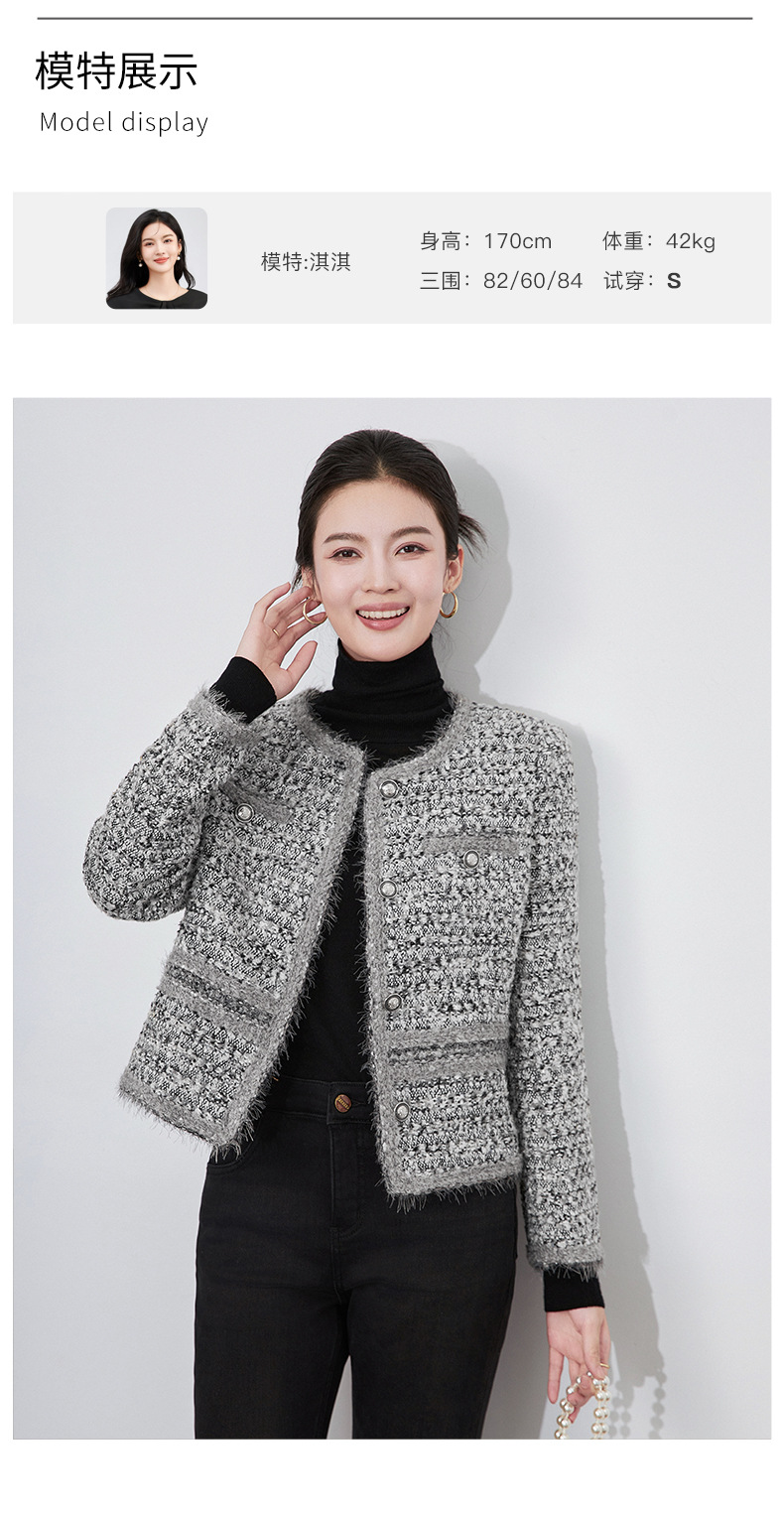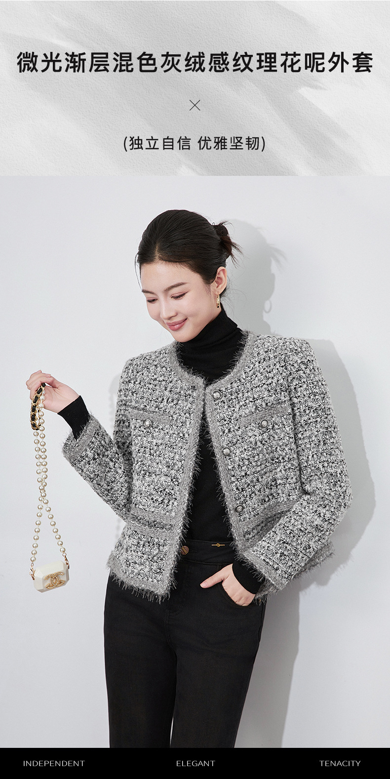 【高货wl】全新升级【铂金会员367/天猫489/差价122】(81902) 洛诗琳轻奢亮丝编织小香风粗花呢外套女新款毛边圆领上衣