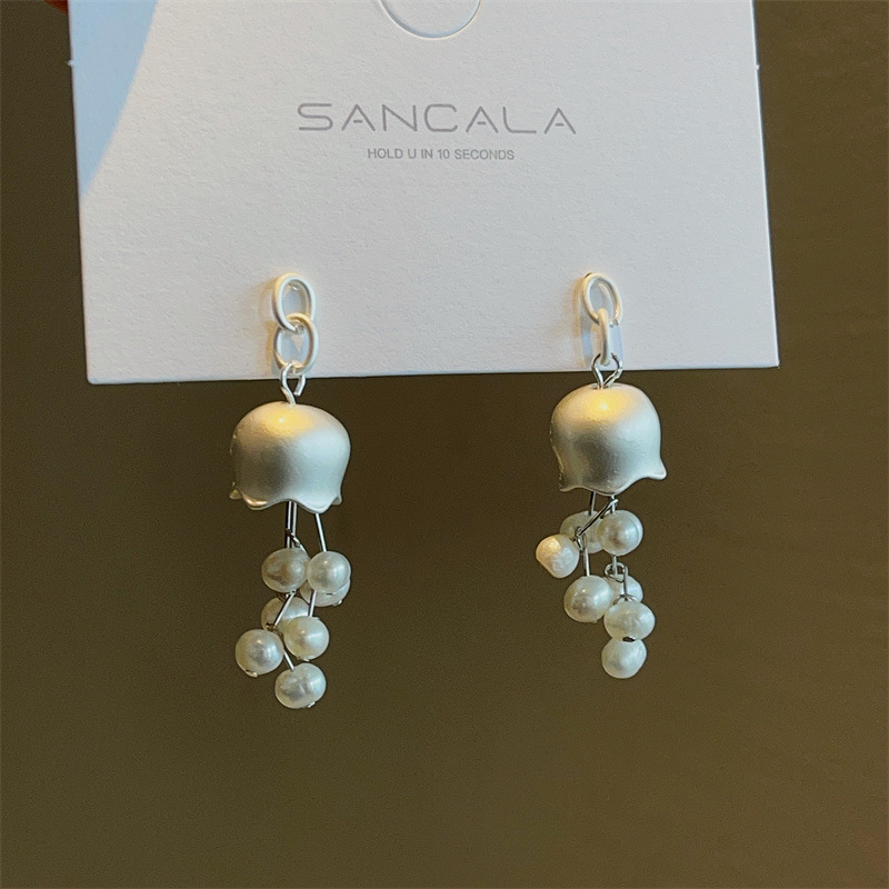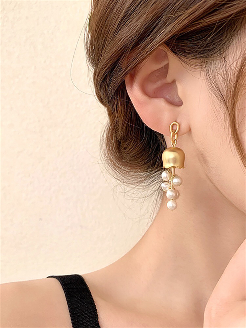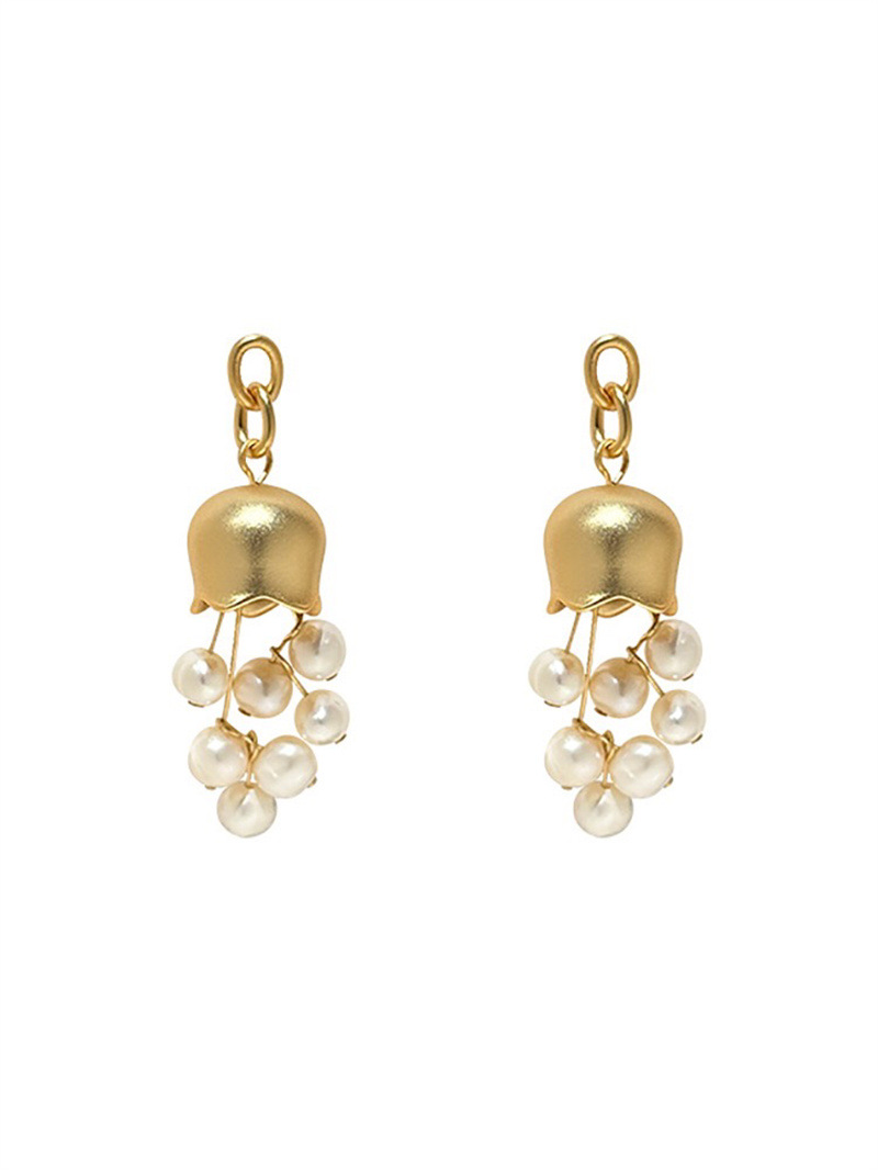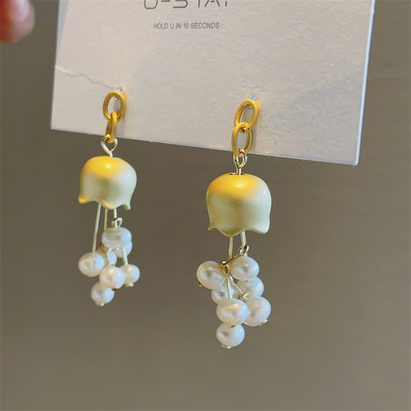 淡水真珍珠 925银针小众设计哑金电镀耳环铃兰花朵清新甜美百搭