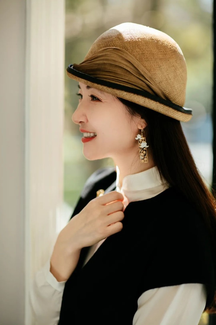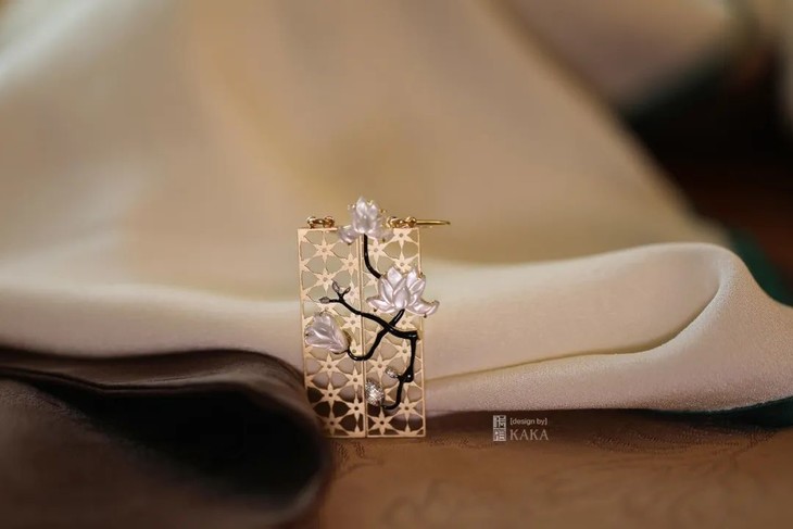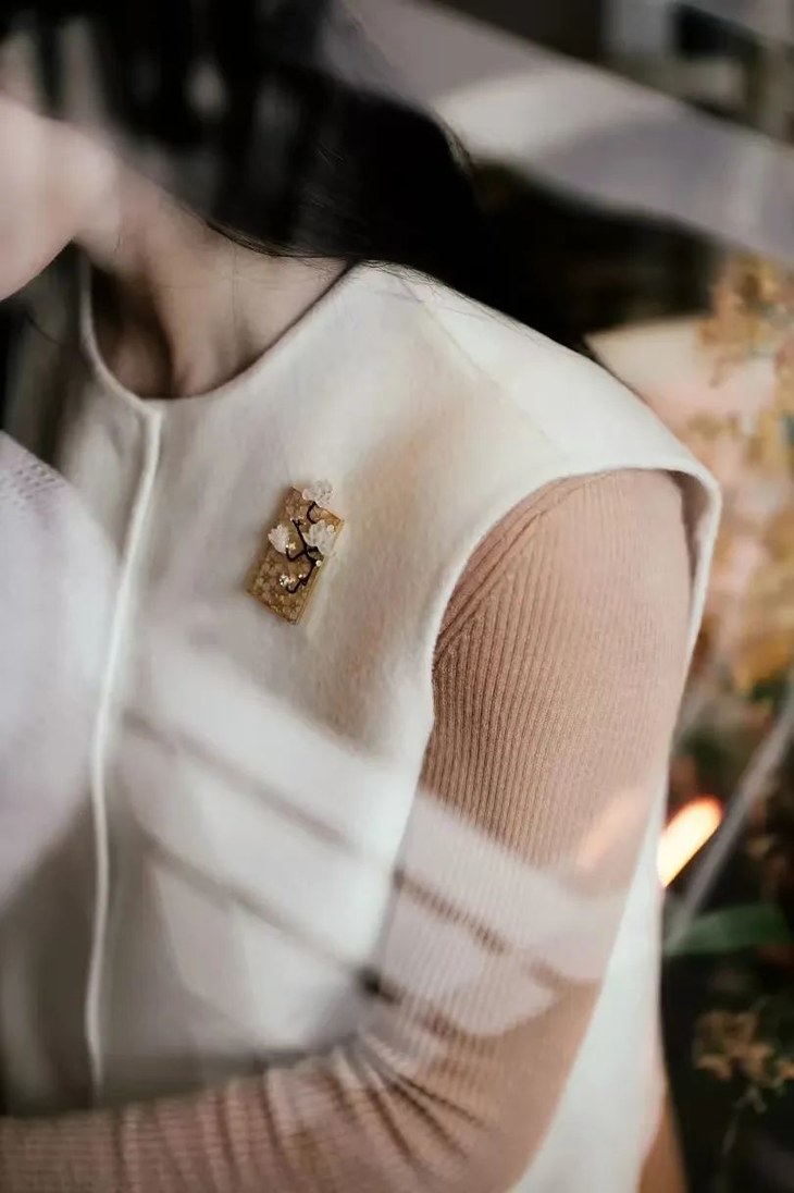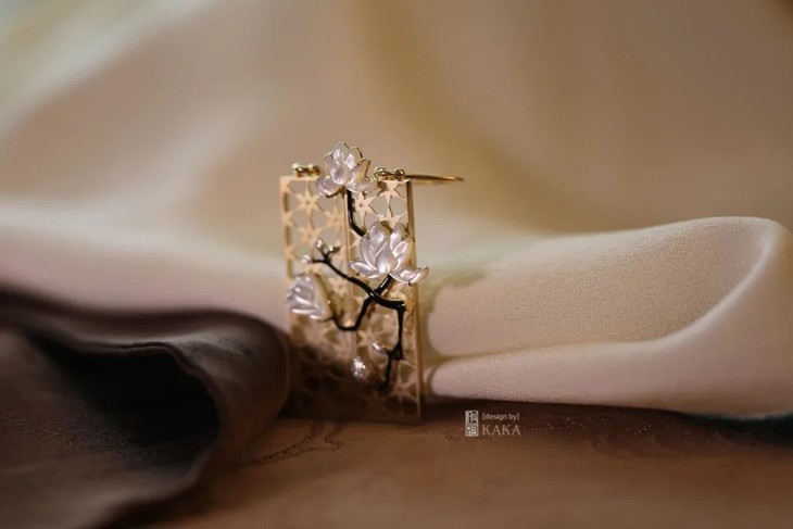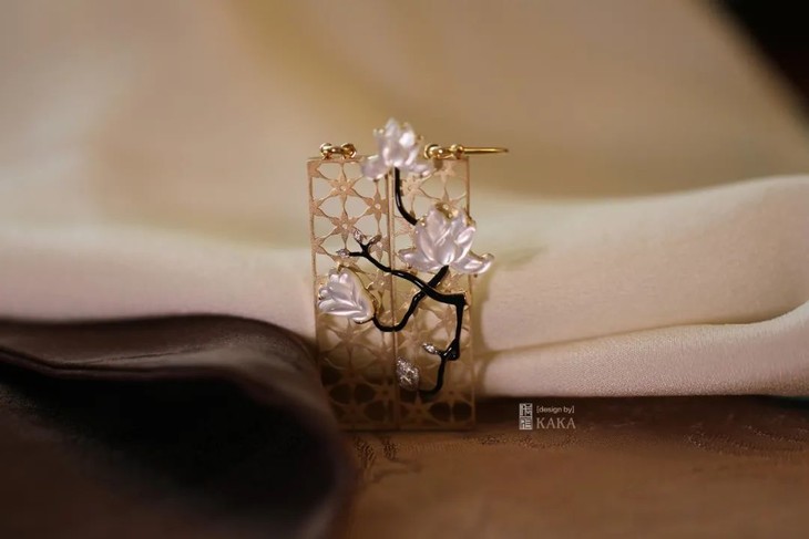在胸针作品上进行二次解构开发的玉兰耳环,