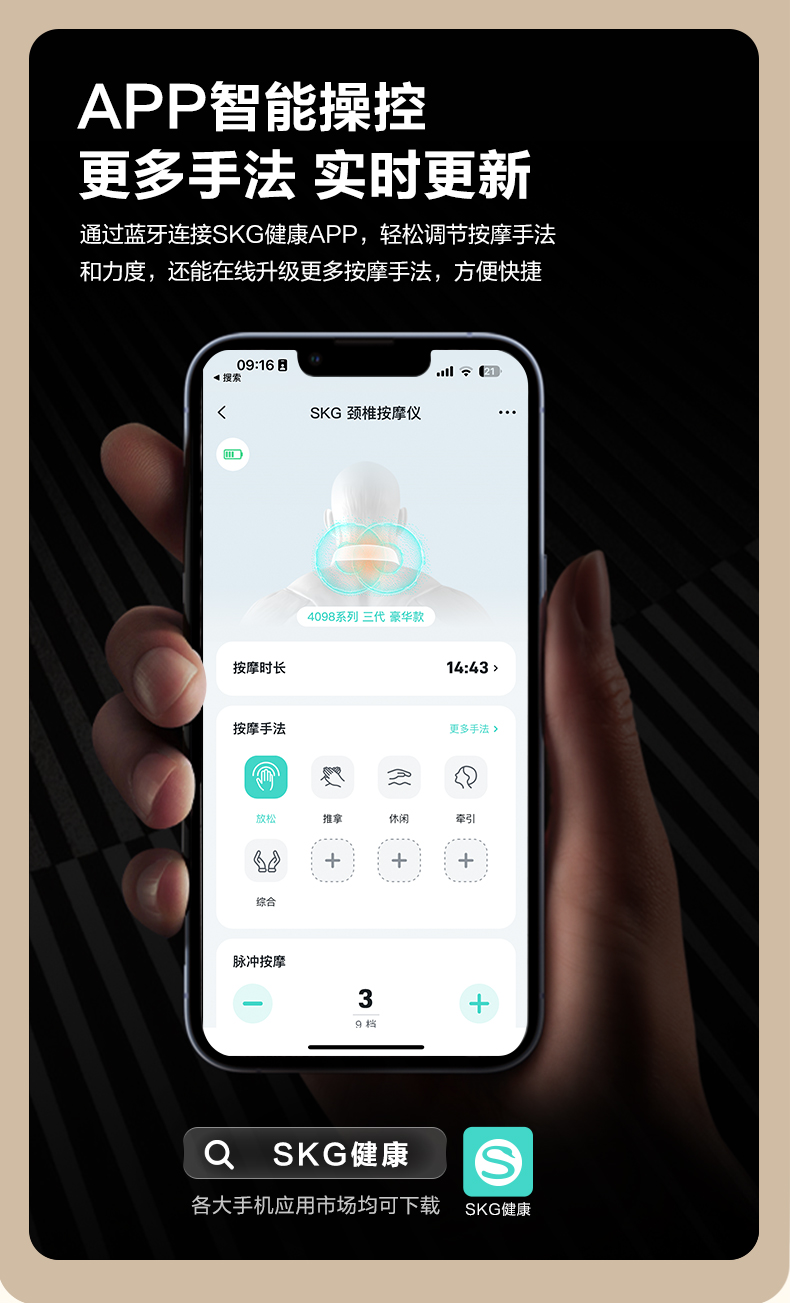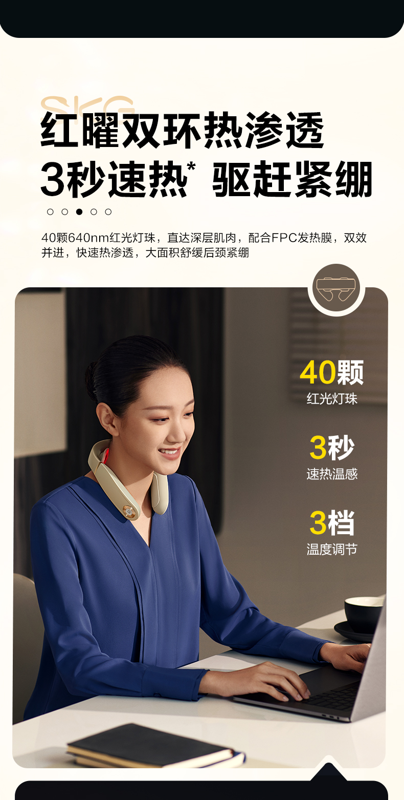 SKG是一家专注于可穿戴按摩仪研发、设计、生产的全球化科技公司,多次荣获荣获国际IF、红点等设计大奖。