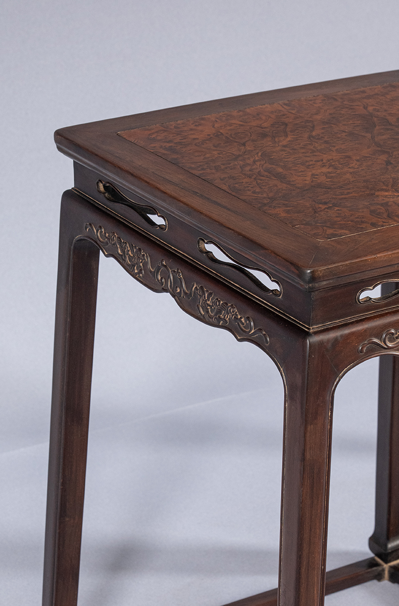 二十世纪 红木嵌云石透雕拐子纹百灵台