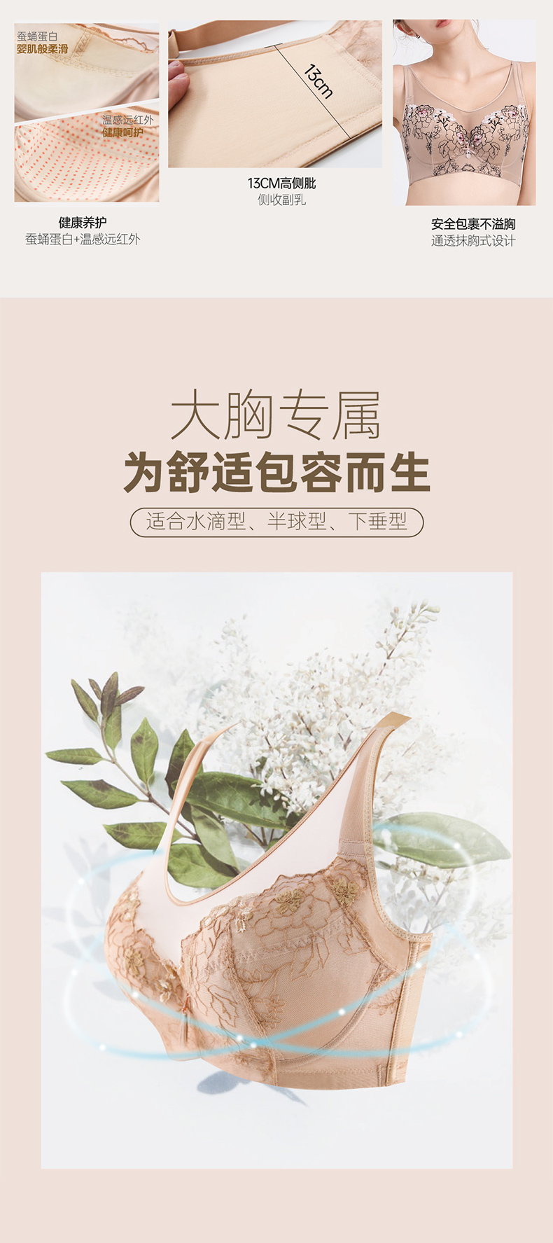 贝佳人抹胸全罩薄款侧收大杯文胸显小内衣聚拢文胸BW982003