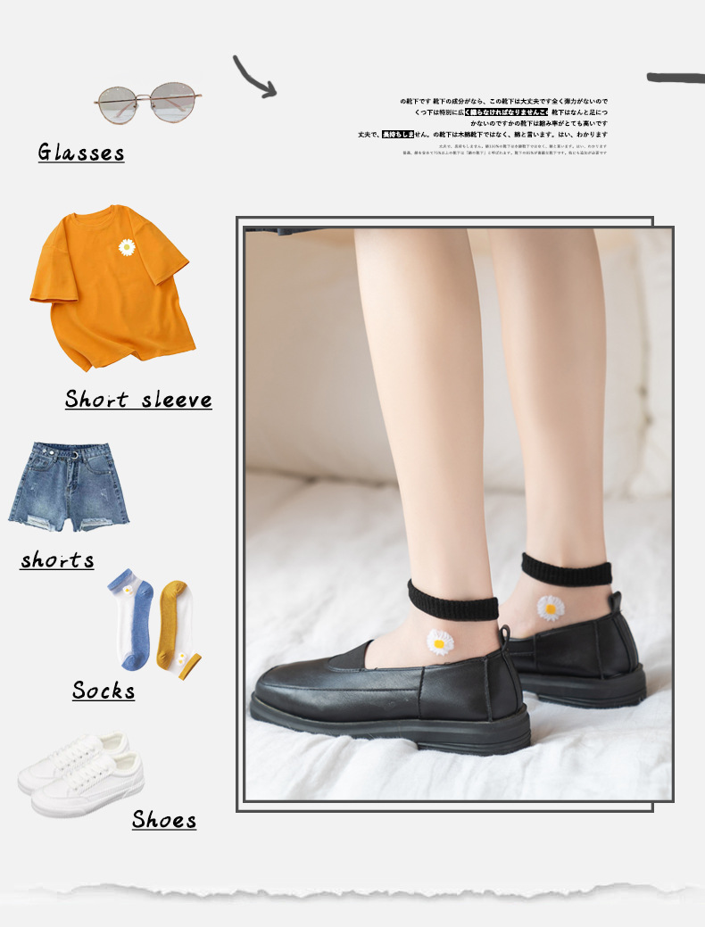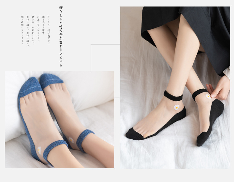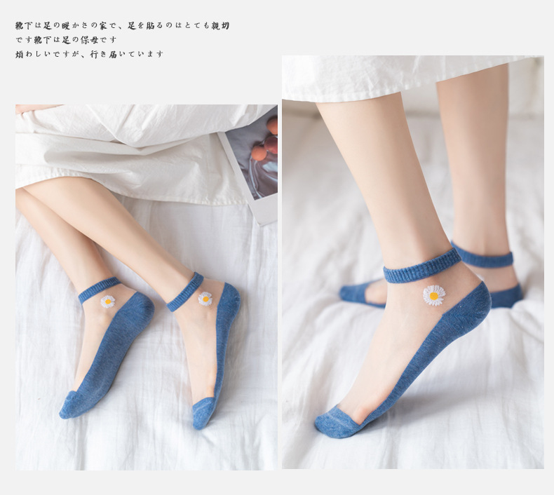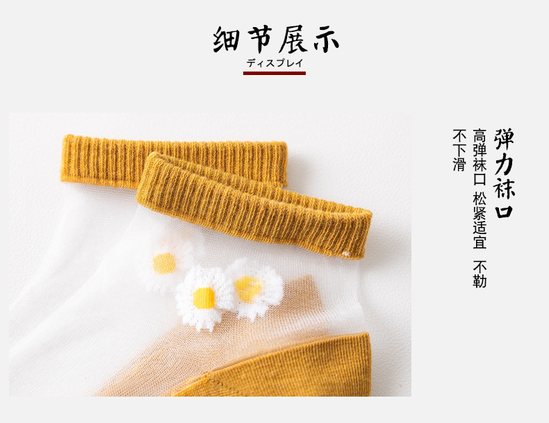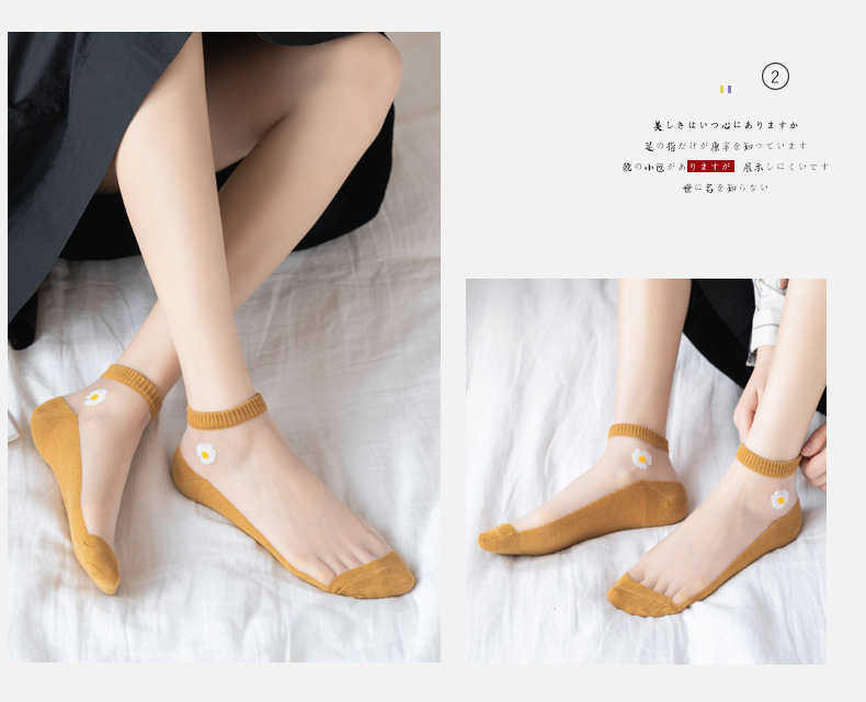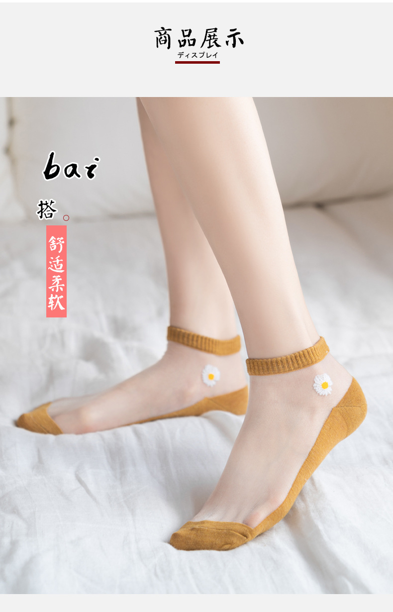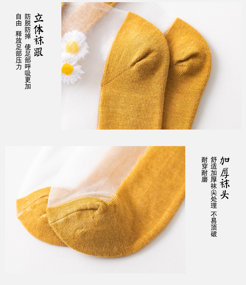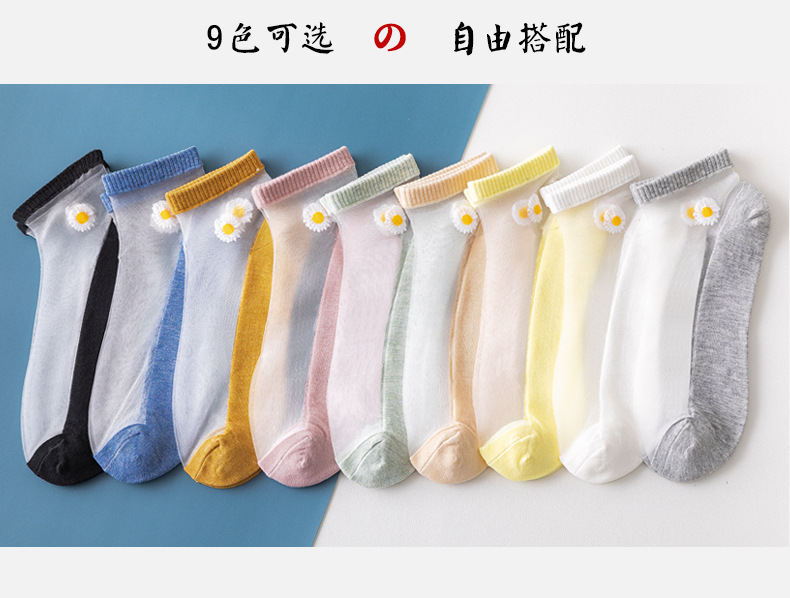 【超值5双装】春夏爆款玻璃丝小雏菊水晶丝袜浅 薄款透气不闷不臭脚 女浅口透明卡丝船袜9色热卖