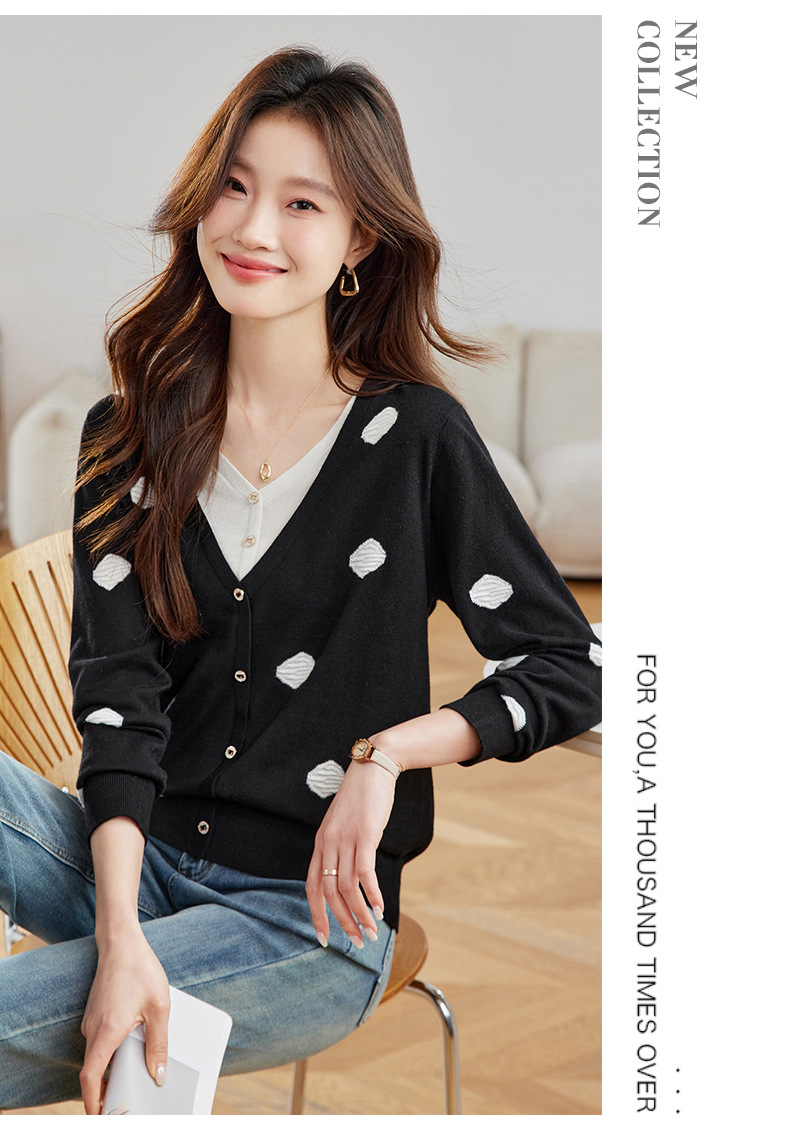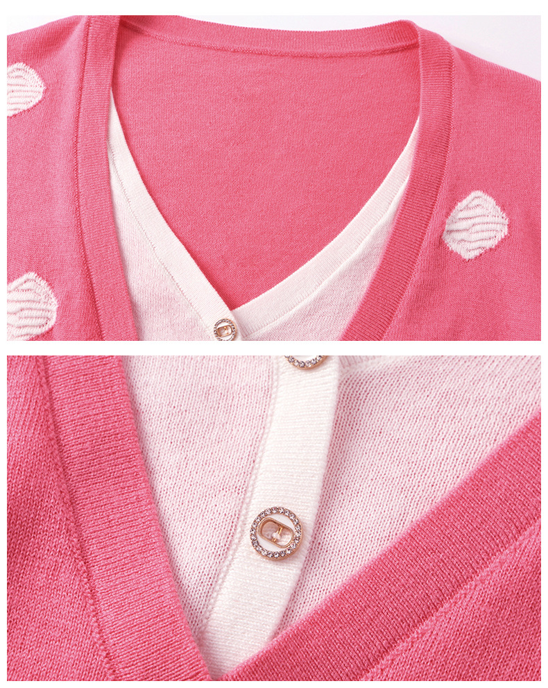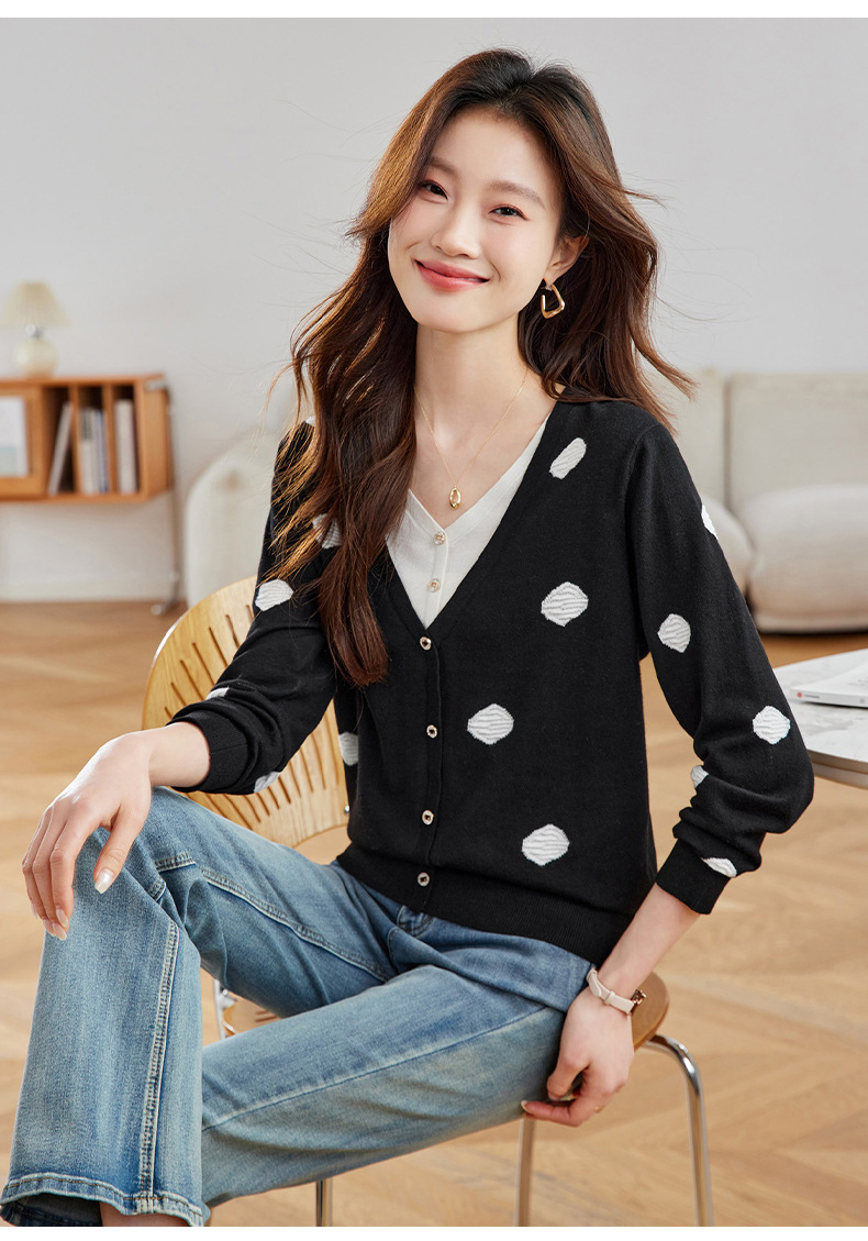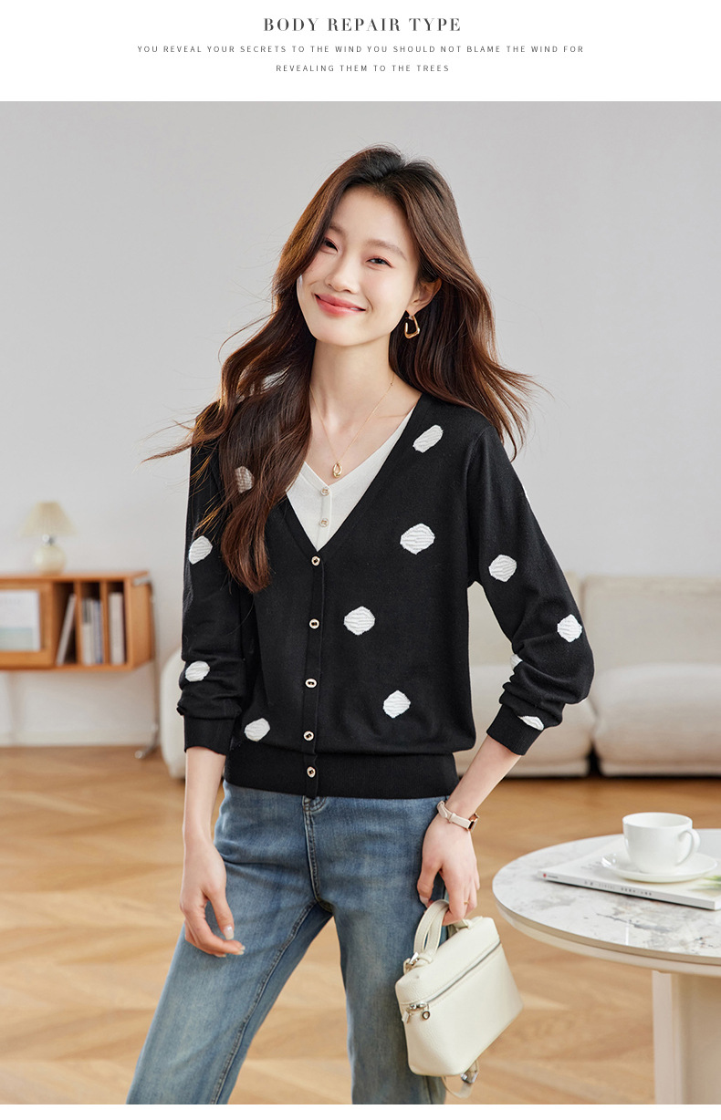 2025春秋新款V领假两件针织拼接t恤女宽松显瘦遮肚子打底上衣春季