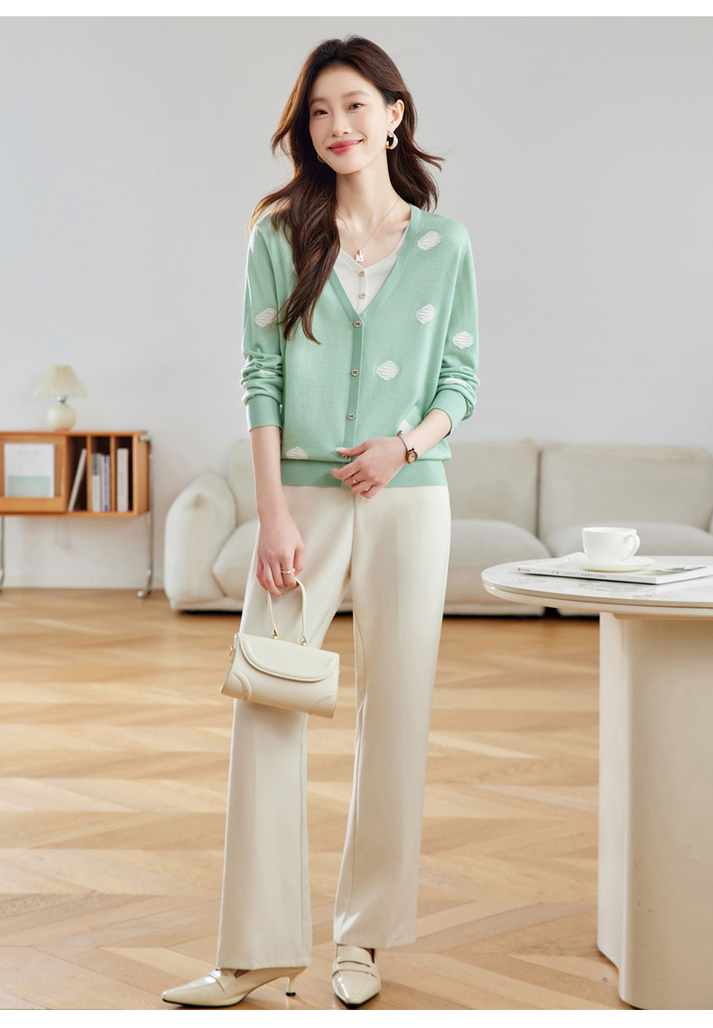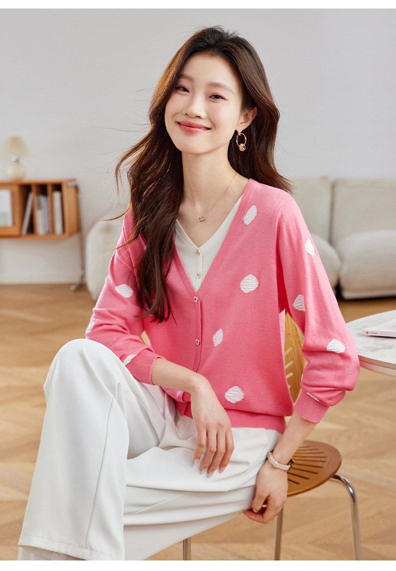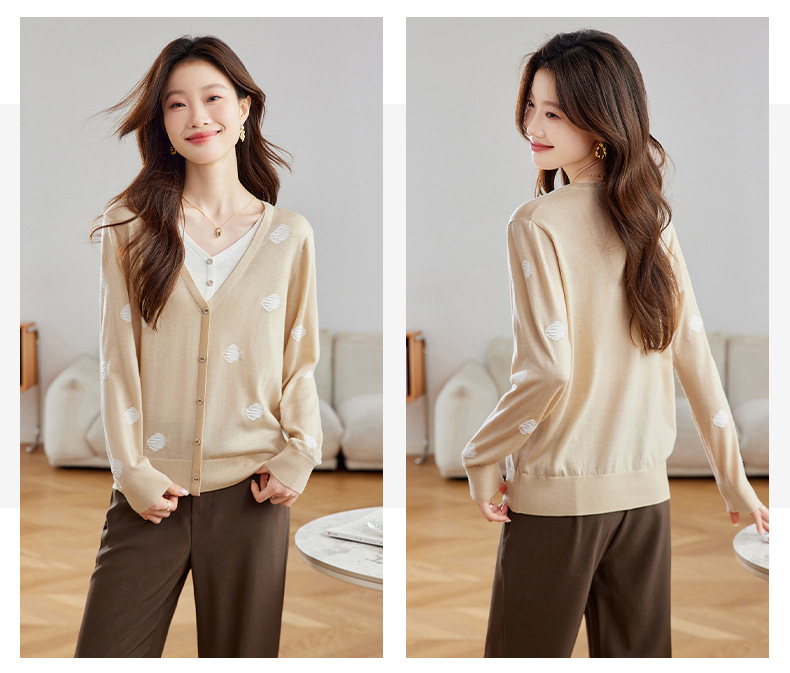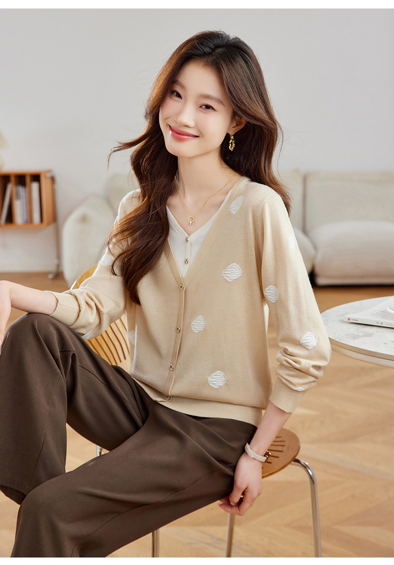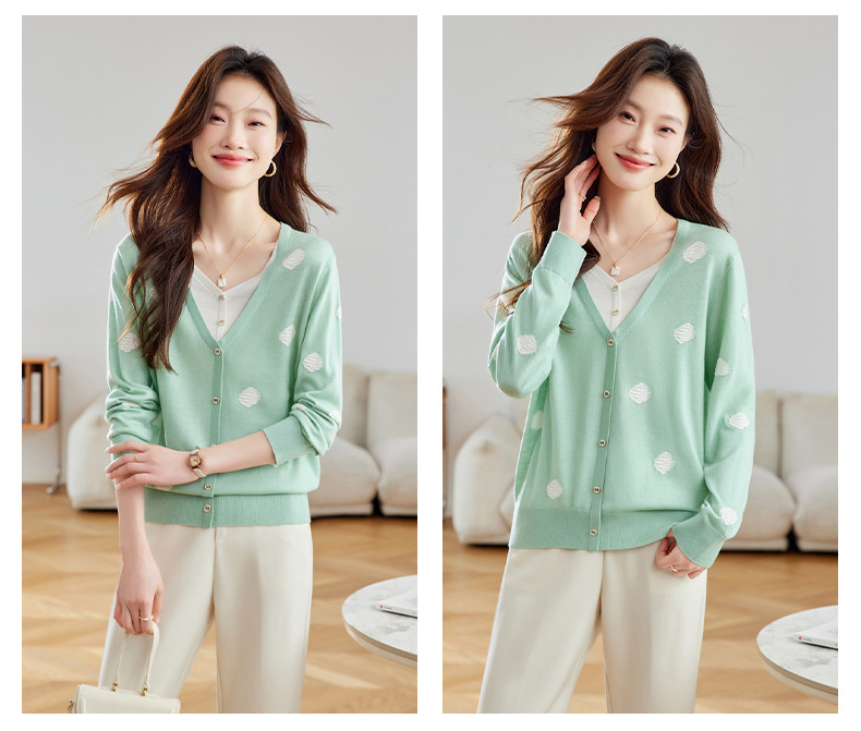 2025春秋新款V领假两件针织拼接t恤女宽松显瘦遮肚子打底上衣春季