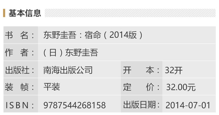 ★读《宿命》,****不要先看结尾。我*喜欢暗藏在*后一行的意外。——东野圭吾
