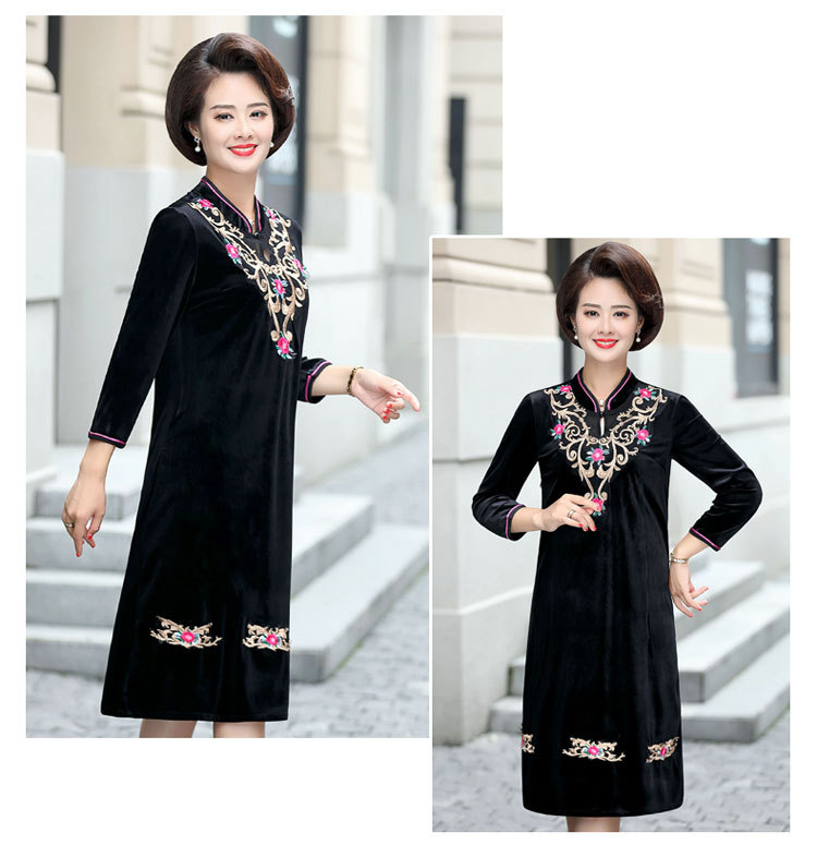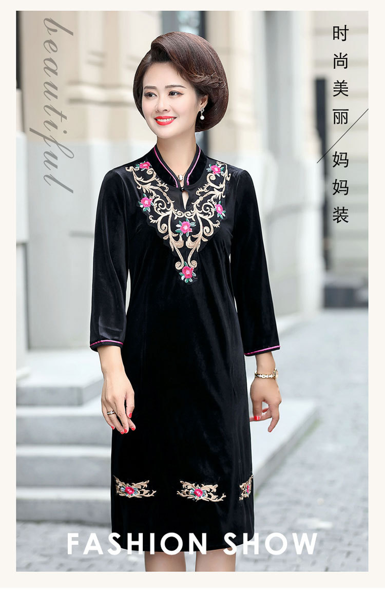 YCE-3472-9802绣花改良旗袍过膝裙子