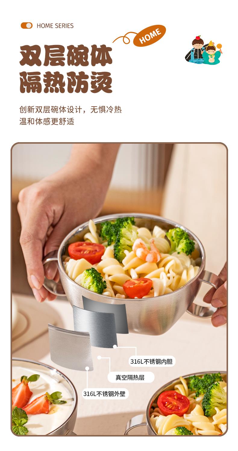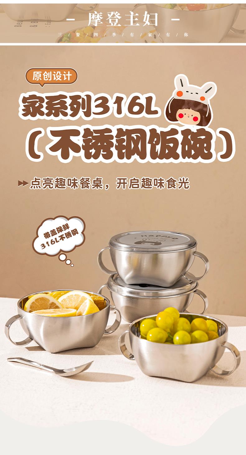 摩登主妇316L不锈钢碗儿童饭碗家用2025新款婴儿辅食碗带盖宝宝碗