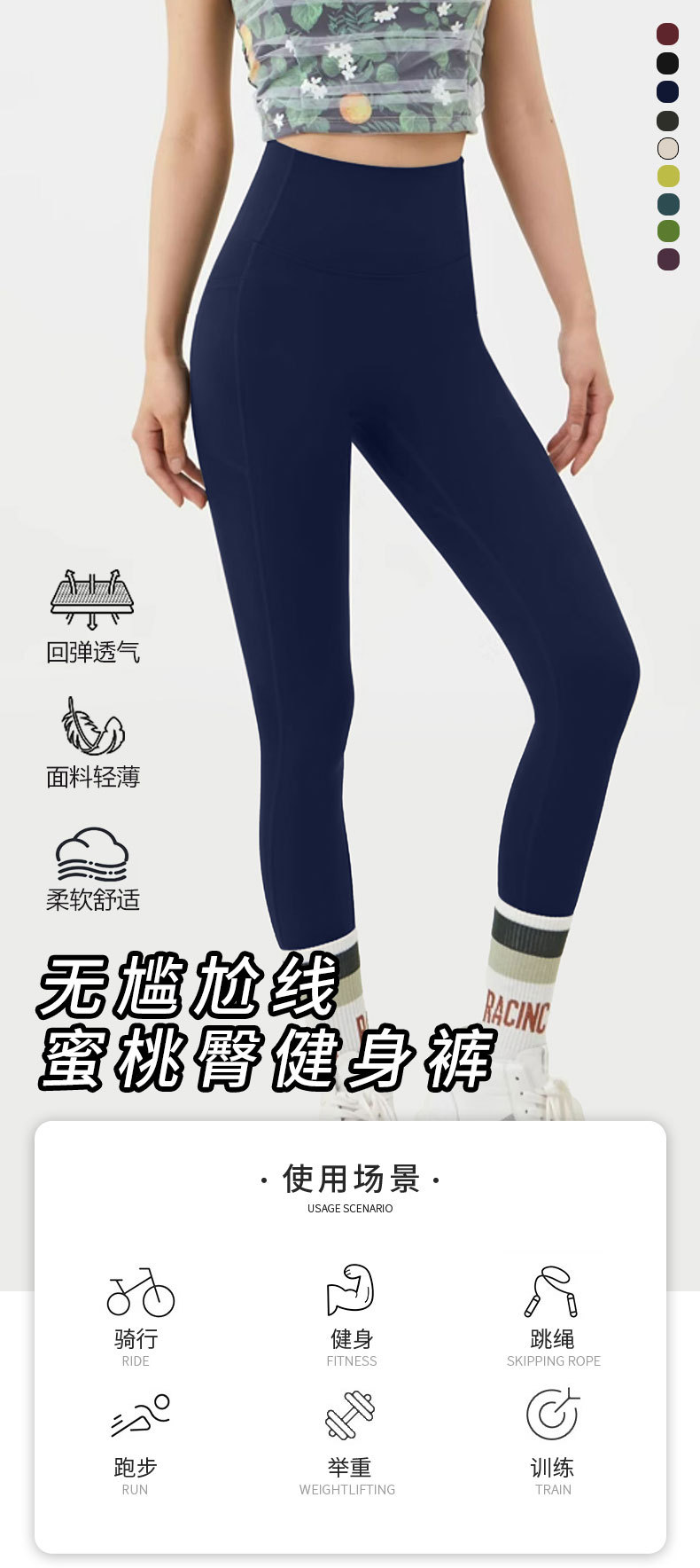 跃牌【美西西系列】裸感免穿内裤高弹紧翘跑步健身训练舞蹈普拉提无尴尬线瑜伽裤CK-648