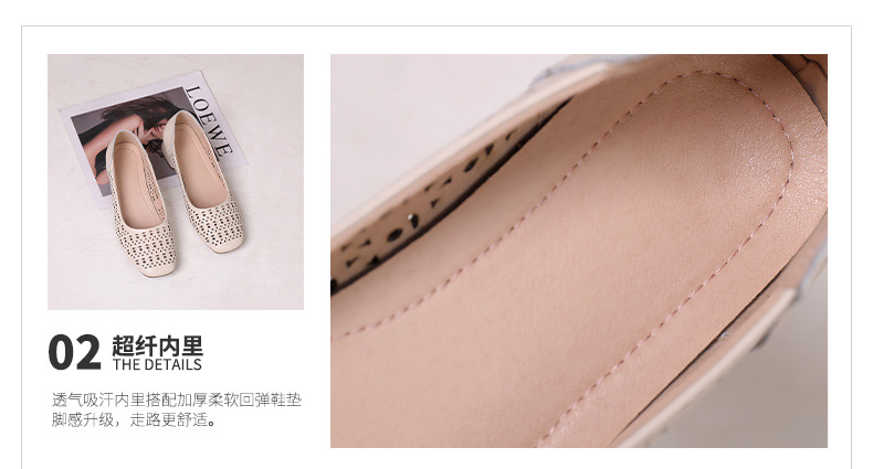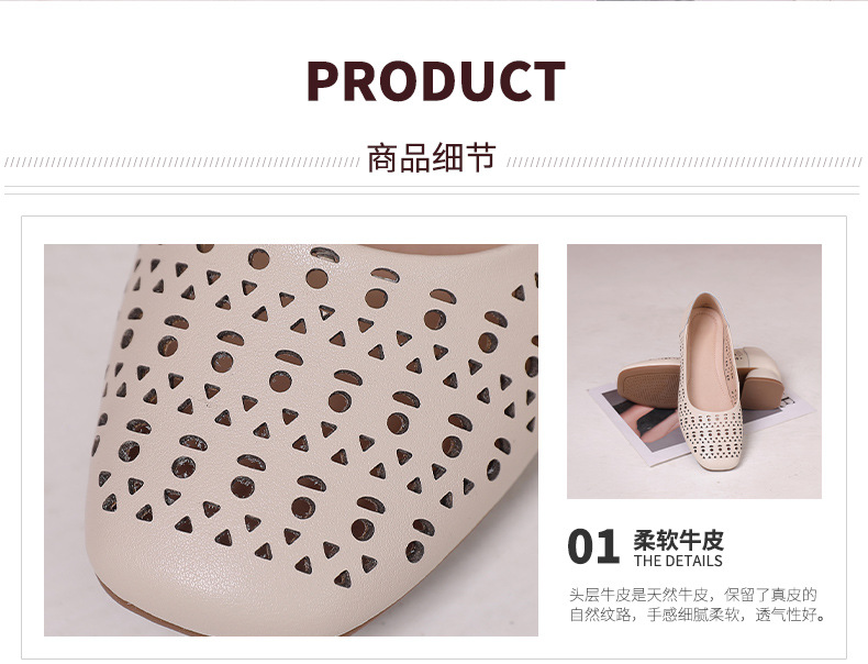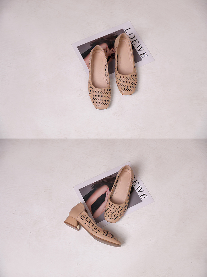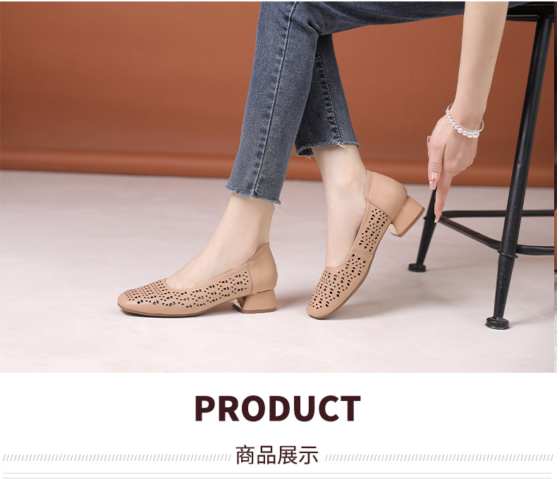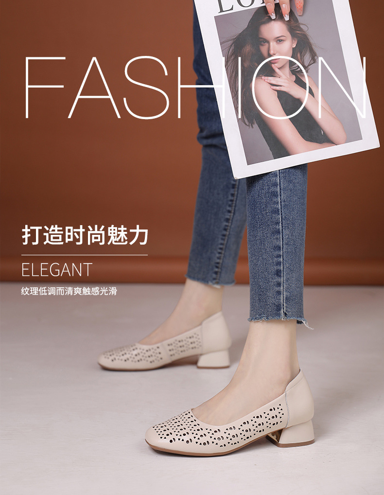 雀说浅口单鞋真皮洞洞浅口打孔镂空中跟凉鞋舒适四季单鞋AL1501