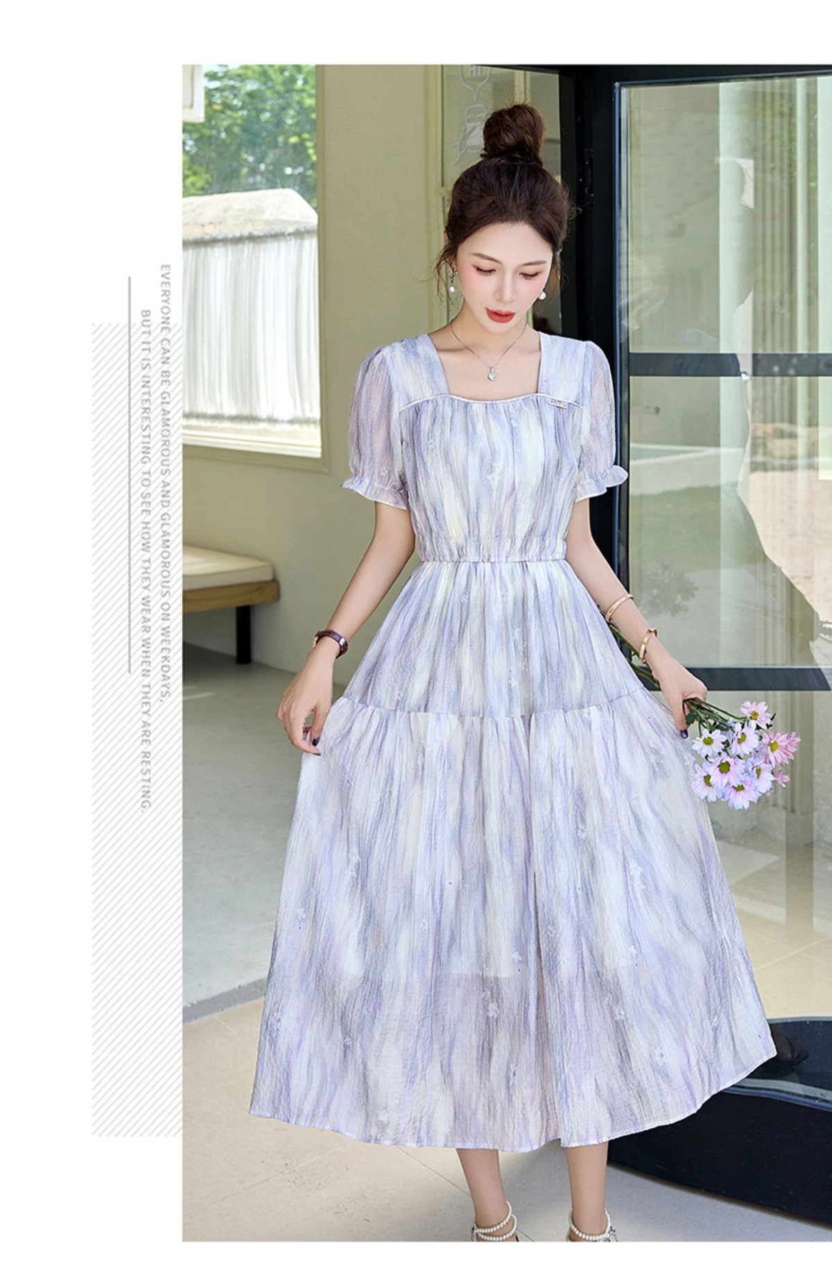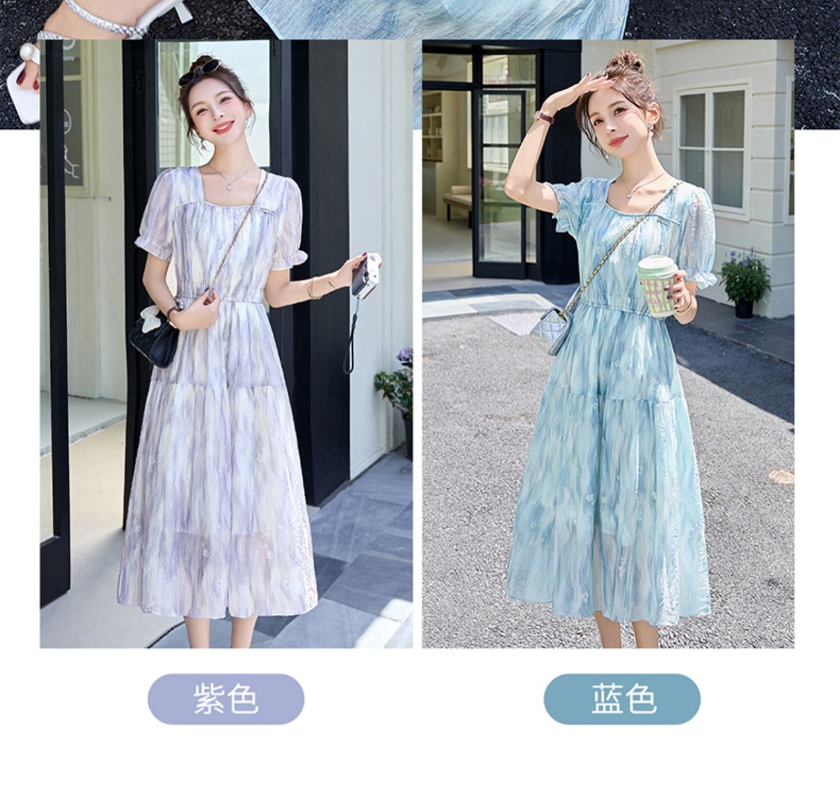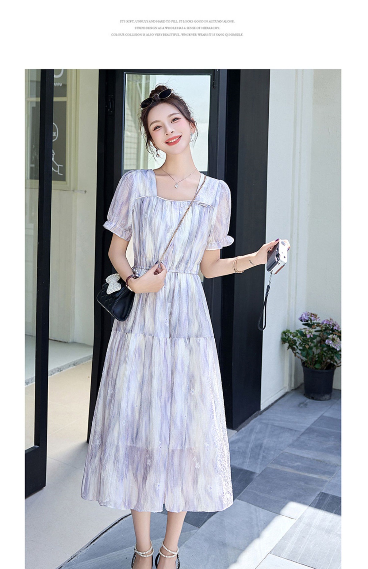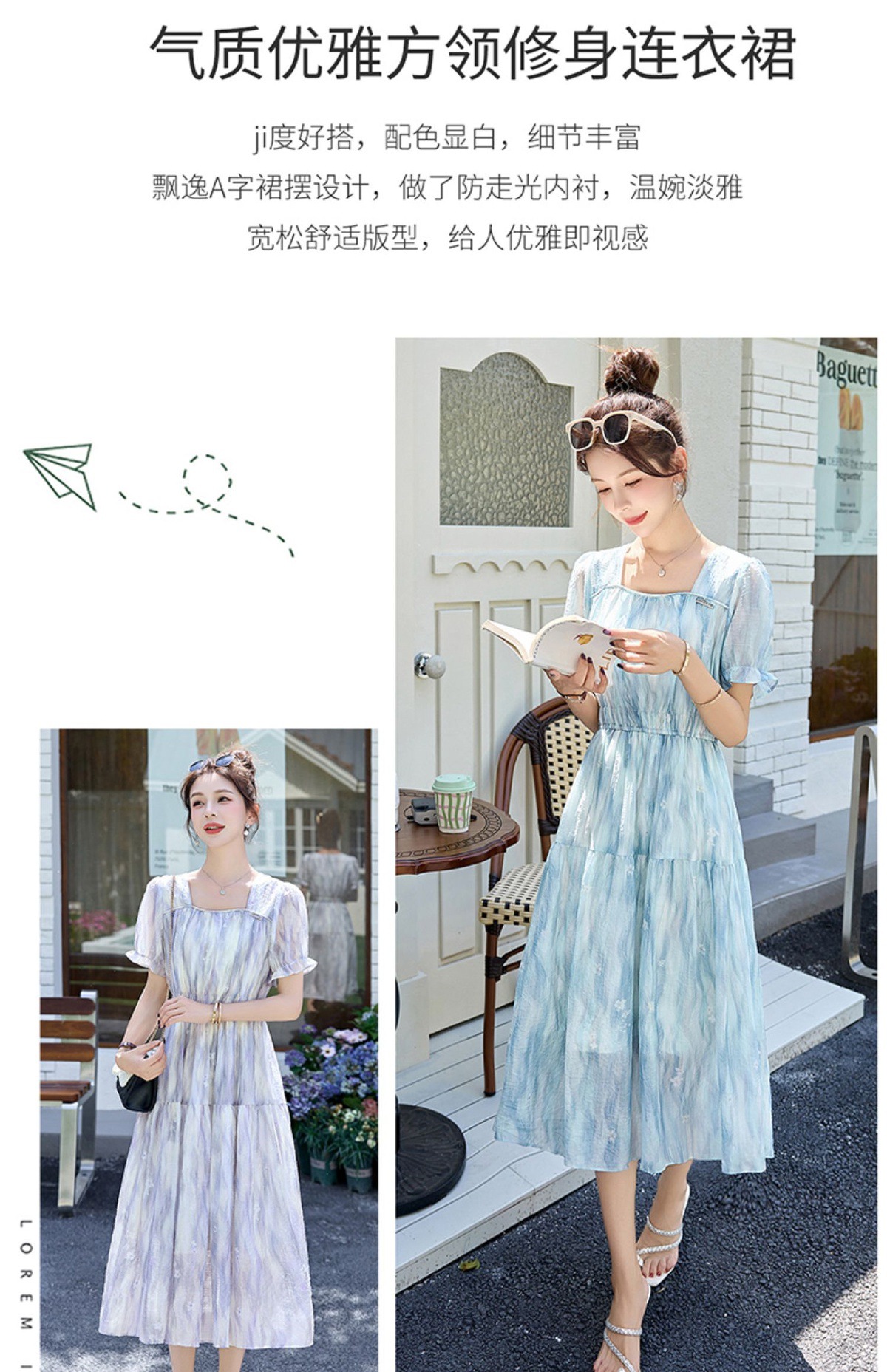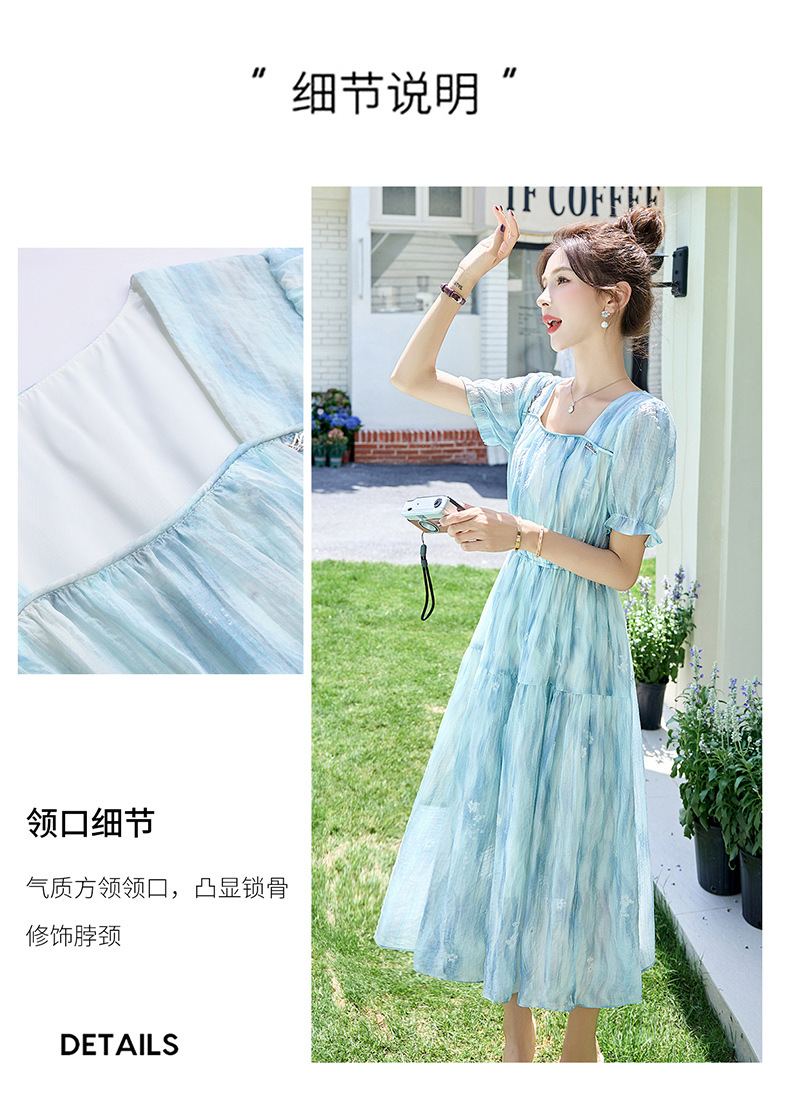 泡泡袖小个子方领连衣裙,时尚显瘦洋气法式气质裙子HR-8891