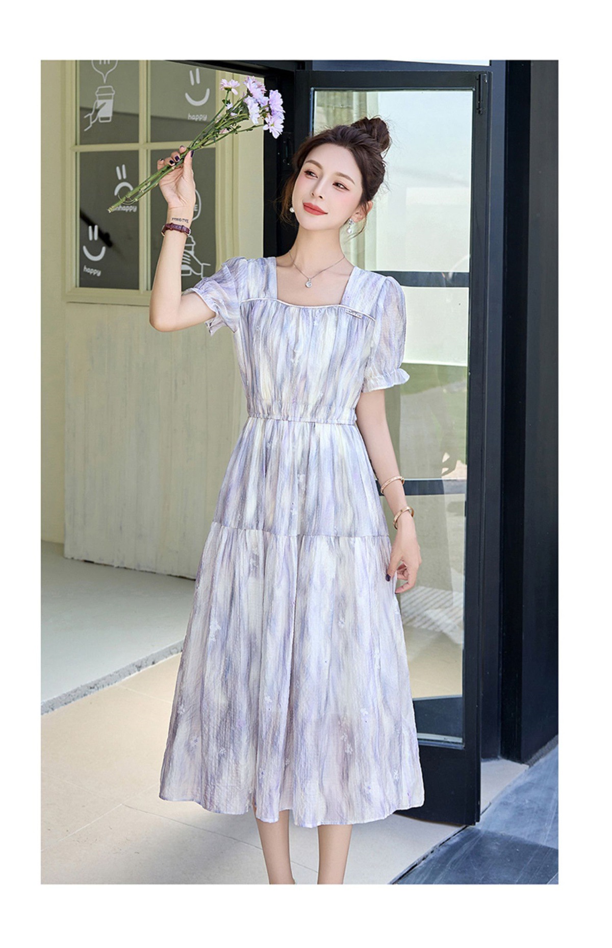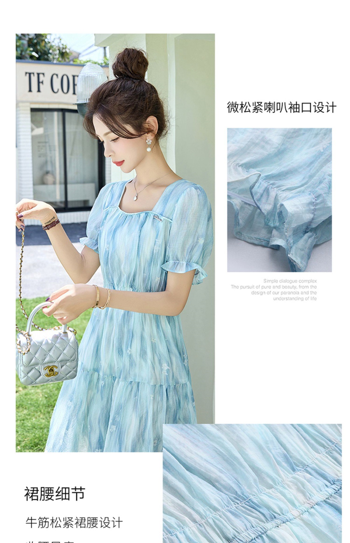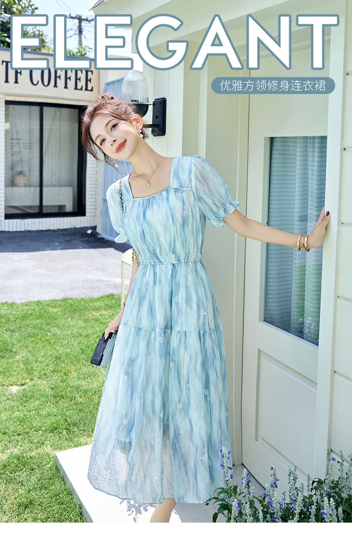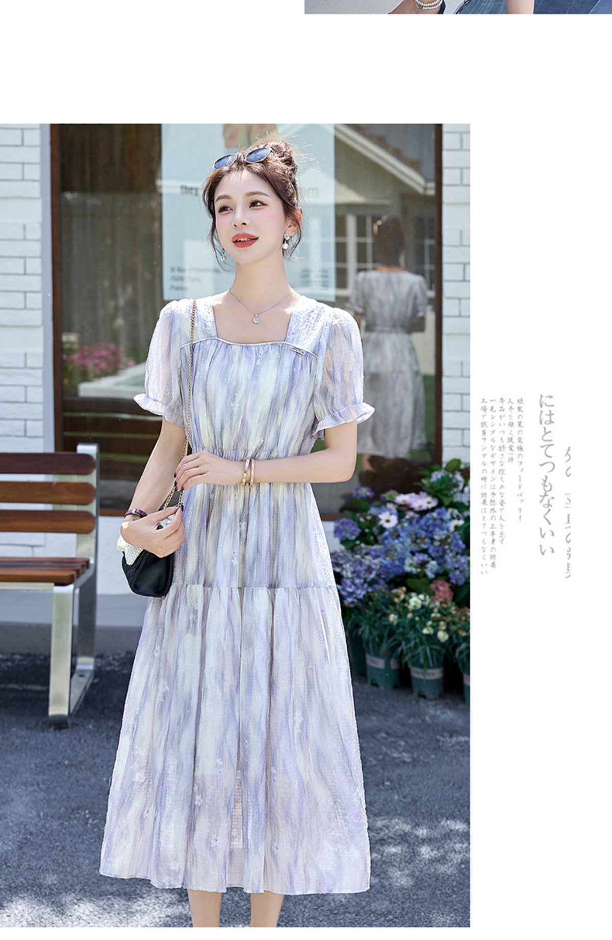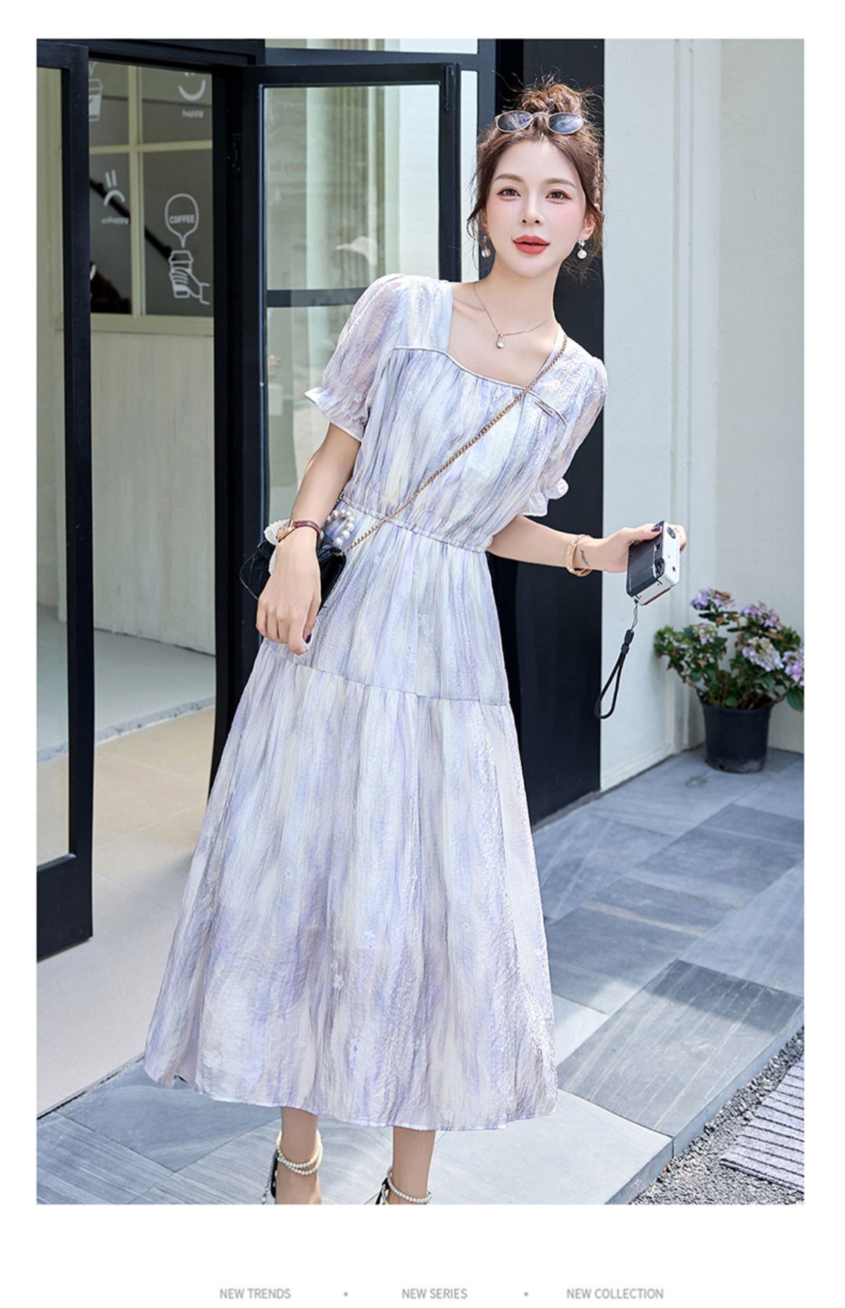 泡泡袖小个子方领连衣裙,时尚显瘦洋气法式气质裙子HR-8891