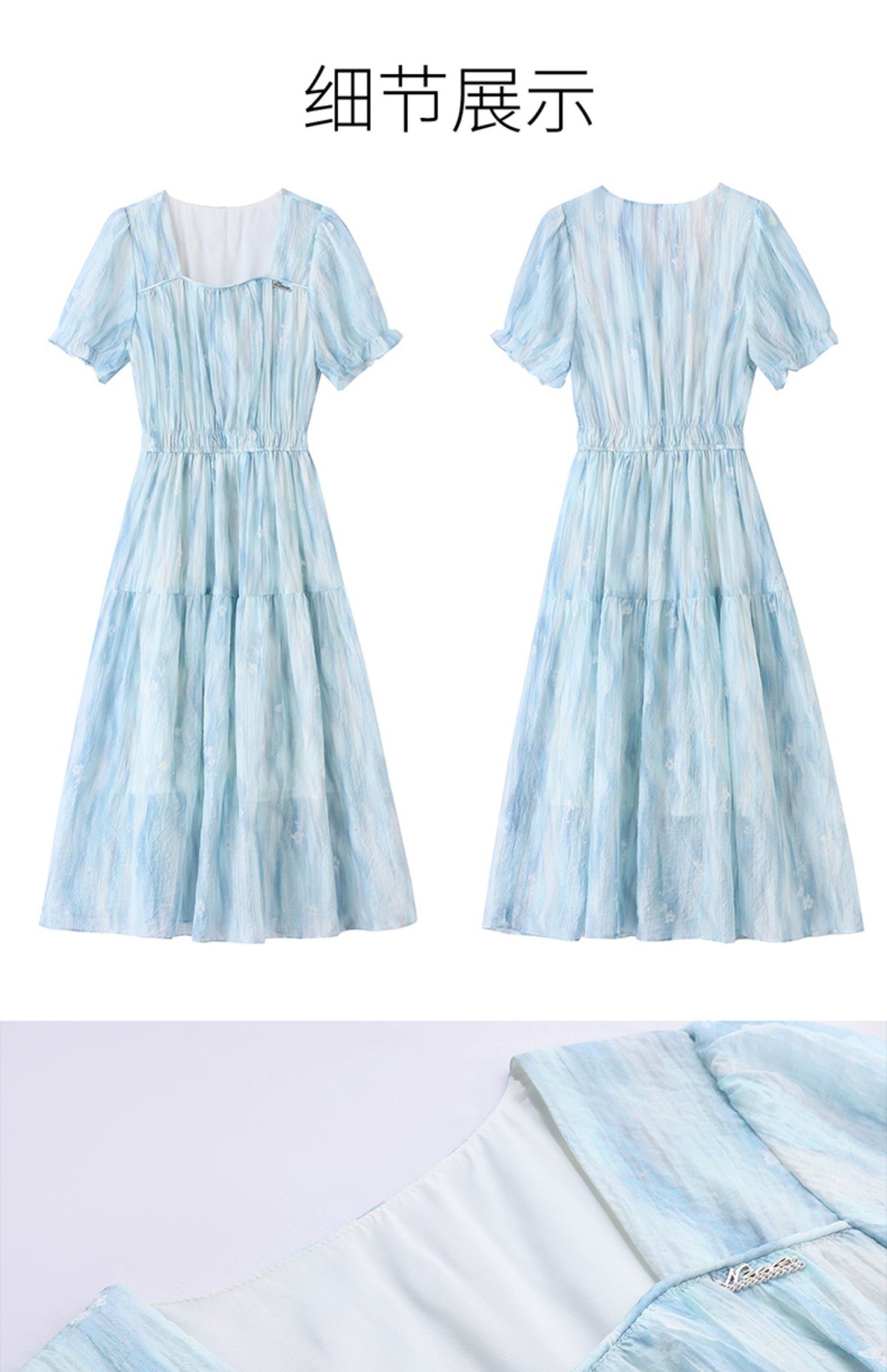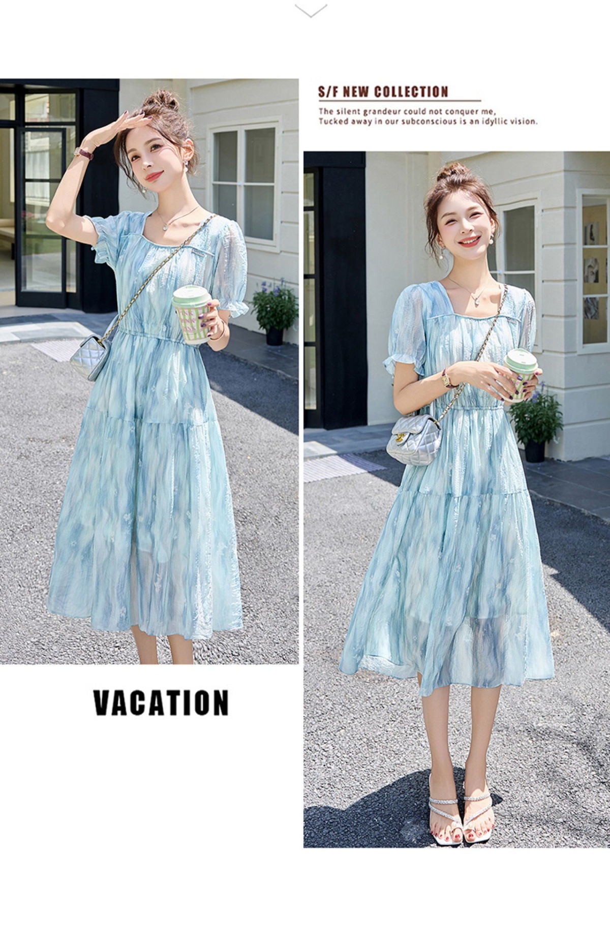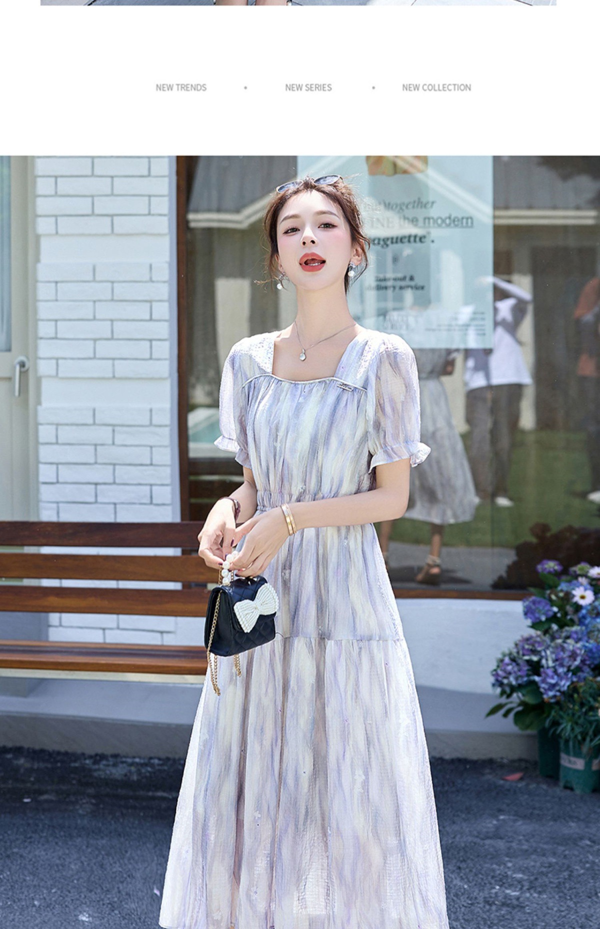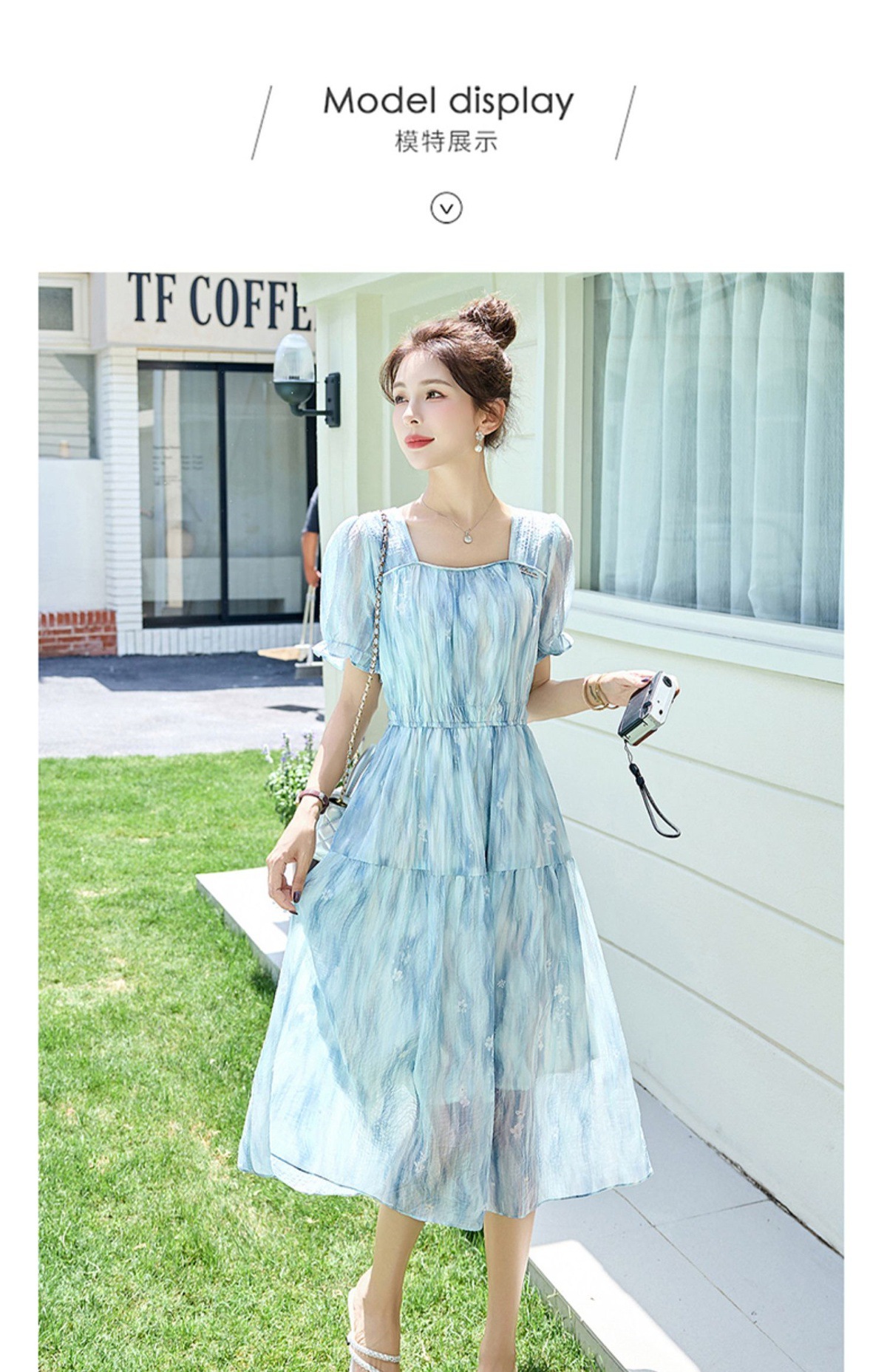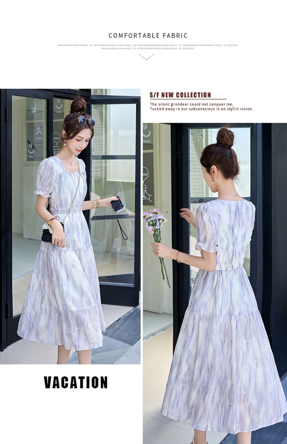 泡泡袖小个子方领连衣裙,时尚显瘦洋气法式气质裙子HR-8891