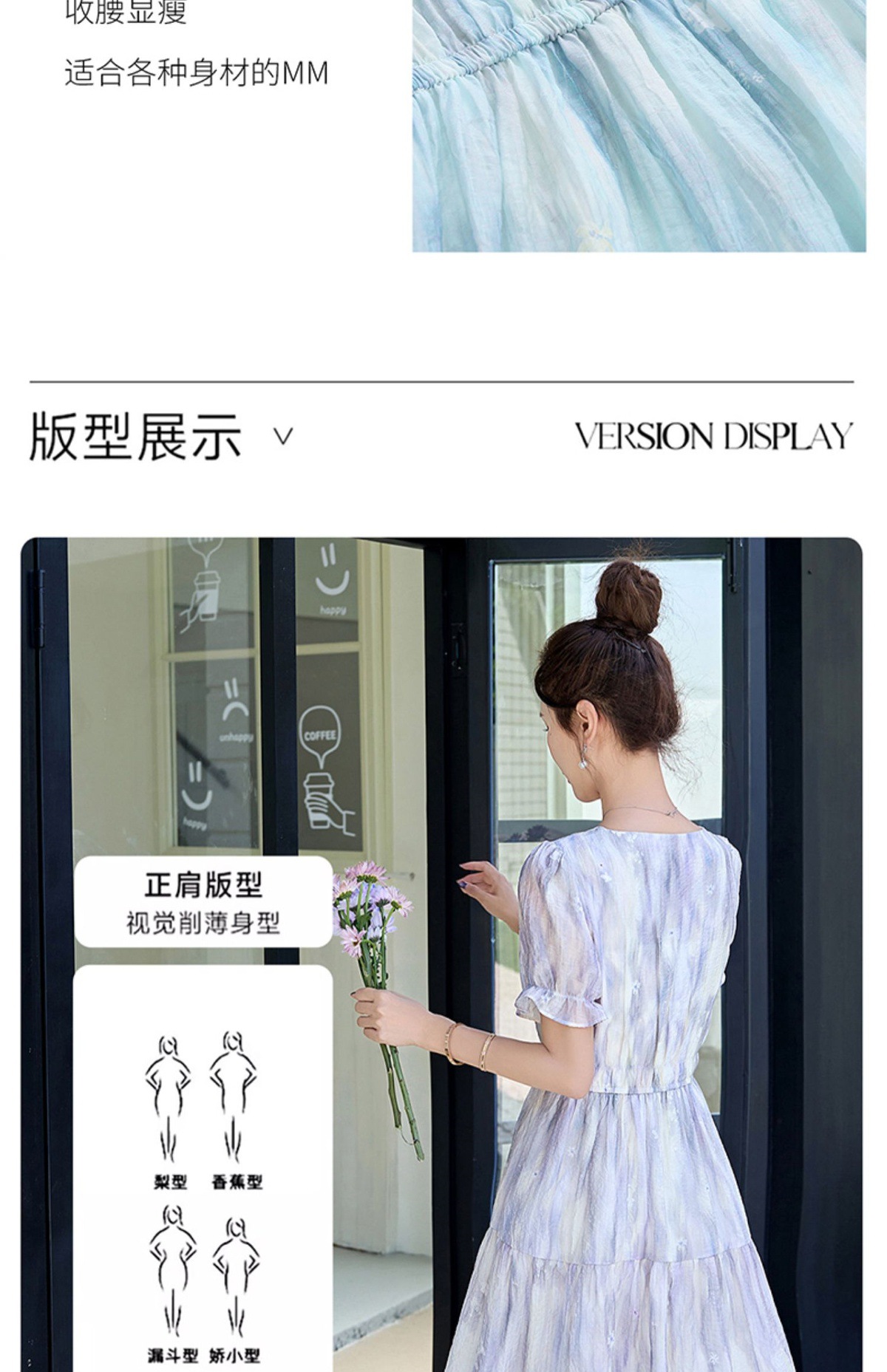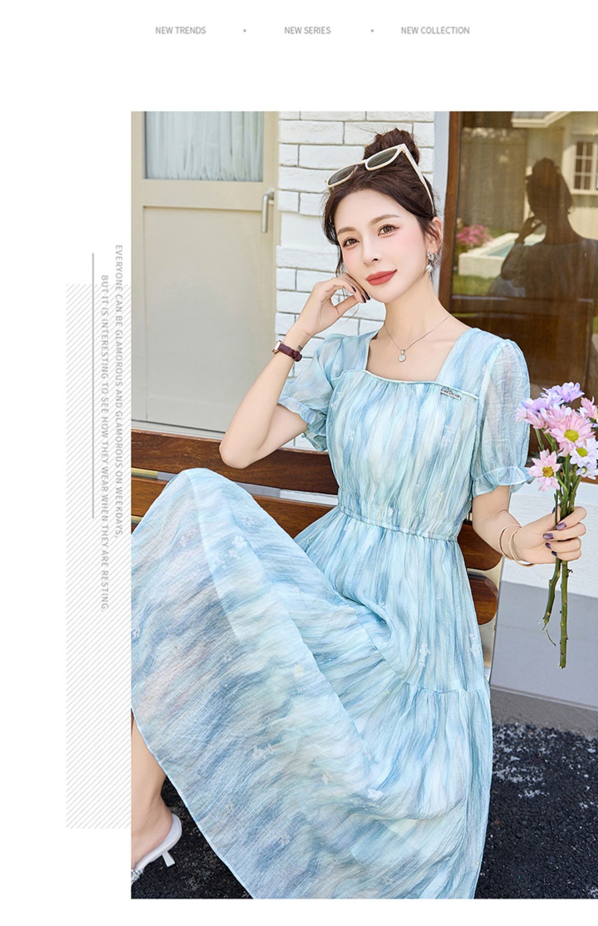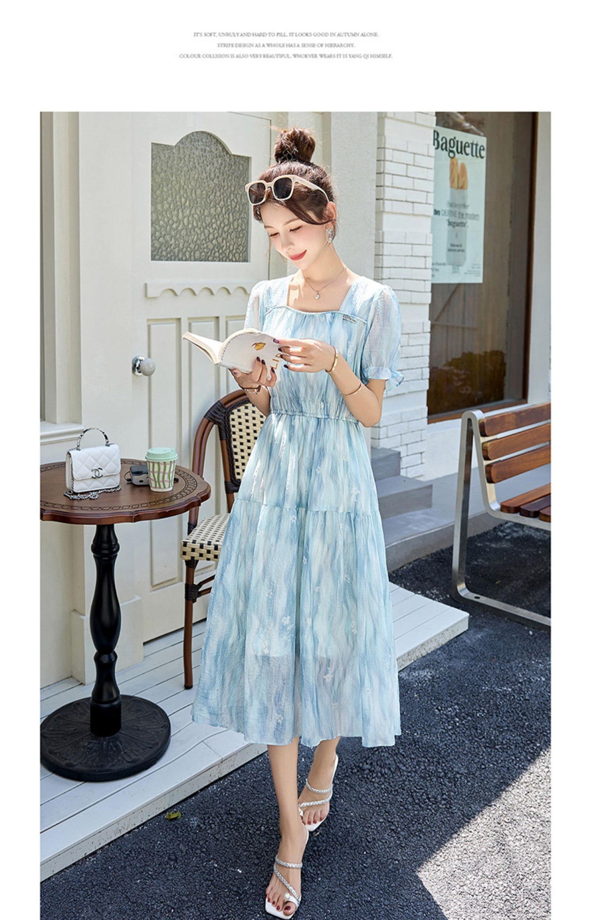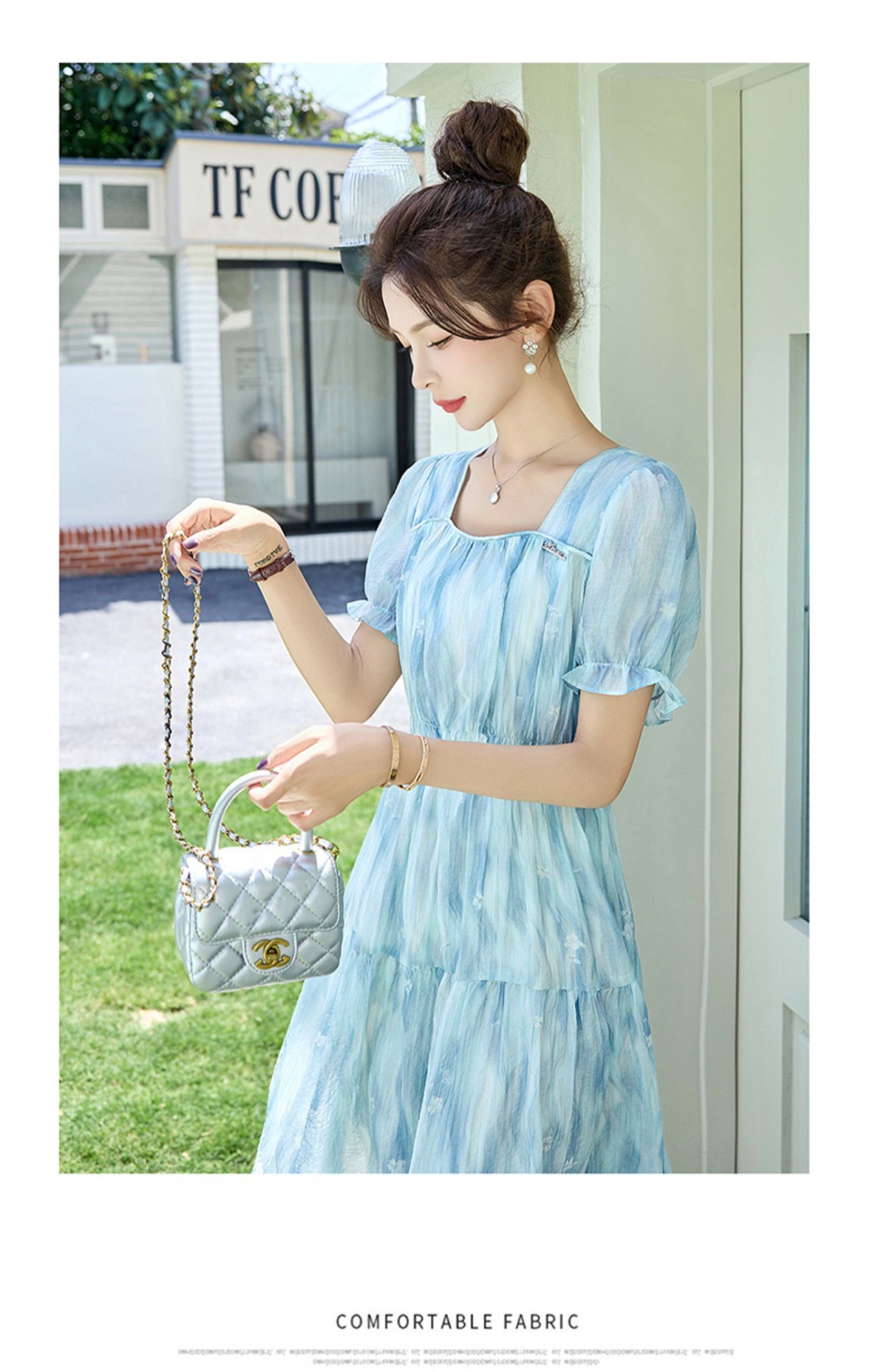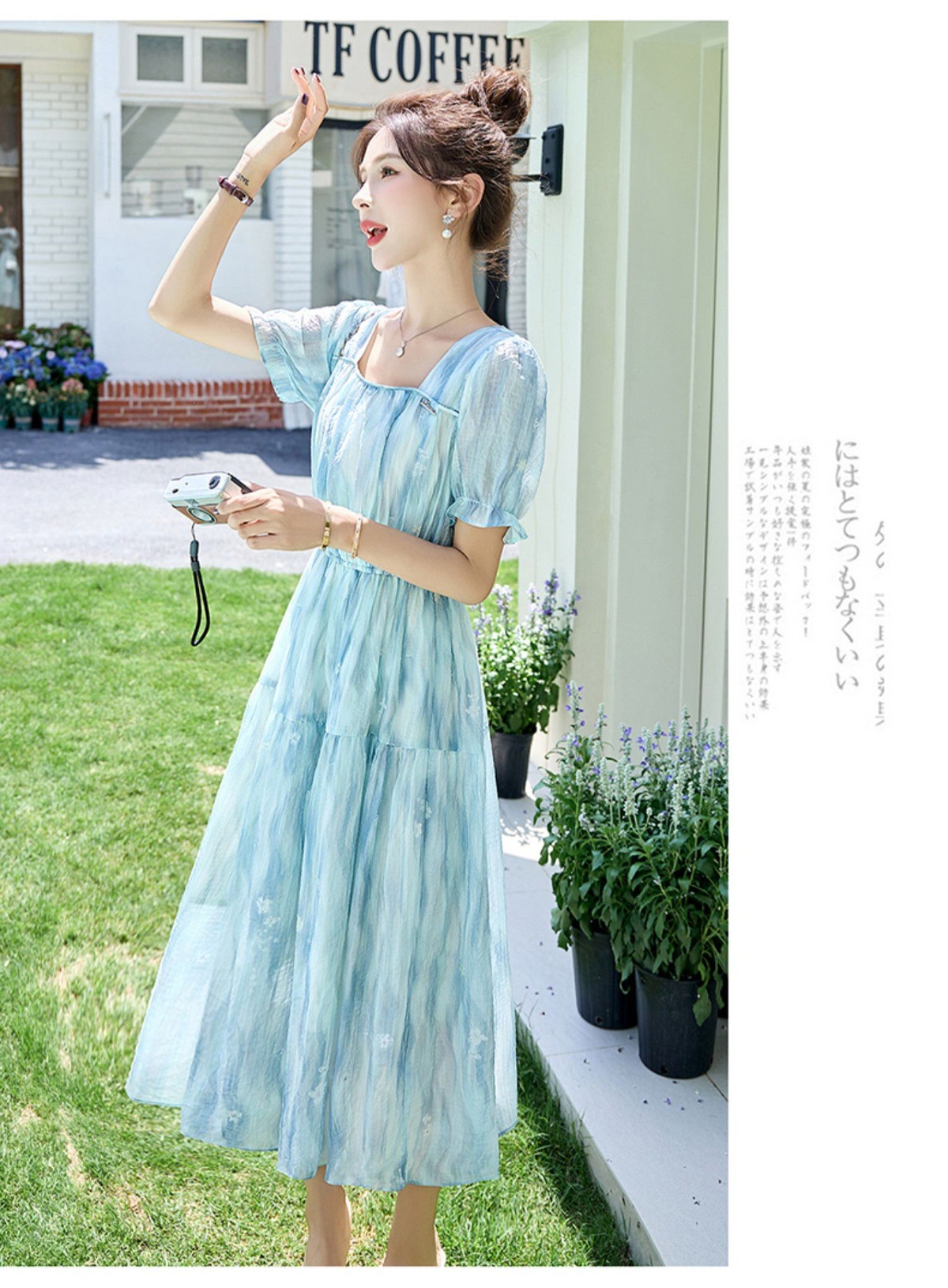 泡泡袖小个子方领连衣裙,时尚显瘦洋气法式气质裙子HR-8891