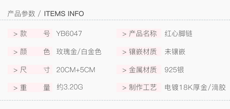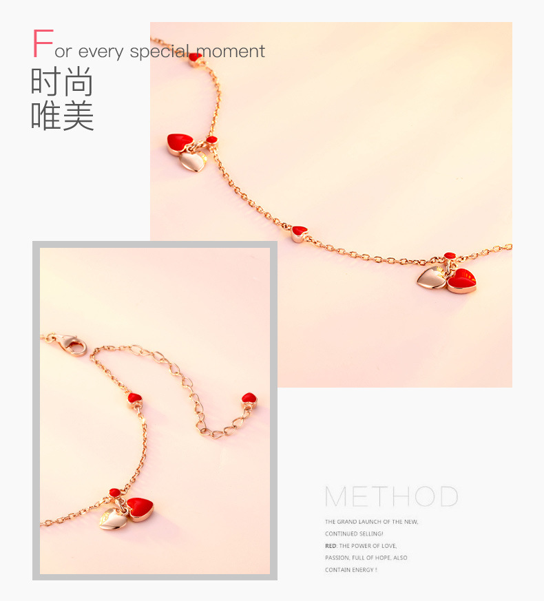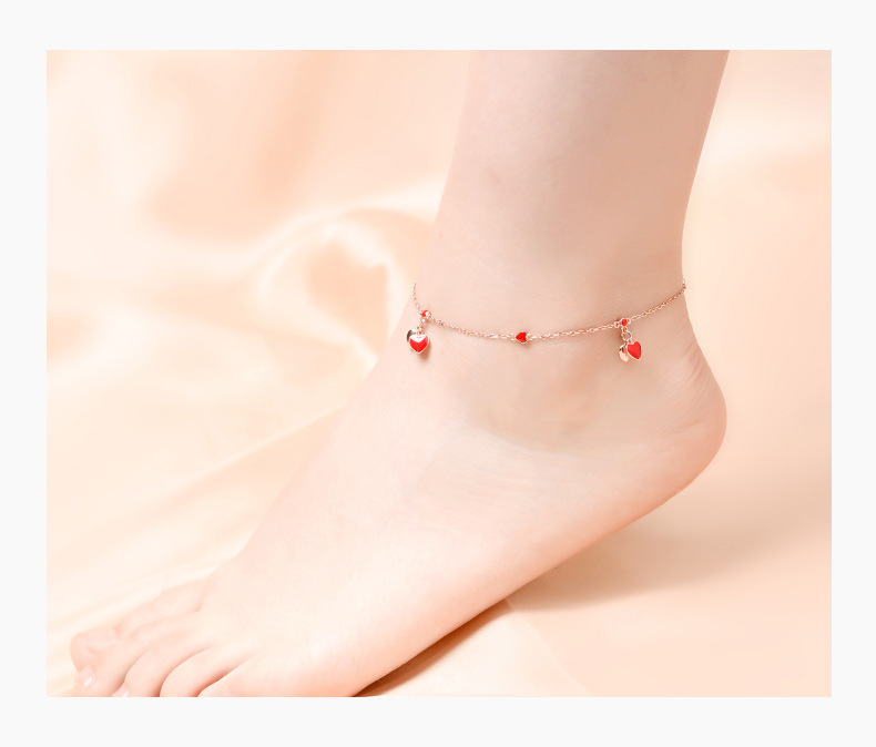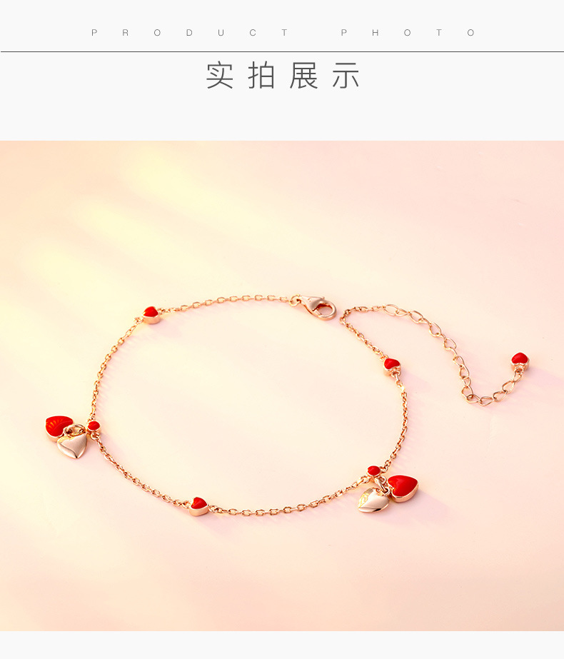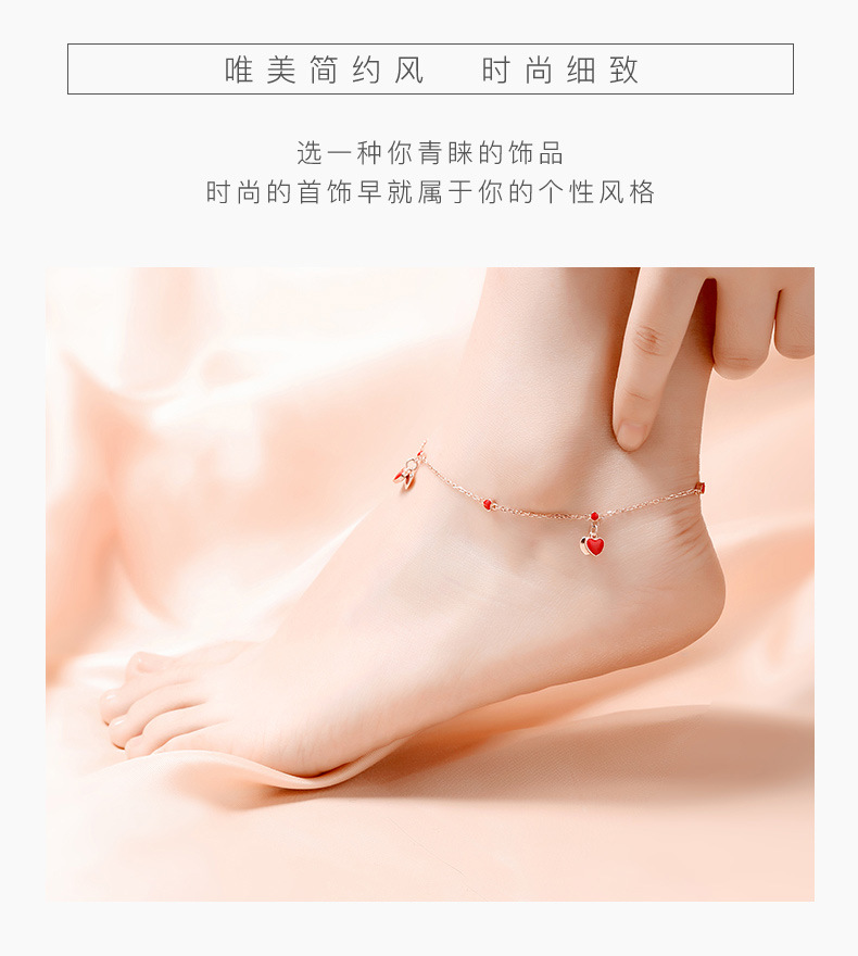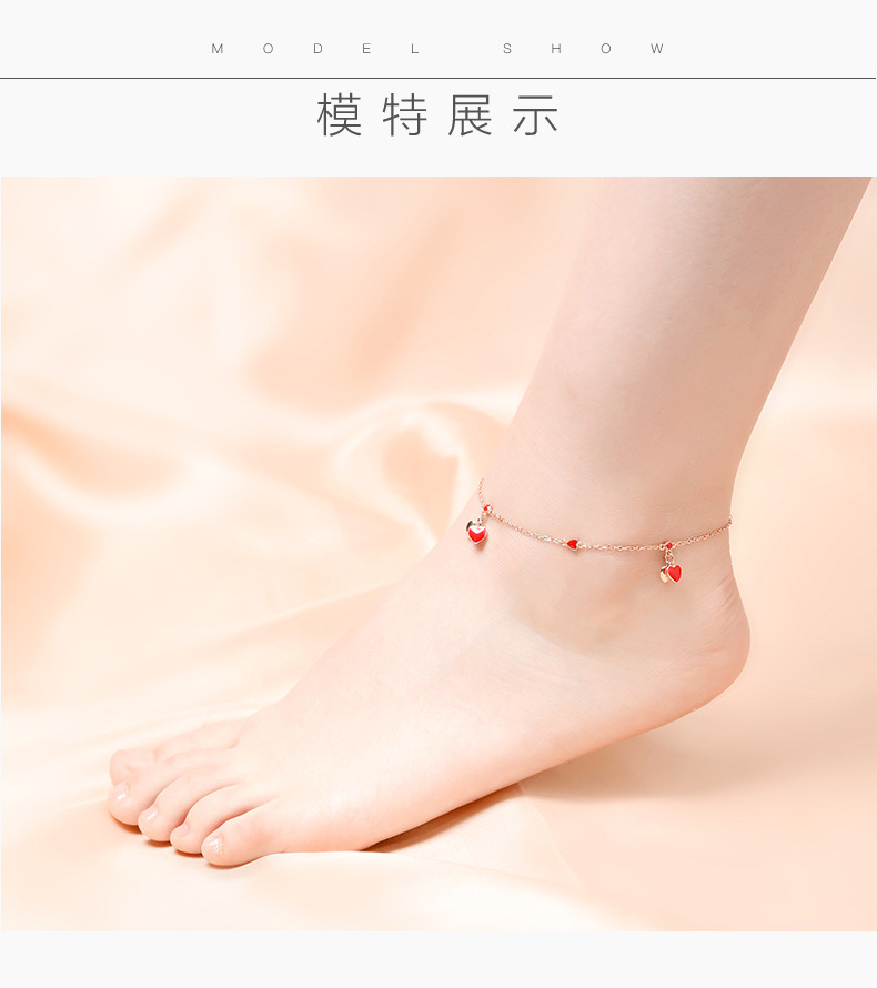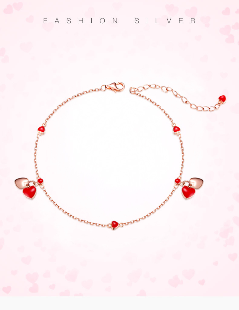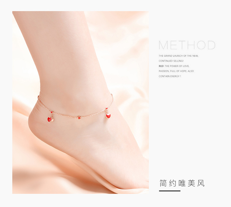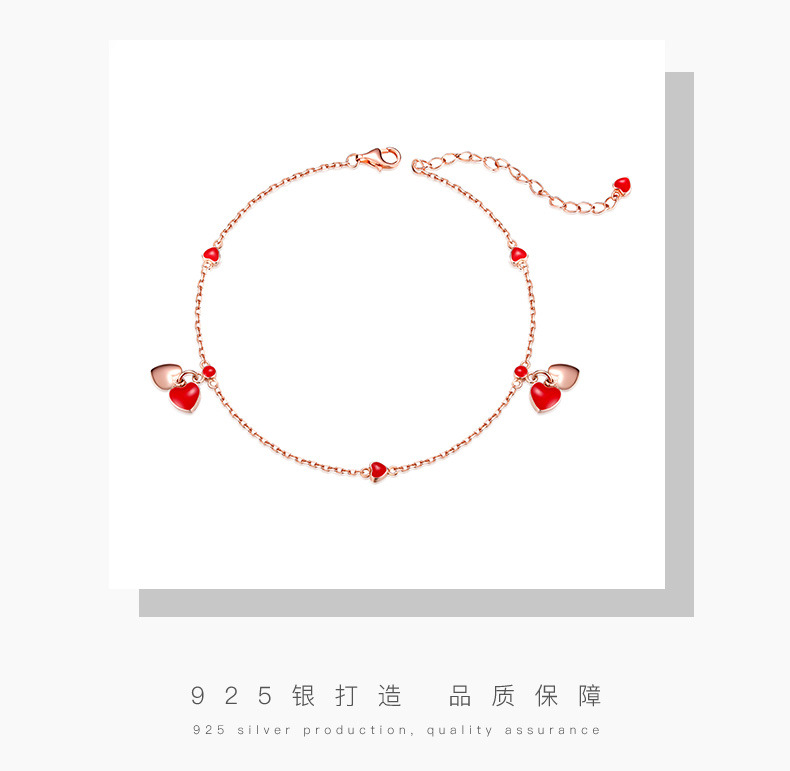 YYM-YB6047 欧美唯美S925纯银小红心爱心脚链