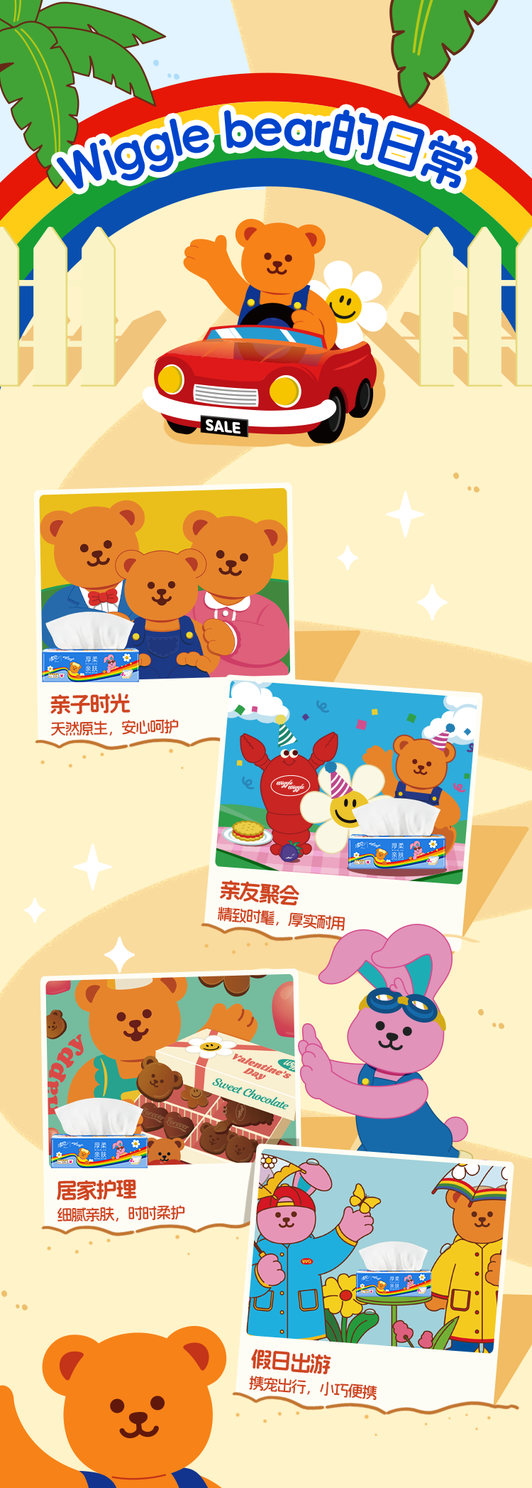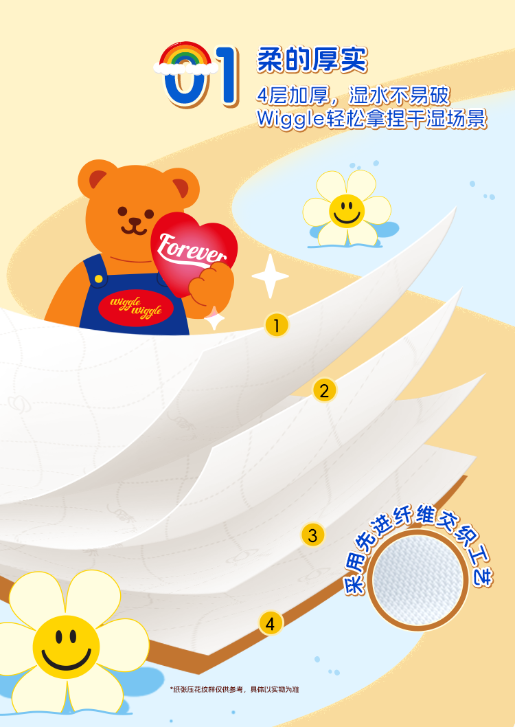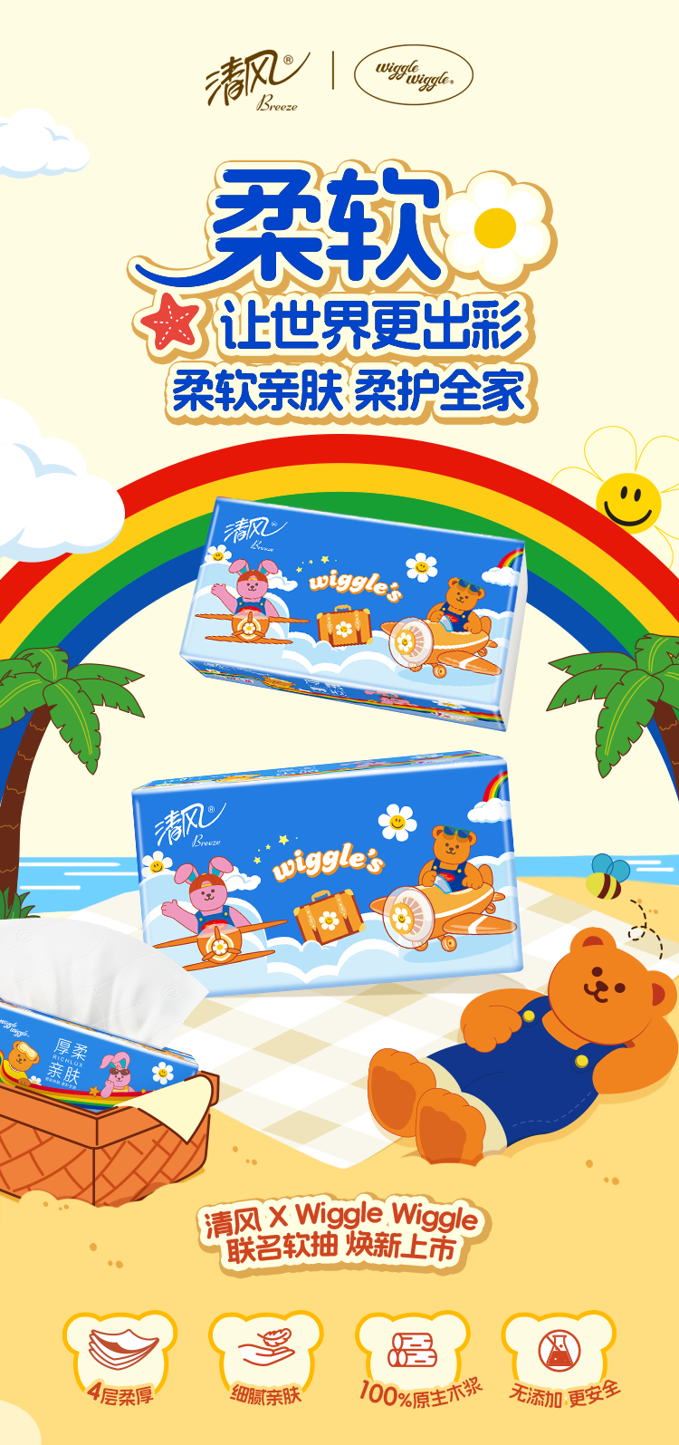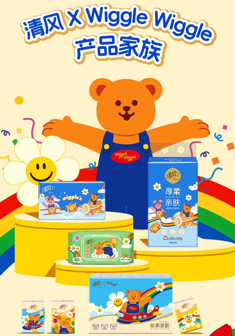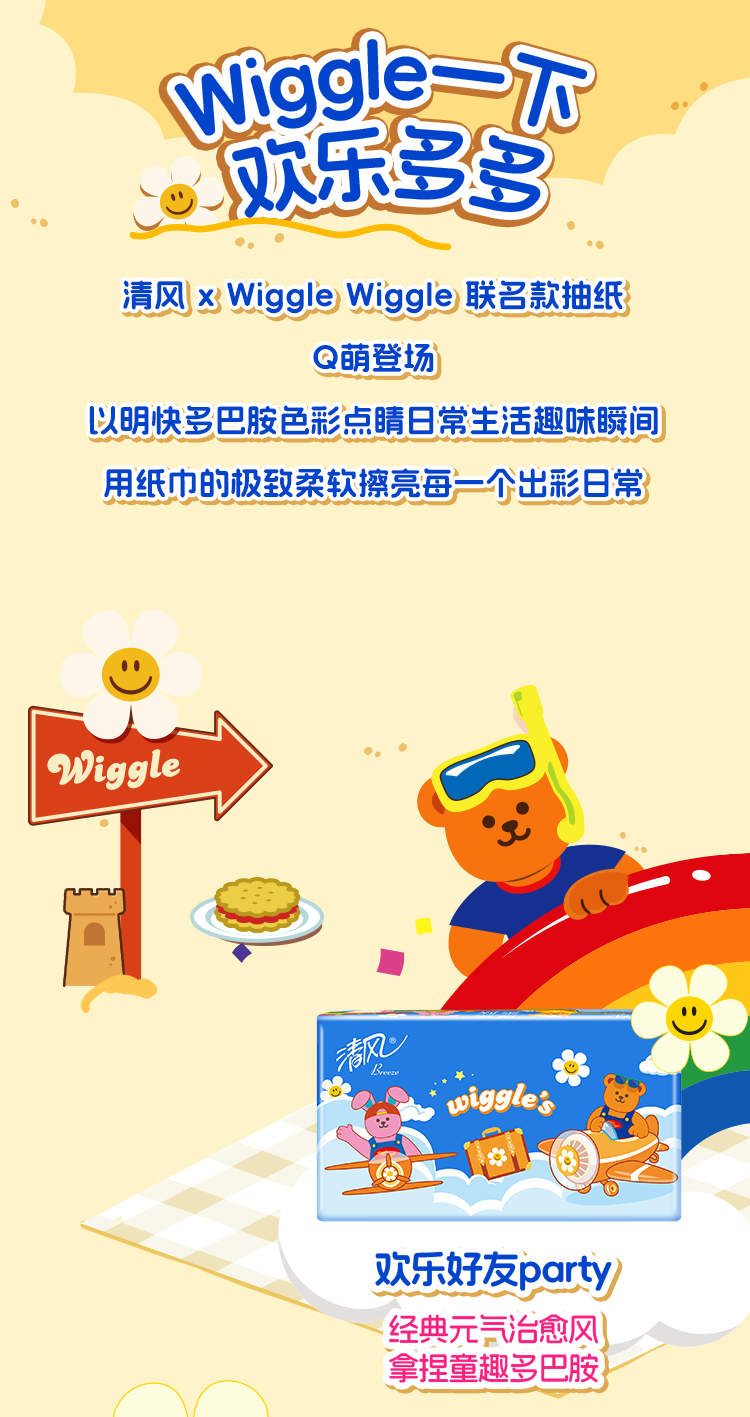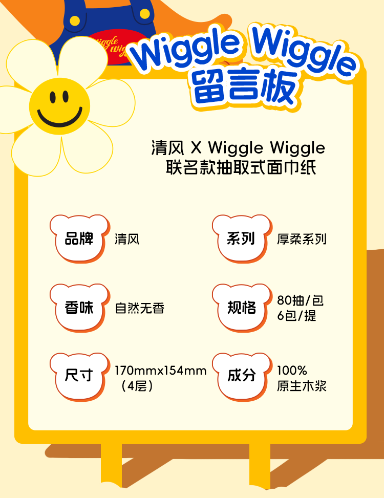 【官方自营】清风wiggle联名抽纸M码4层80抽6包厚柔亲肤纸巾