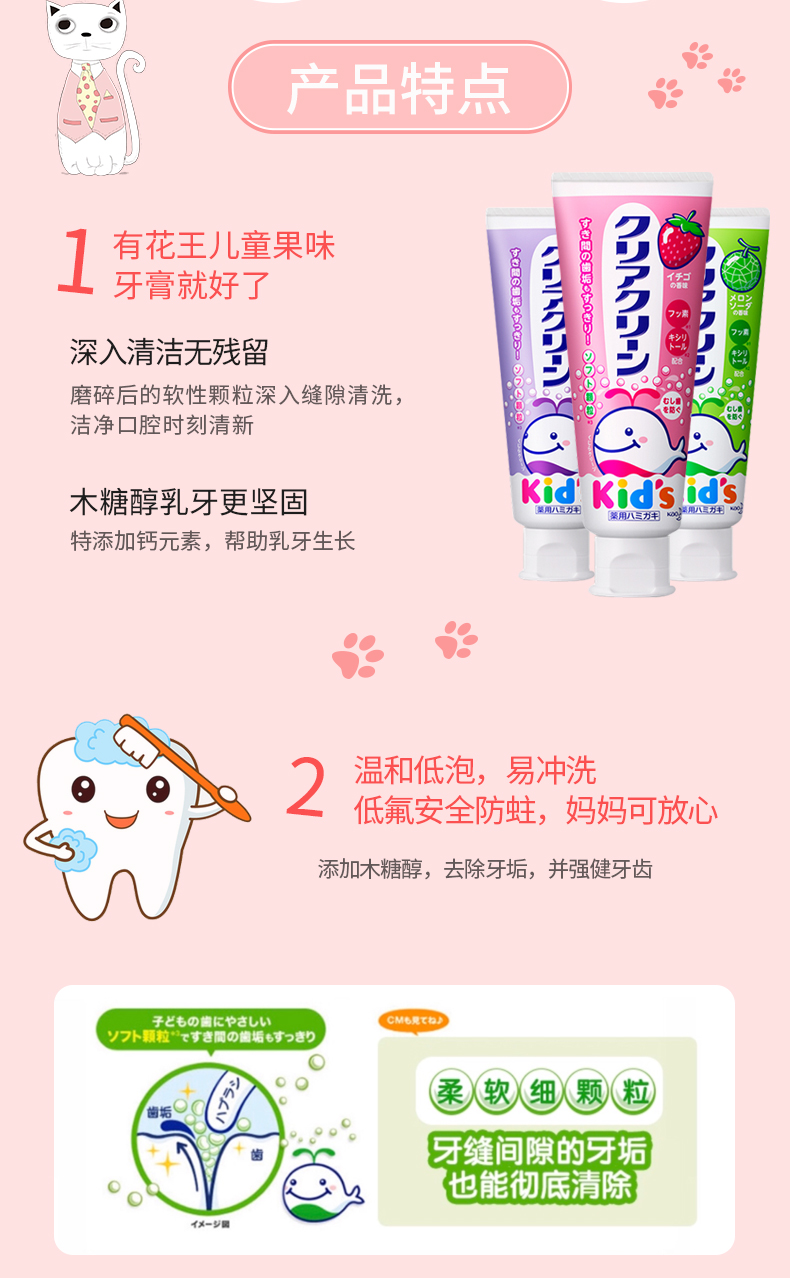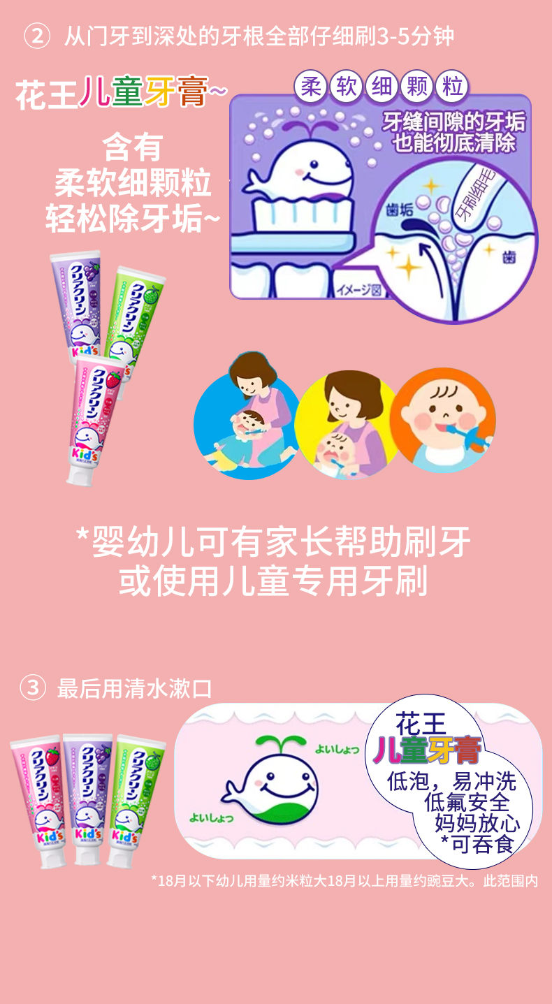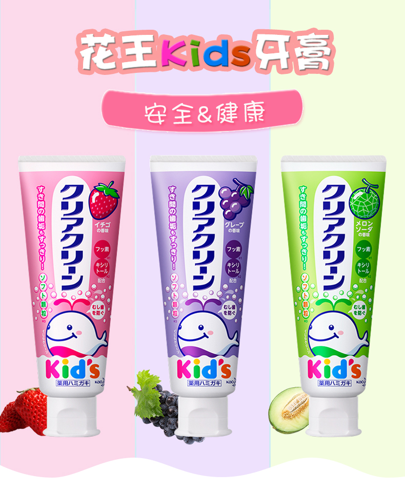 日本花王儿童牙膏 葡萄味 草莓味 哈密瓜味 70g
