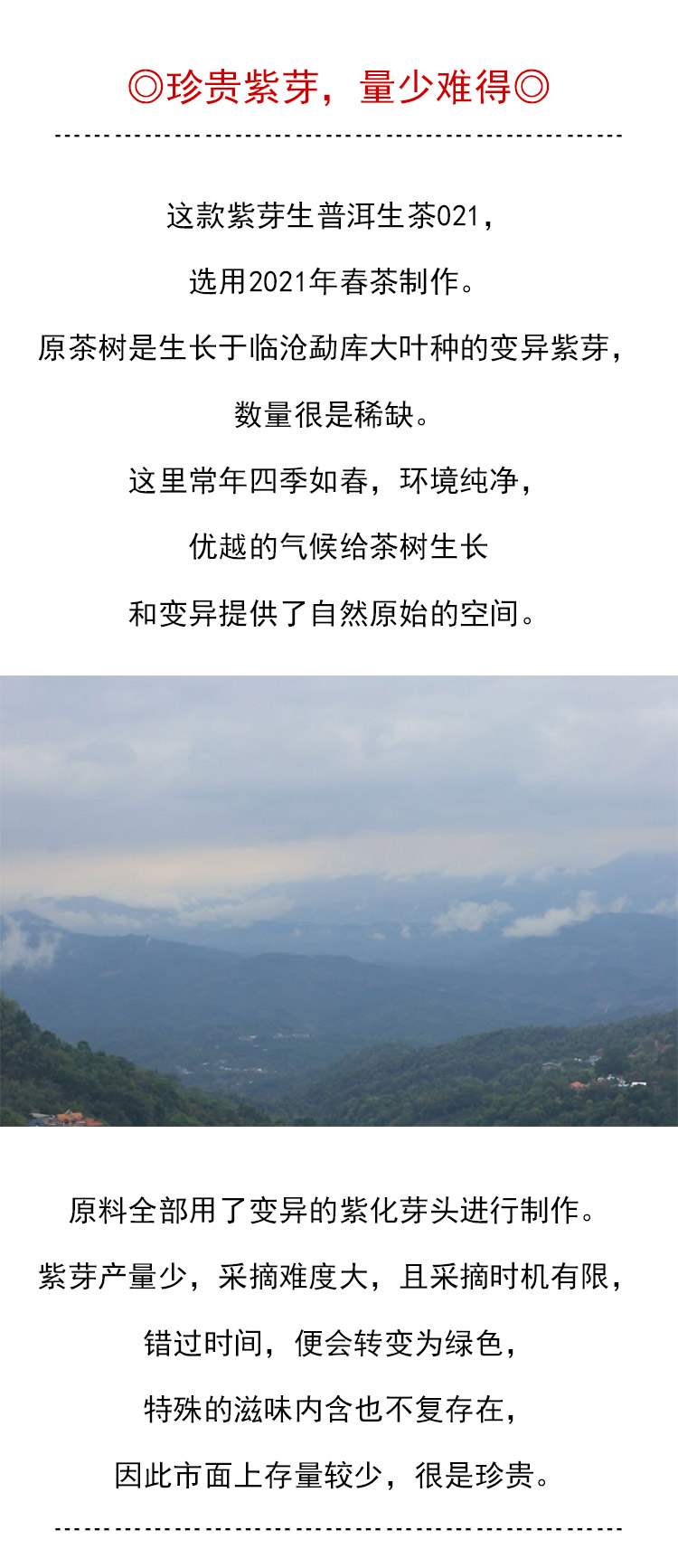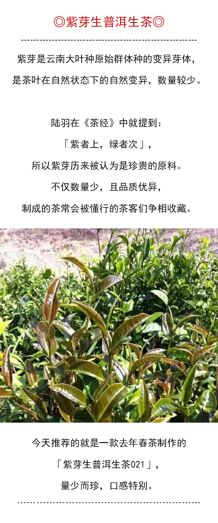 茶香记 紫芽生普洱生茶021 富含花青素 鲜爽饱满 回甘迅速 临沧勐库大叶种