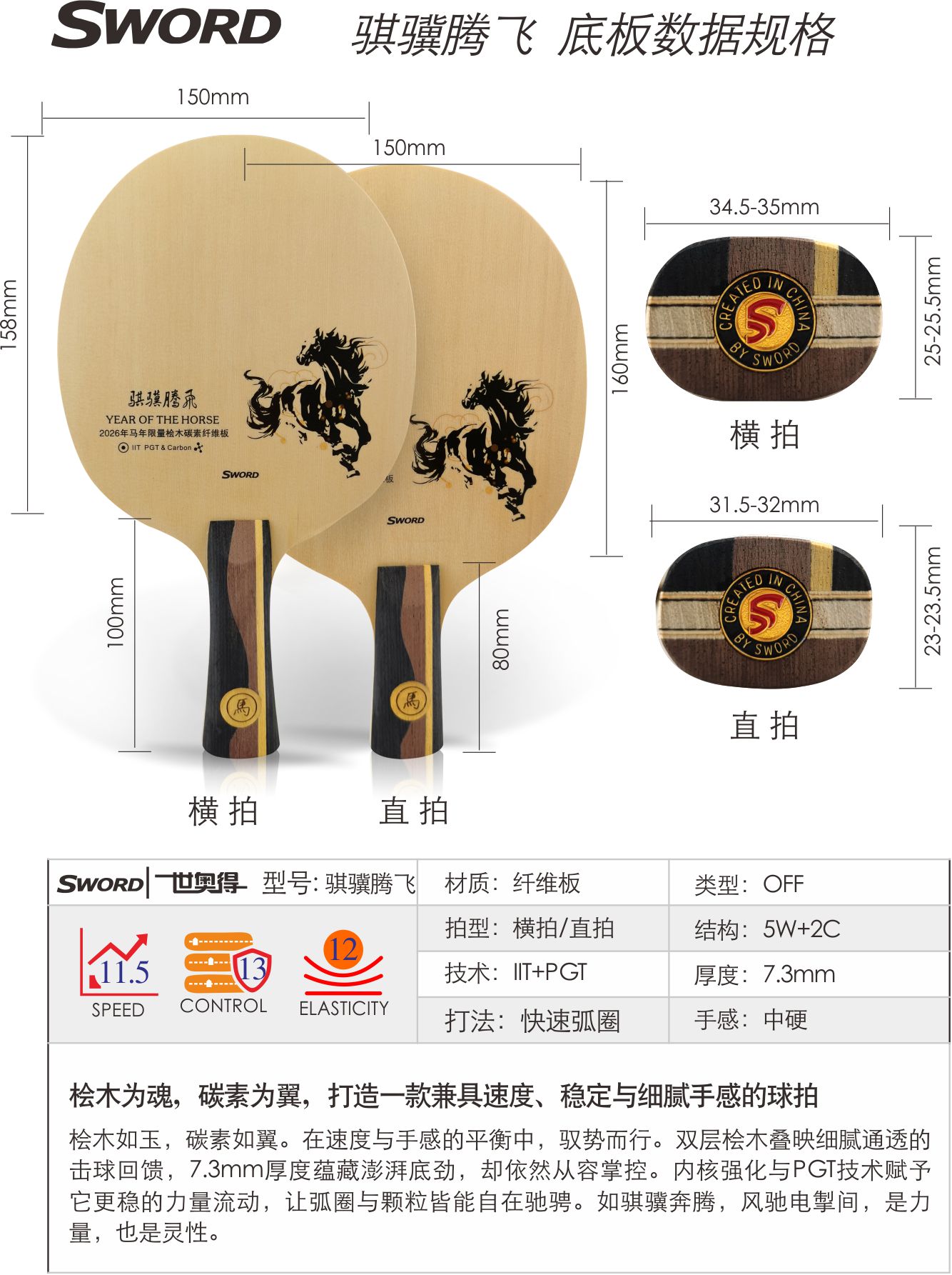 Sword世奥得乒乓球拍2026年乒乓球底板碳素纤维板马年限定款训练比赛拍