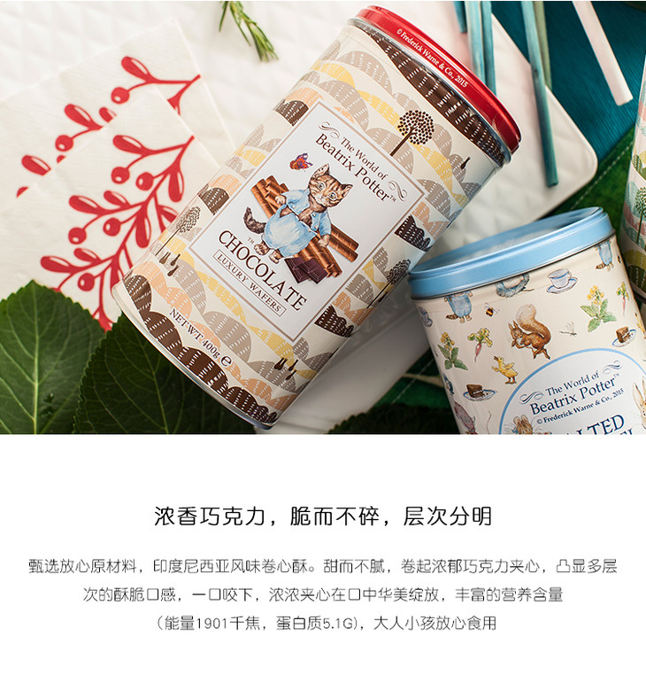 【彼得兔】波特小姐彼得兔巧克力味卷心酥400g