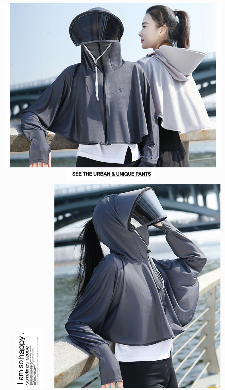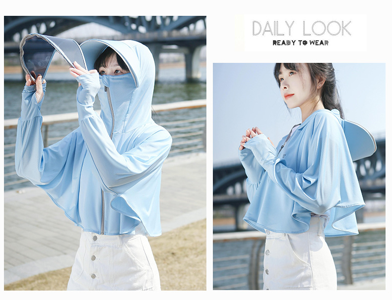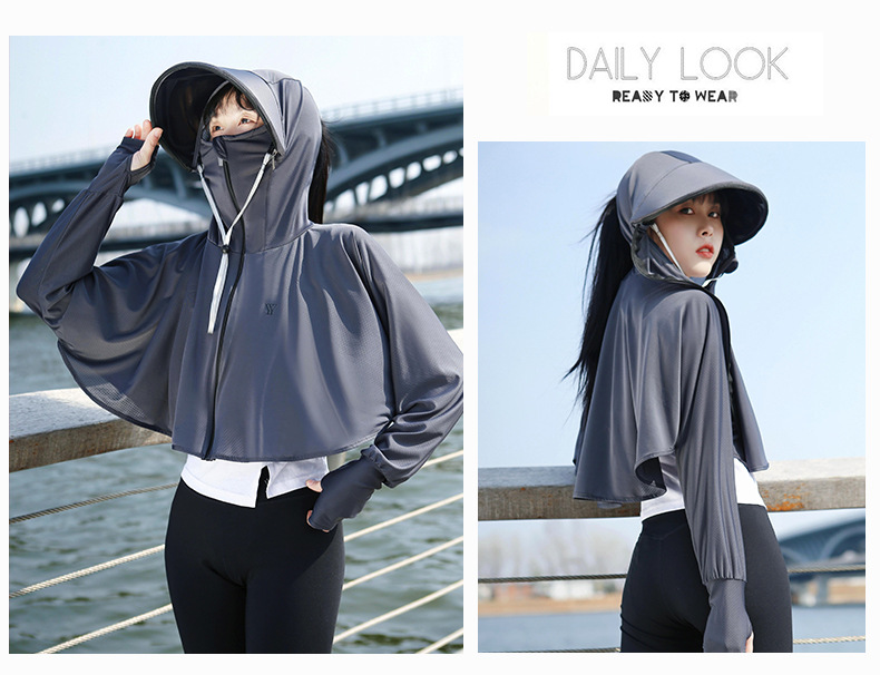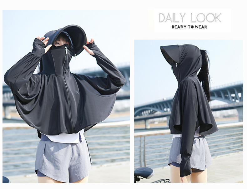 BMT-YYtkm衣女款夏季新款薄款冰丝透气电动车短款宽松连帽户外