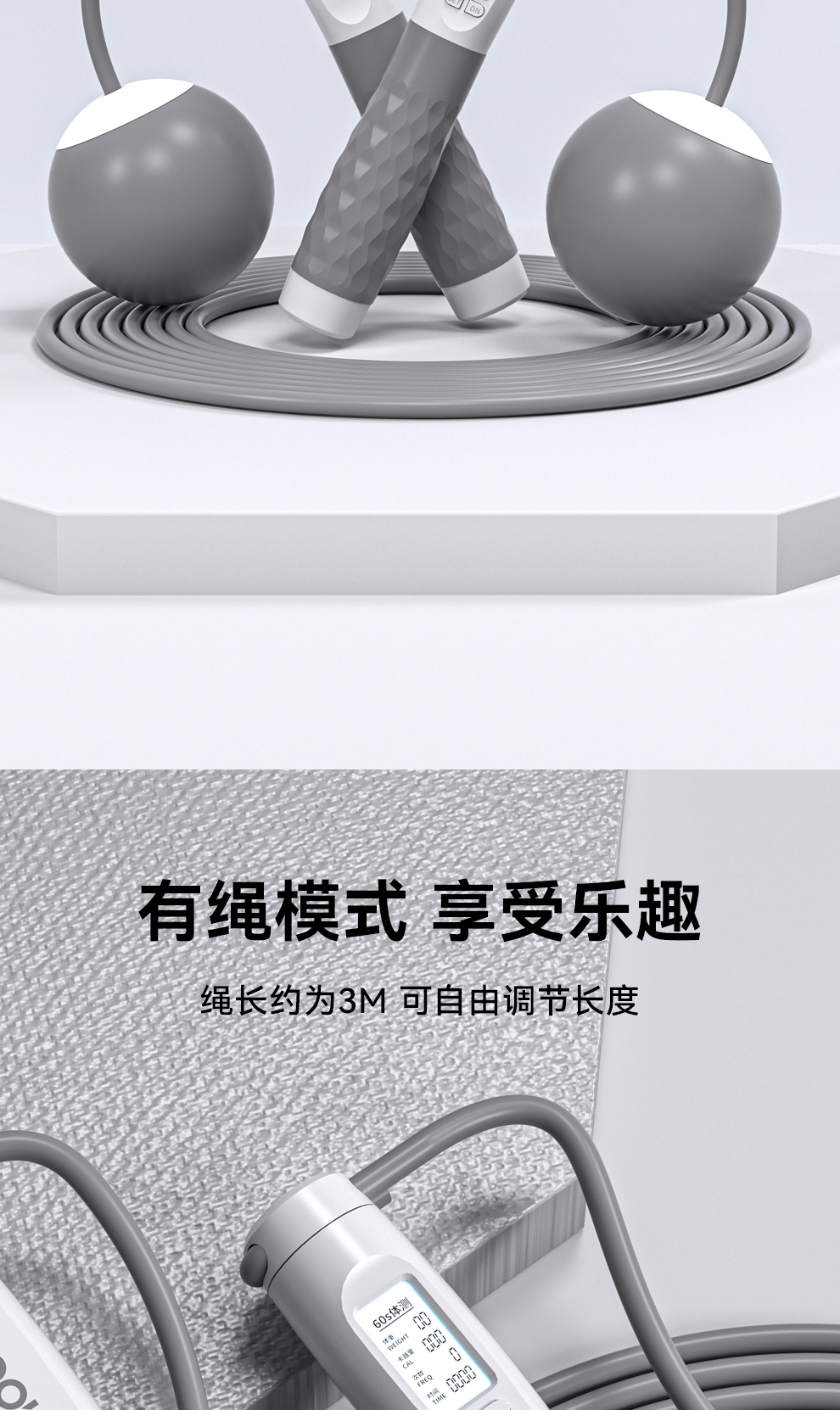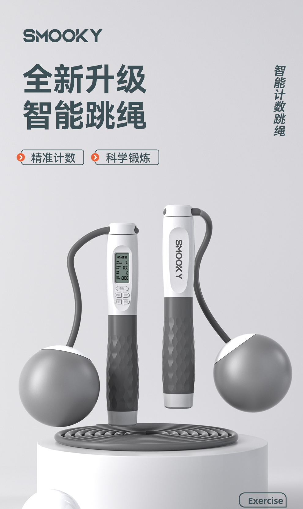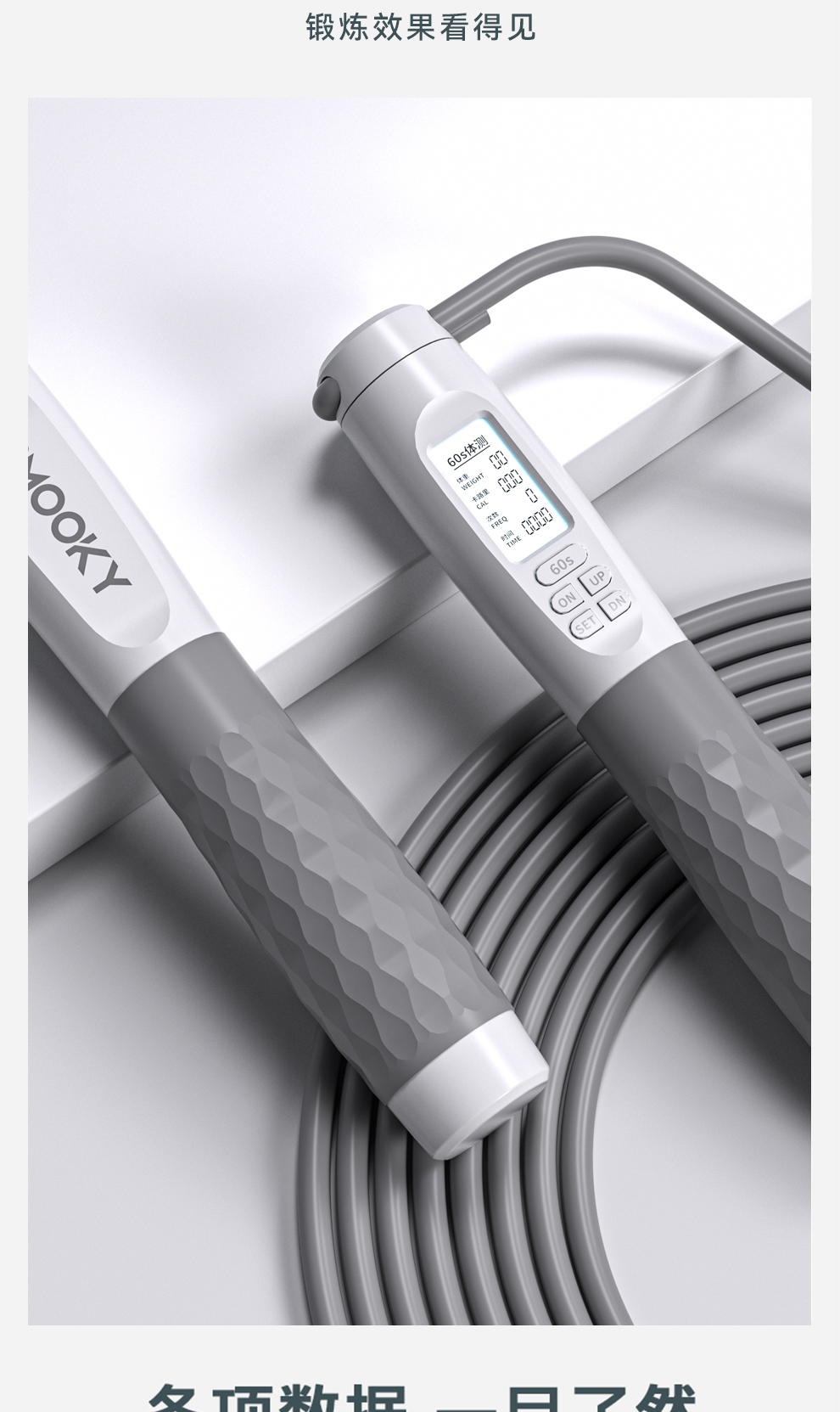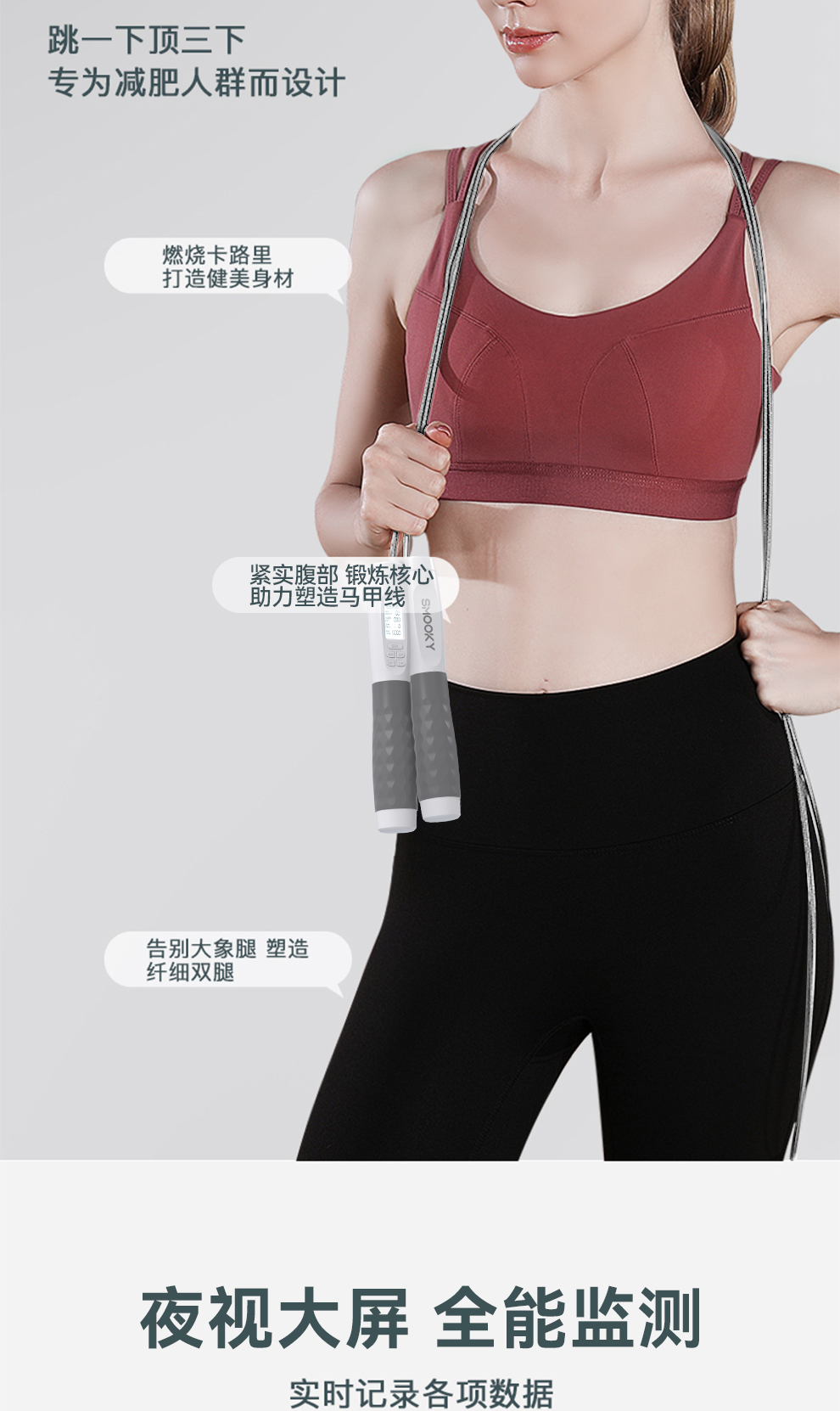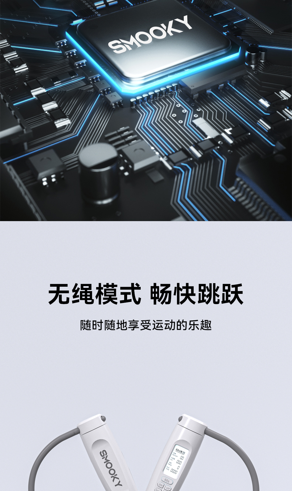 SMOOKY智能计数跳绳【无绳负重+有绳】卡路里/体重/次数/时间记录。无噪音、可调节绳子长短燃脂塑形好帮手