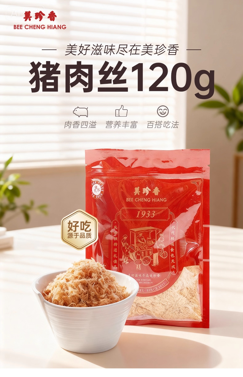美珍香猪肉丝袋装120g烘焙寿司材料营养肉松拌粥饭健康零食早餐