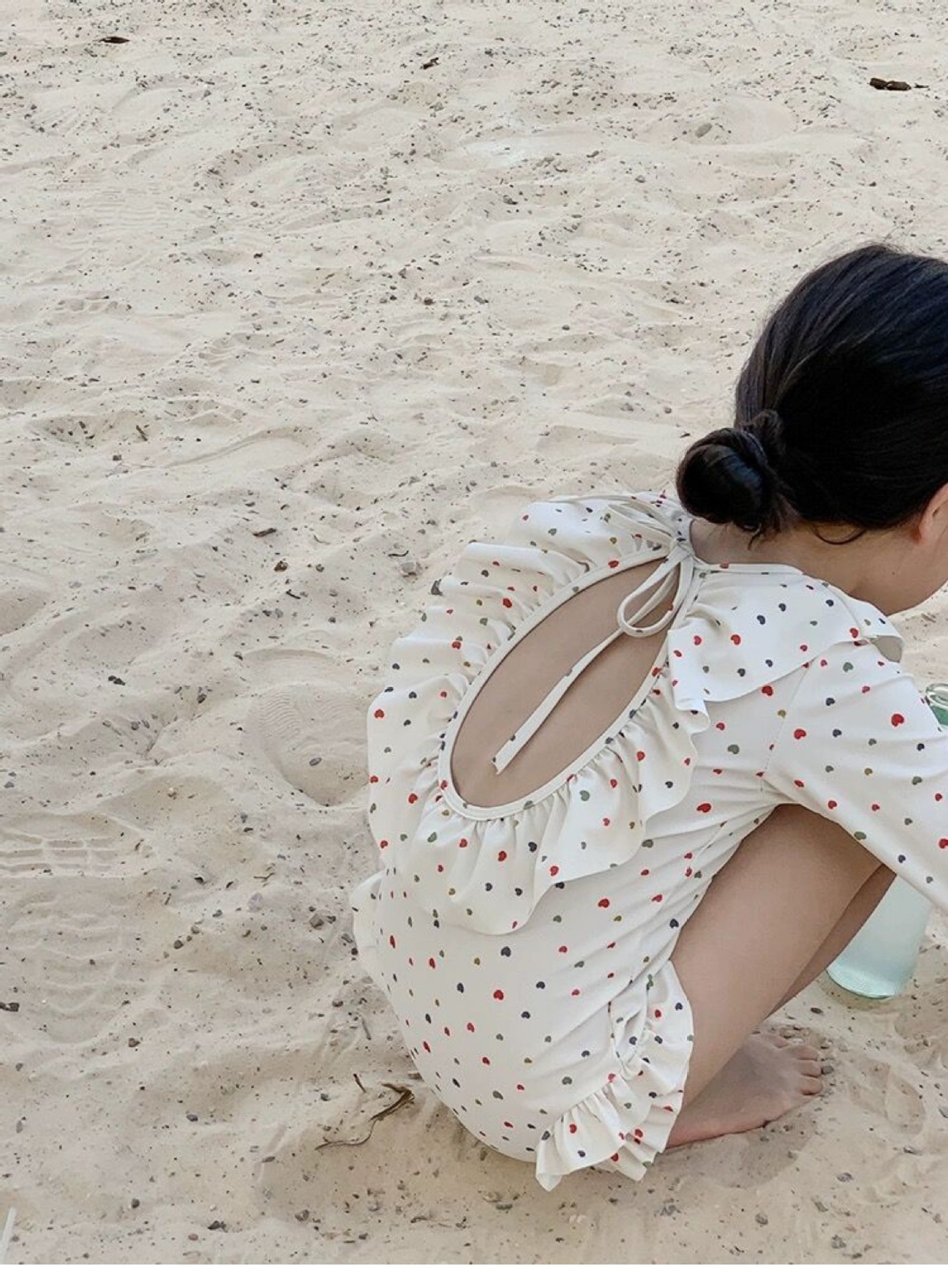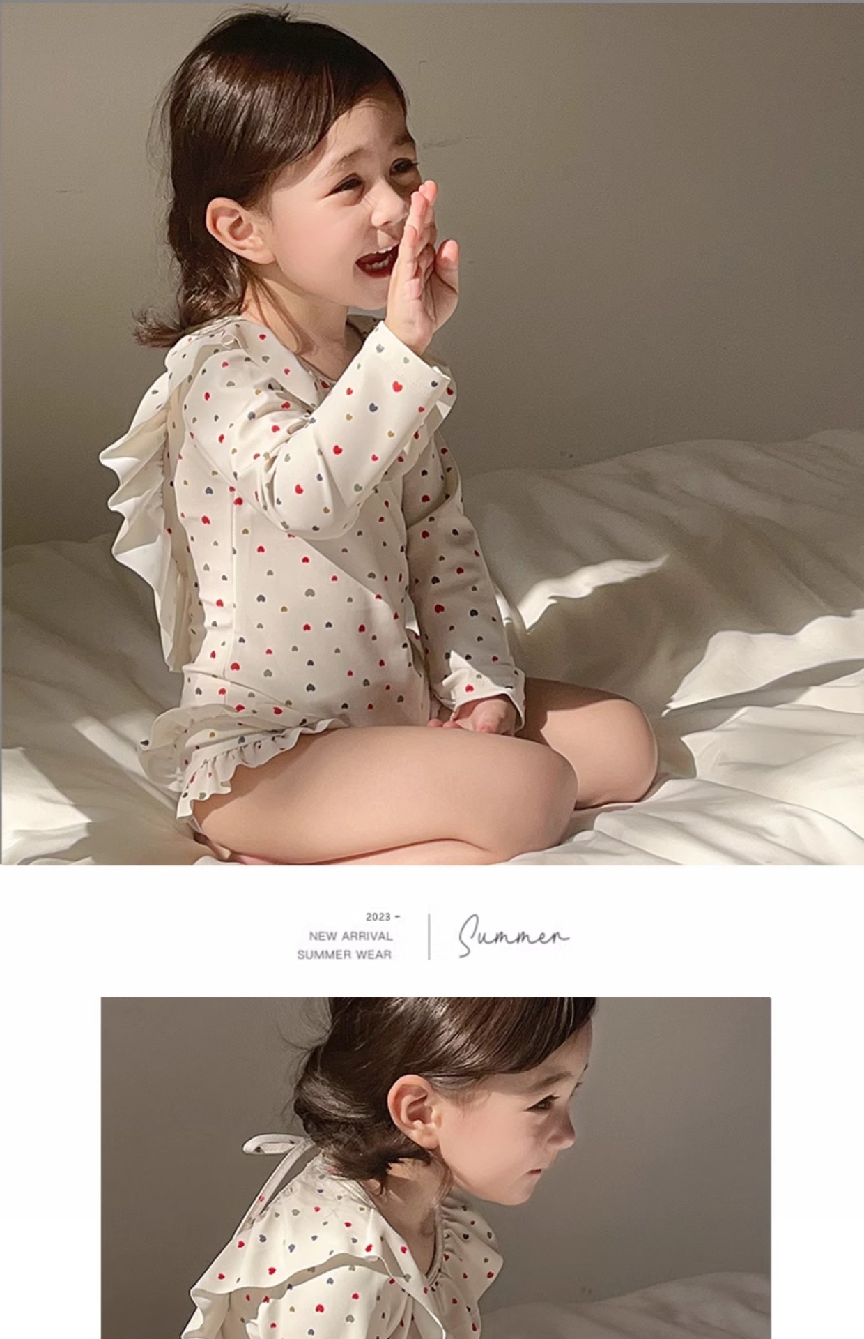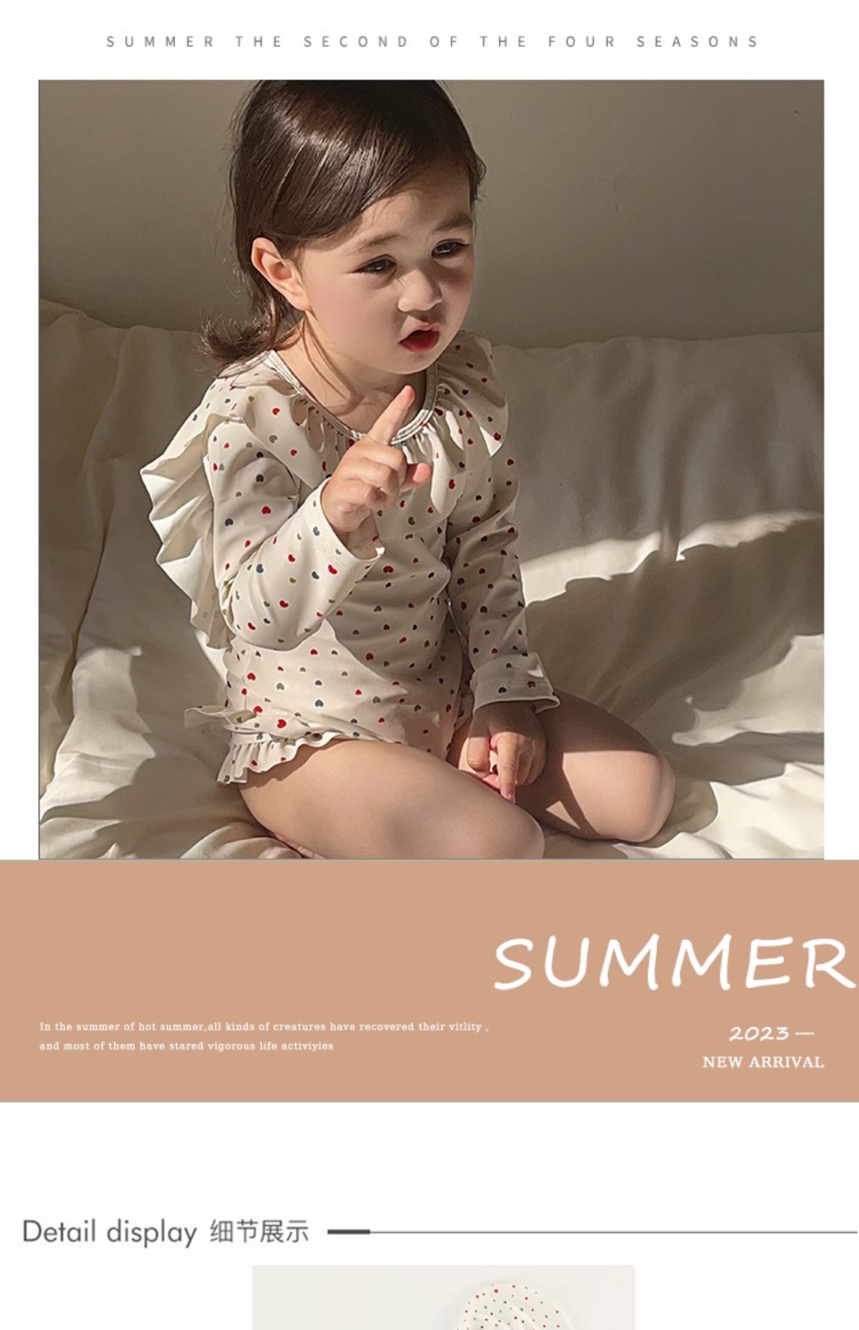 【女孩公主款泳衣,露背设计,长袖防晒】泳衣女孩 公主露背 防晒长袖连体泳衣 女童度假洋气甜美游泳装韩范-QQ