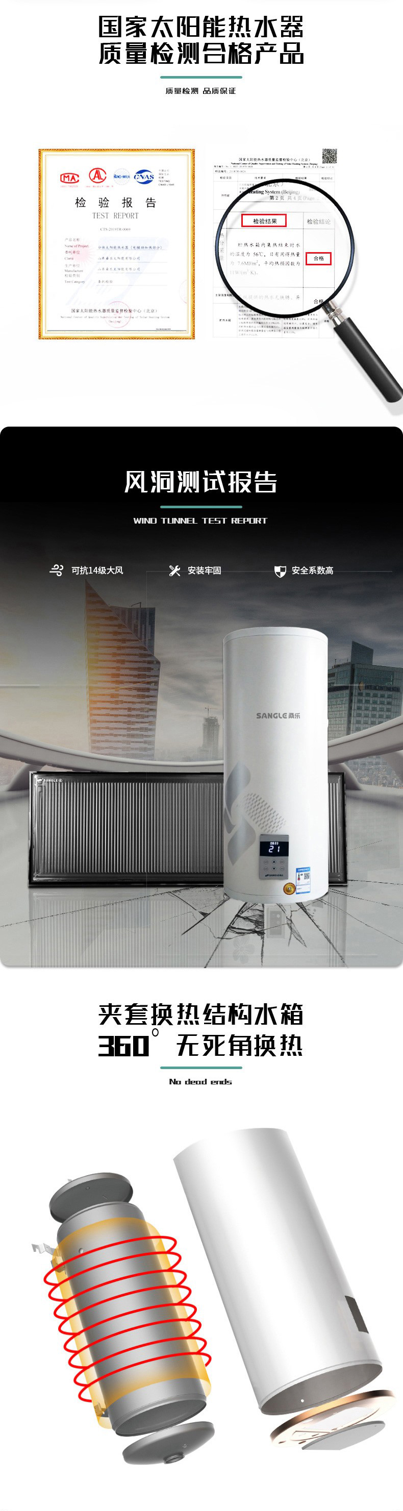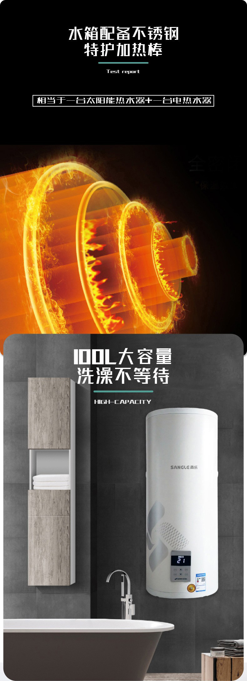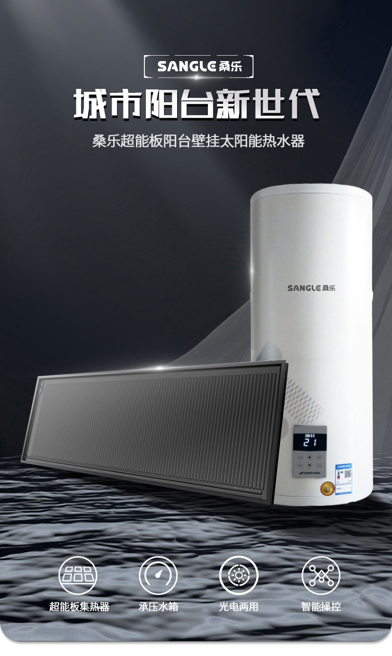 桑乐(SANGLE)高温型全流道 升级款 家用阳台壁挂太阳能热水器 光电两用