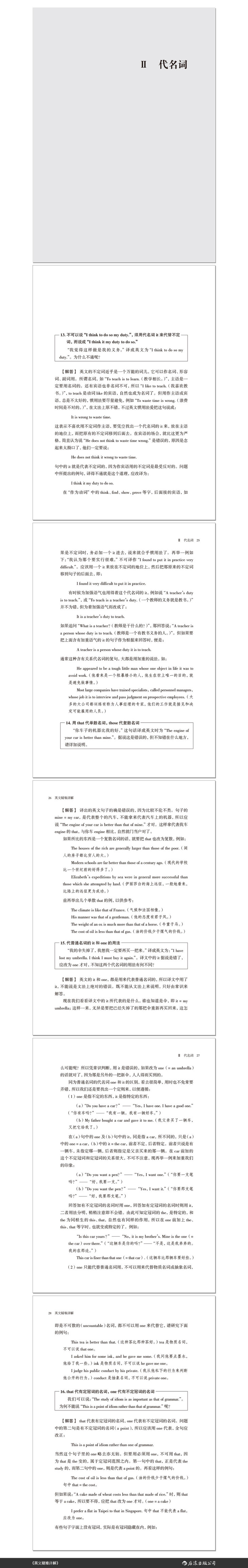 3. 由点及面的系统解答:虽然作者是针对具体问题进行解答,但每一个问题都会举出大量的例句,穷尽问题所涉及知识点的方方面面,消除读者的知识盲点。