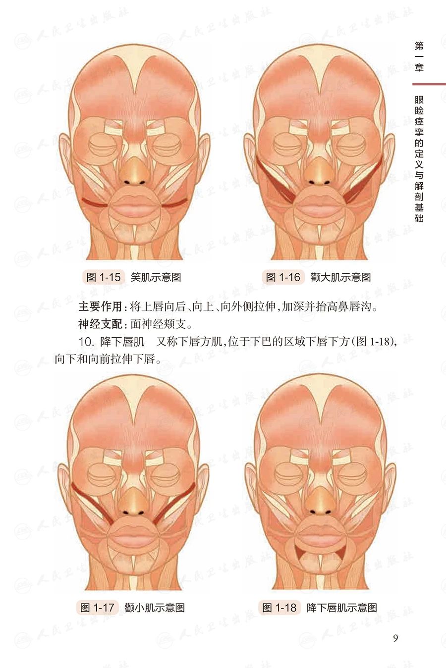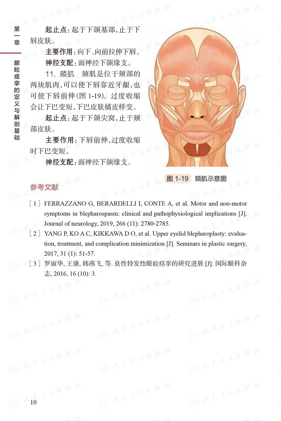 系统总结了主编团队多年在眼睑痉挛诊疗方面的临床经验,并参考国外权威文献编写。讲解细致清晰,临床指导性强,如在解剖基础章节将与眼睑痉挛相关的颜面部肌肉通过手绘图形象直观地呈现,并在肉毒毒素注射治疗章节将解剖图和体表注射位点对应呈现。