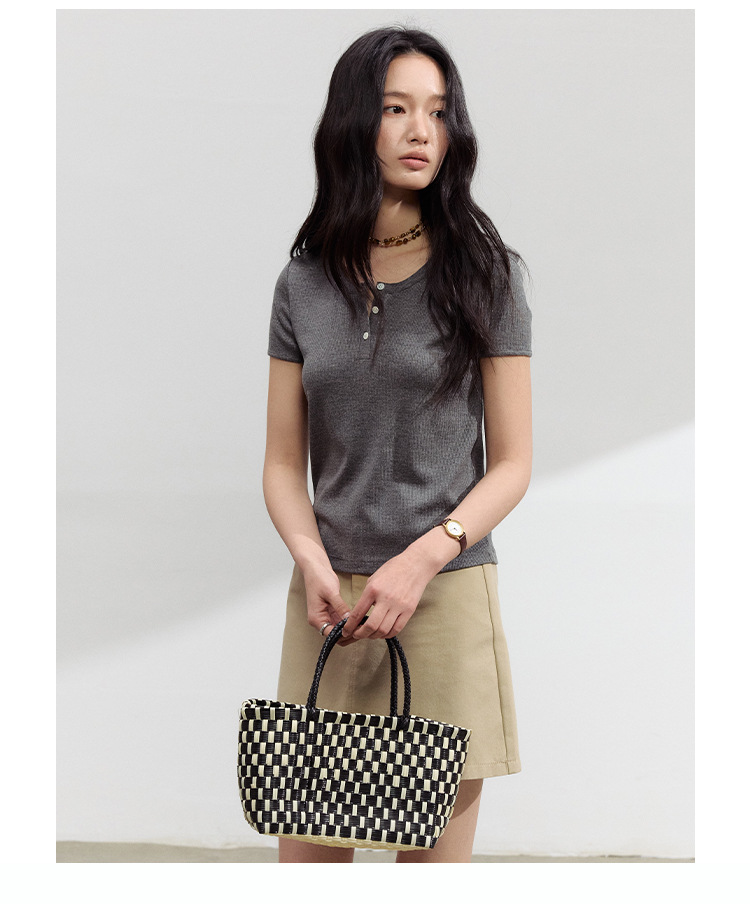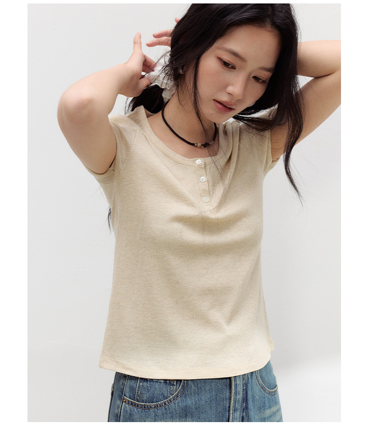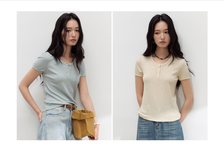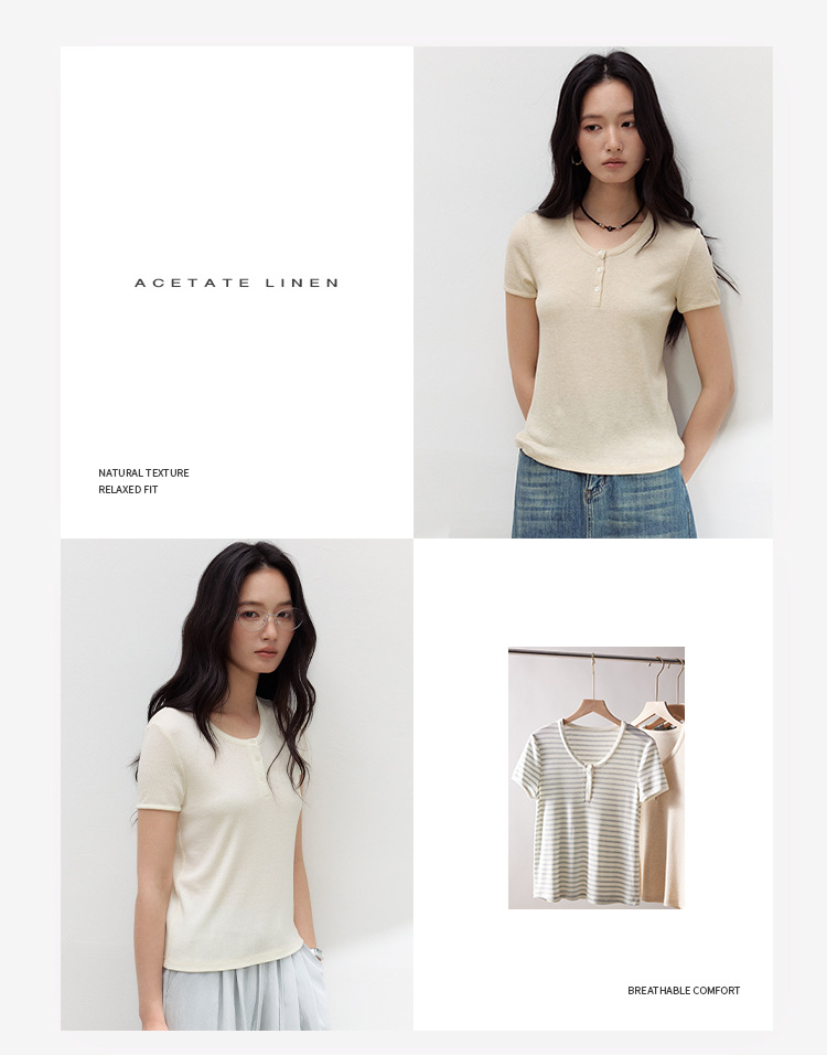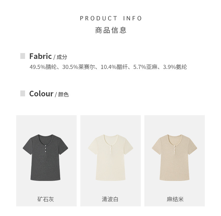 【2026夏季新品】螺纹亚麻・短袖 天丝醋酸亚麻T恤 春夏莱赛尔针织打底衫基础款内搭修身上衣