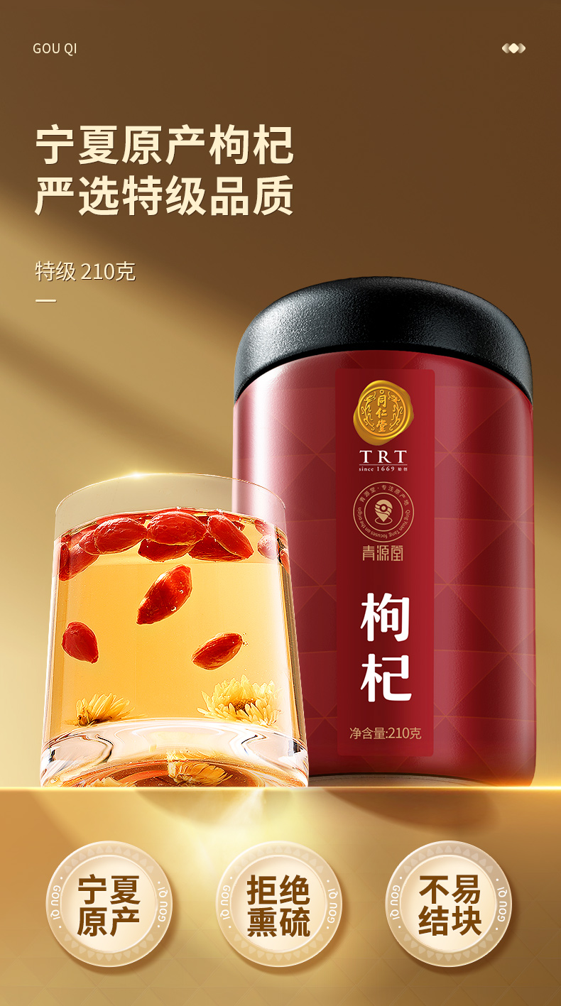 【正宗同仁堂品牌】北京同仁堂 青源堂 枸杞特级210克 宁夏原产枸杞 饱满大果 色泽自然 低温烘干SY