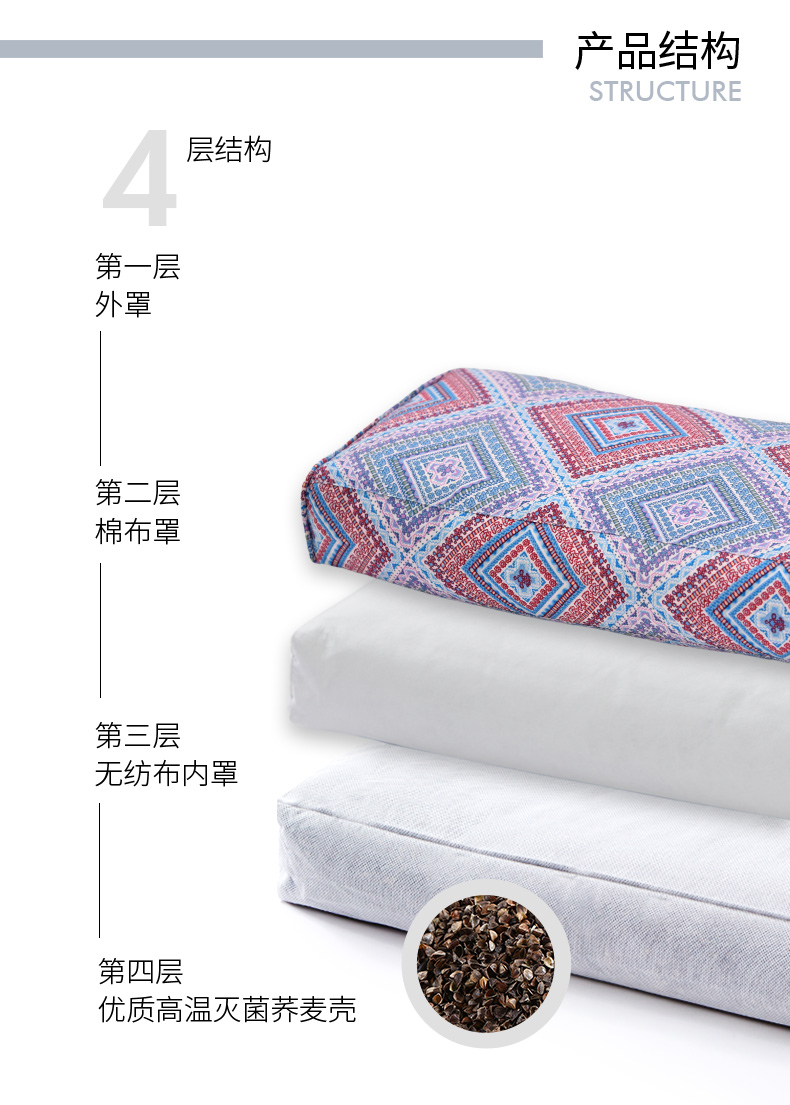 莫代尔系列小长方枕旅行便携小成人枕纯荞麦壳