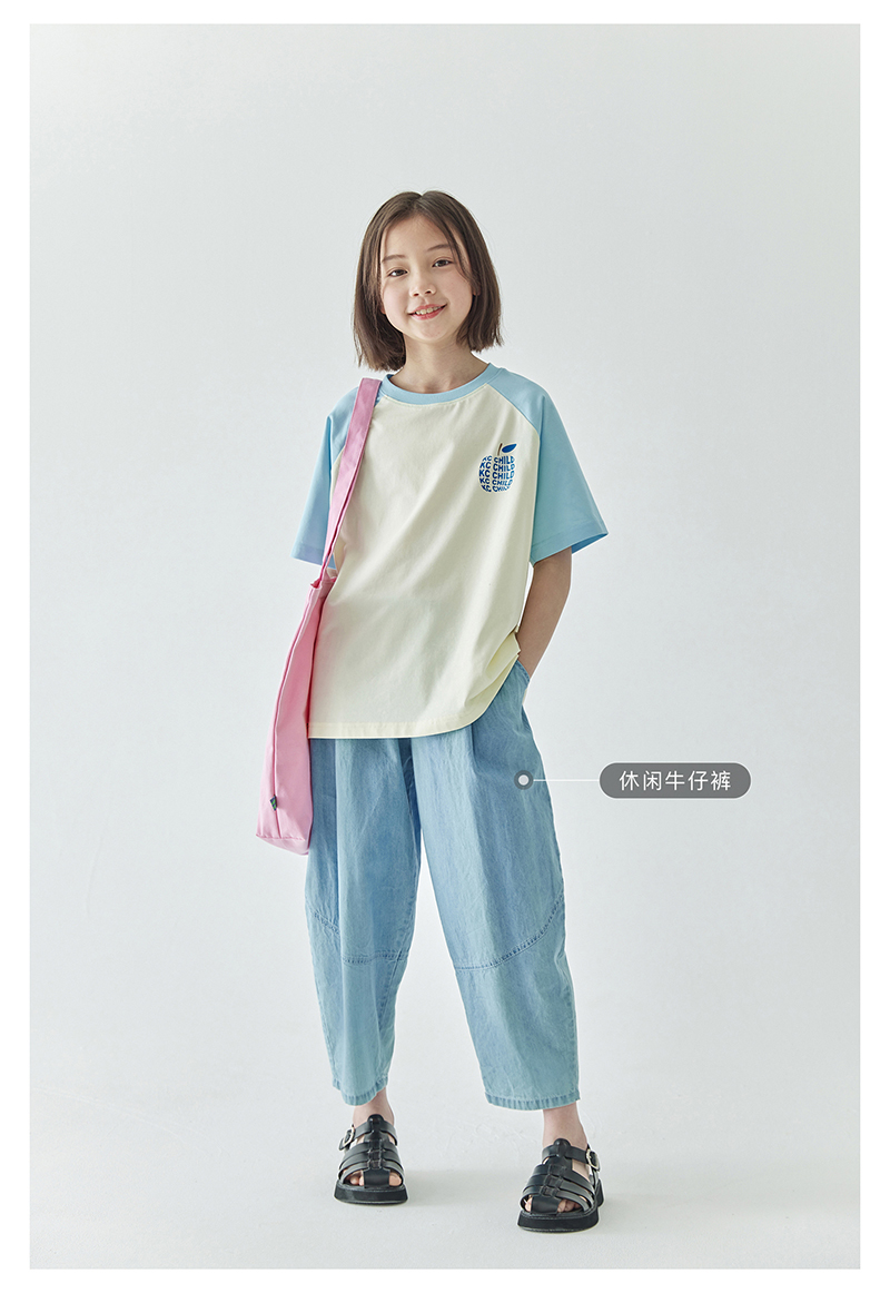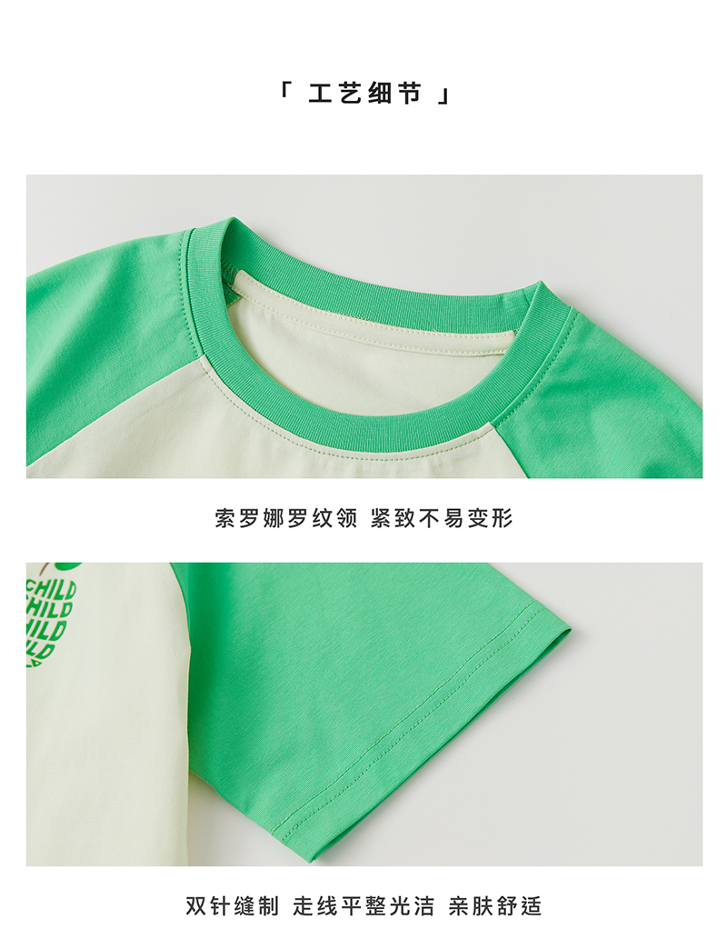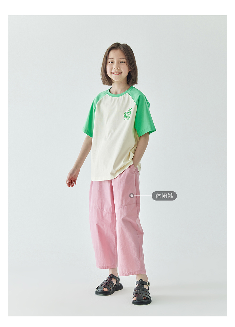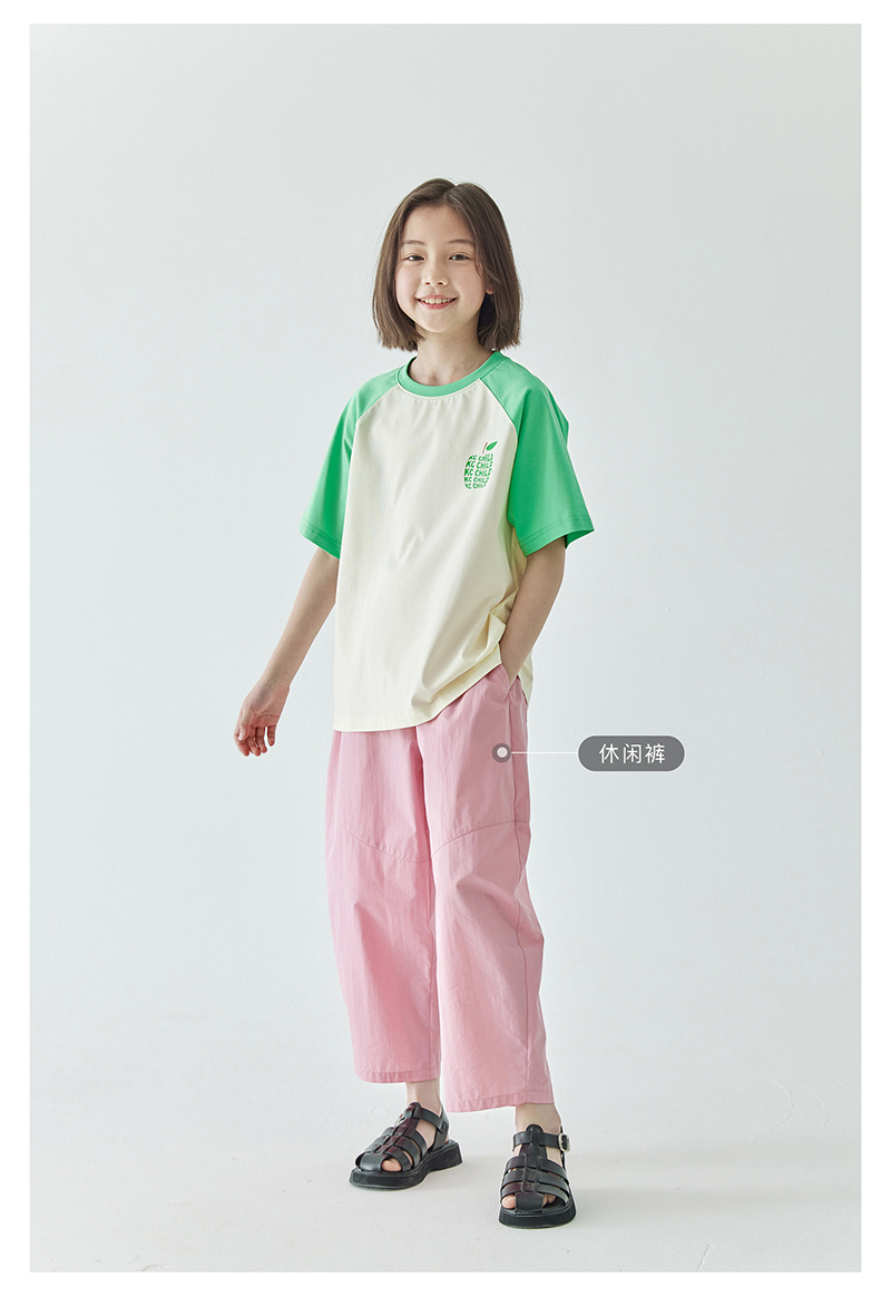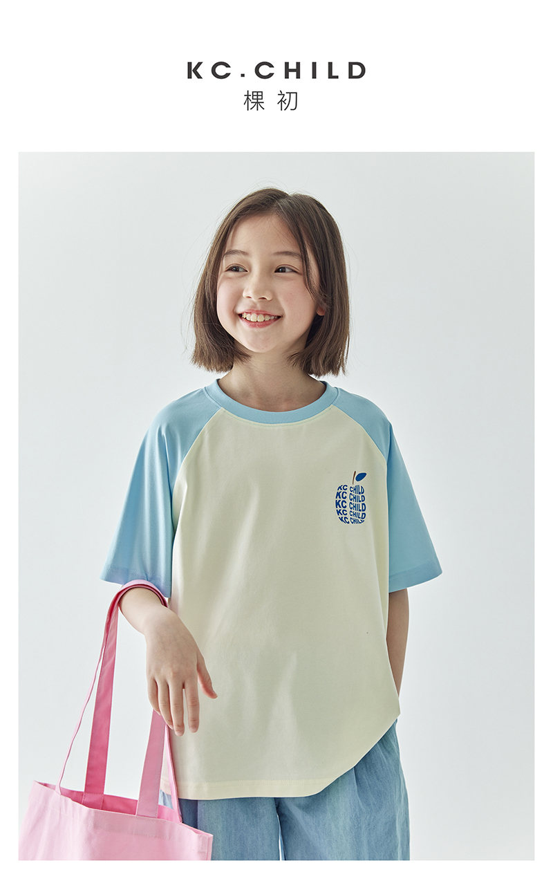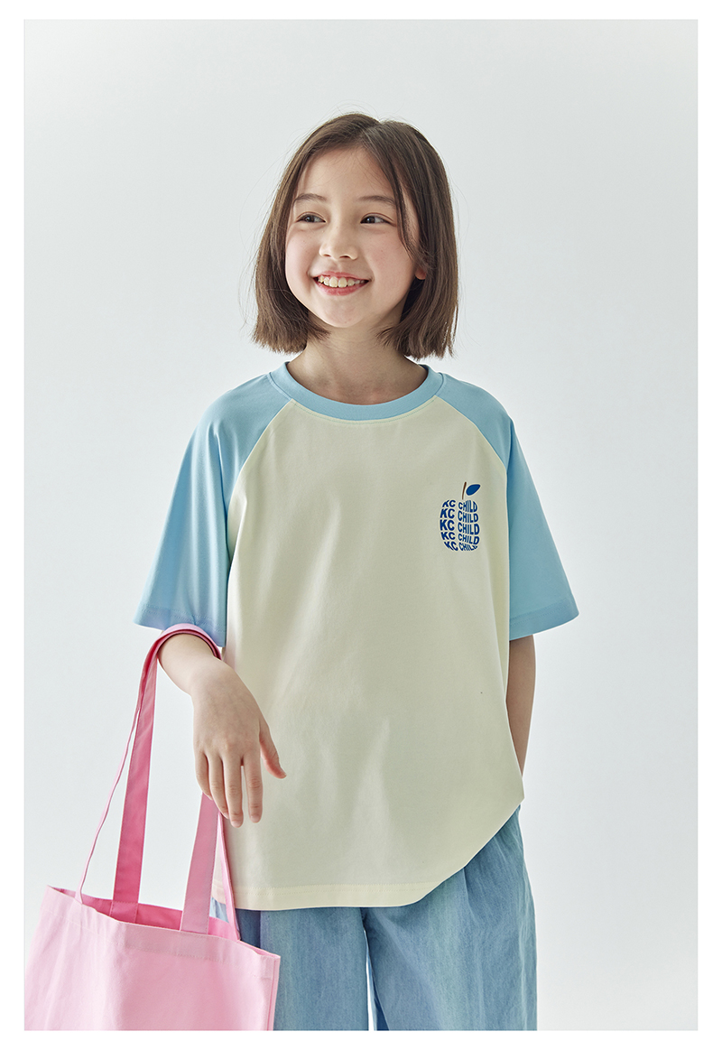 棵初夏季新品女童凉感圆领插肩短袖清新马卡龙色系百搭休闲T恤