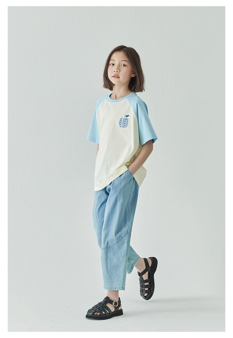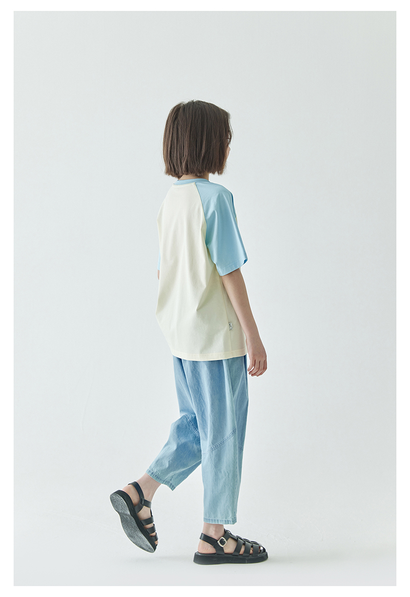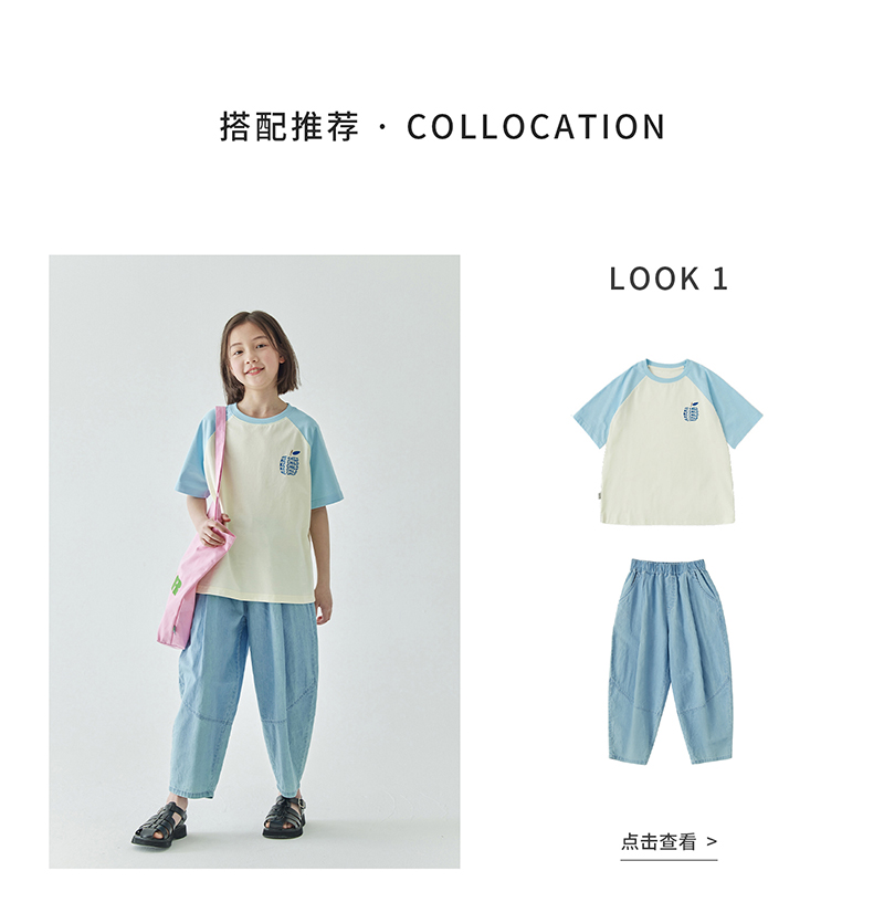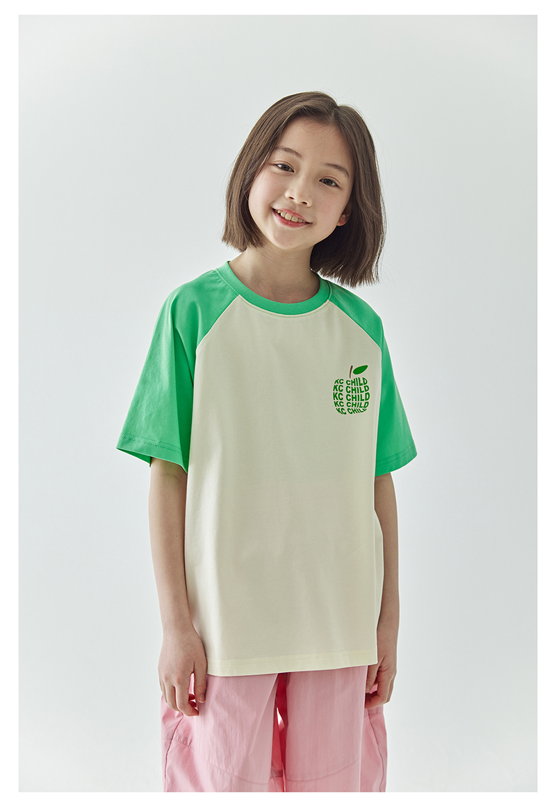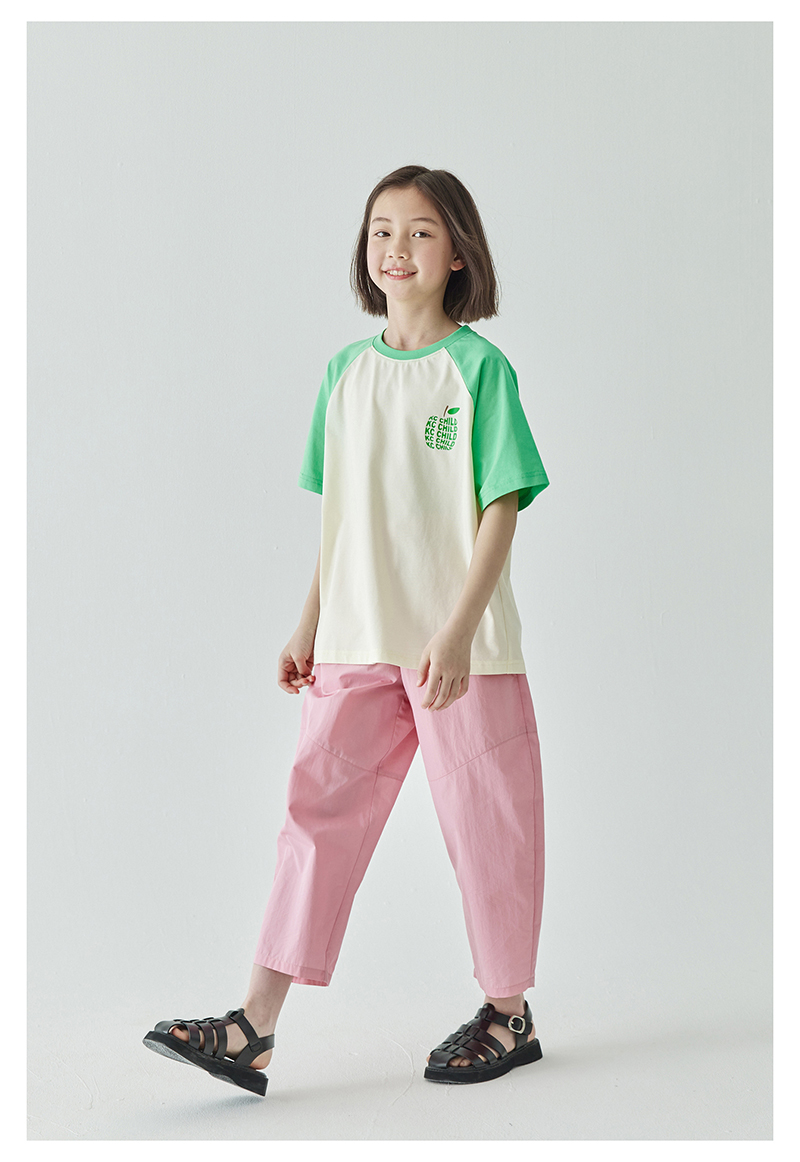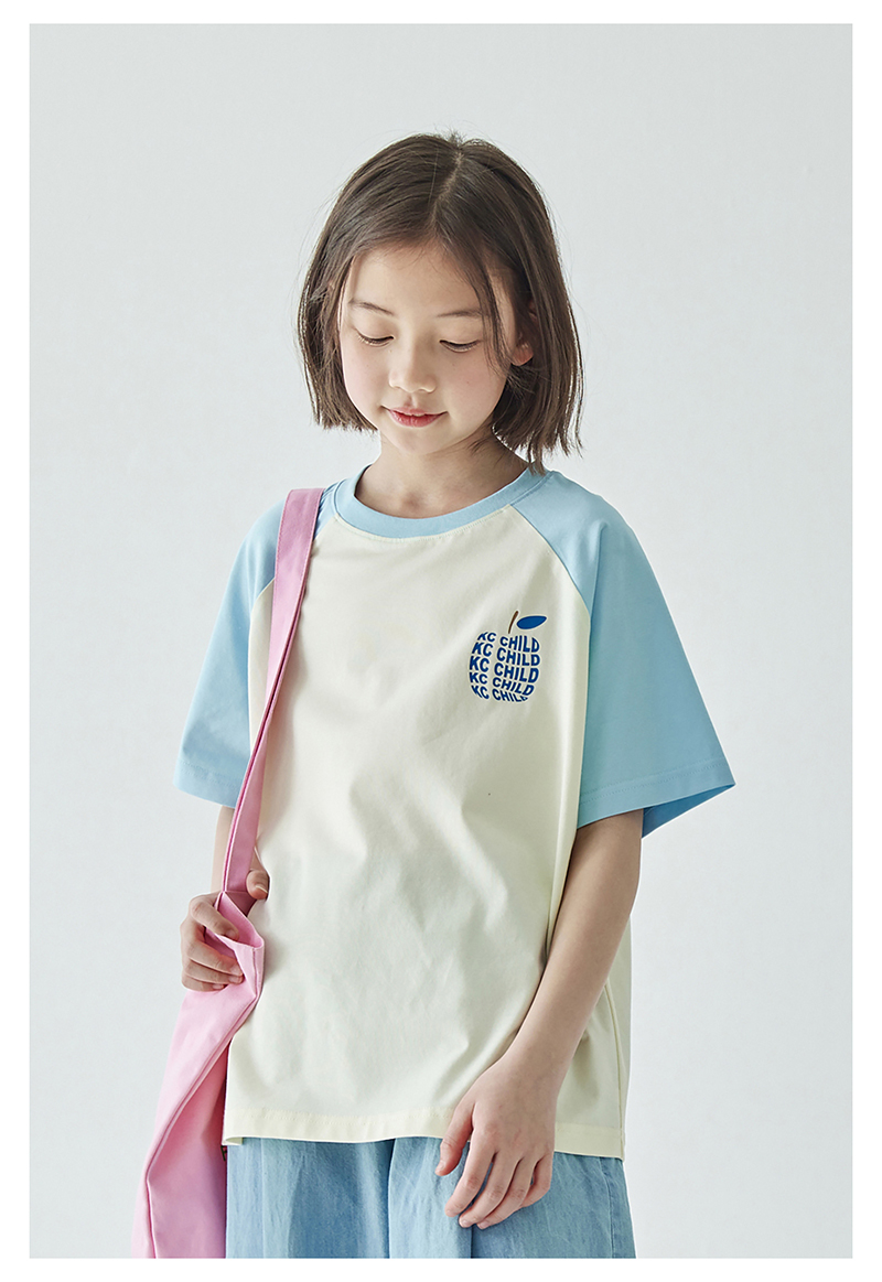 棵初夏季新品女童凉感圆领插肩短袖清新马卡龙色系百搭休闲T恤
