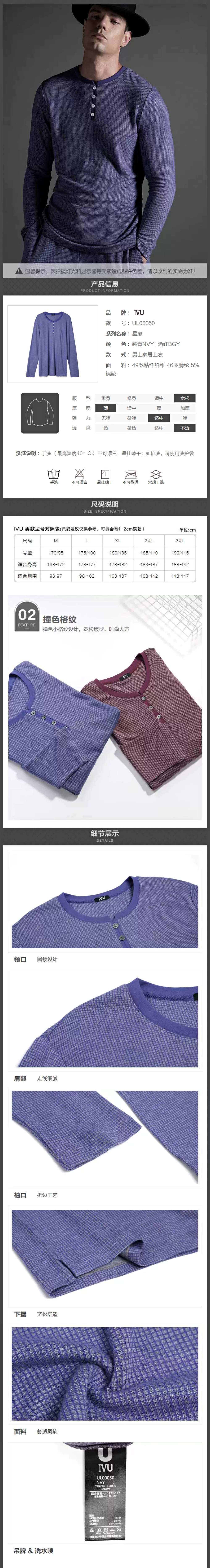 安莉芳旗下IVU男薄款长袖睡衣外穿家居服UL00050衣/UL00051长裤